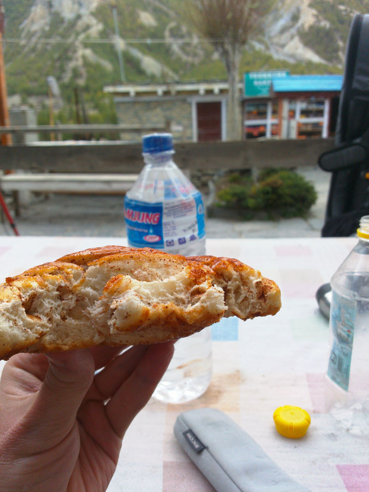 Nah der kalten Nacht stand heute ein schwerer langer Abschnitt bevor. Das Frühstück bestand für mich nur aus einem Tibetischen Brot mit Honig und Milchkaffee