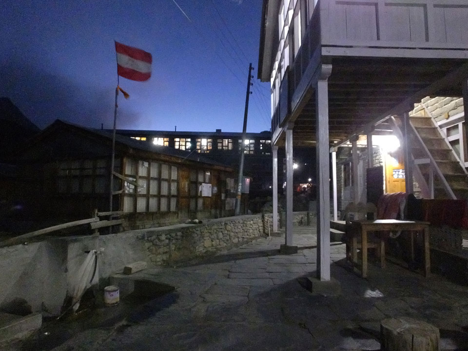 Dusche, Abendessen, alles super. Die anderen wollen morgen zum Ice Lake. Ich überlege mir das, weil meine Füße in echt schlechtem Zustand sind. Der heutige Tag brachte die weiteste Strecke. Meine Muskeln sind noch OK. Jetzt in ca. 3600m Höhe muss man sich erst mal akklimatisieren. Ich werde morgen wohl eher langsam machen und den Ort checken. Mal sehen.