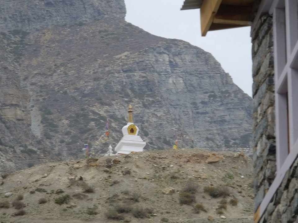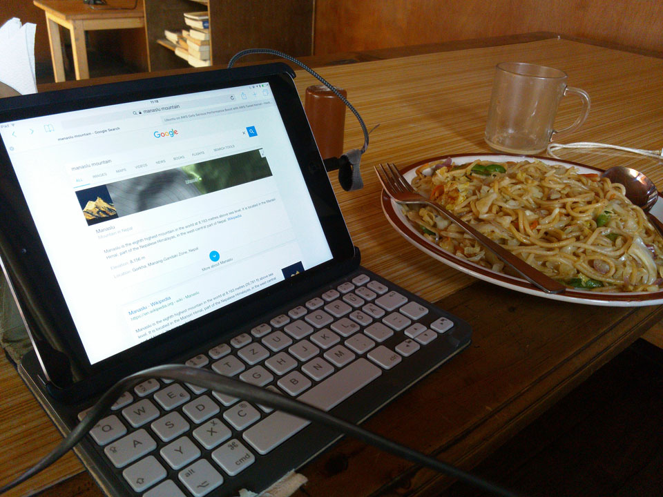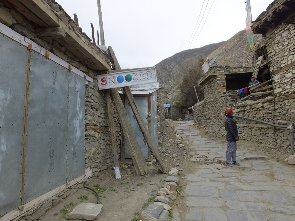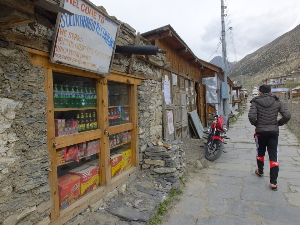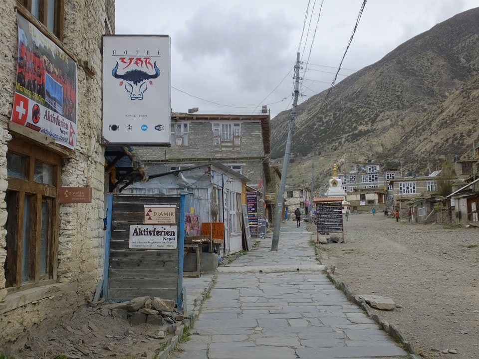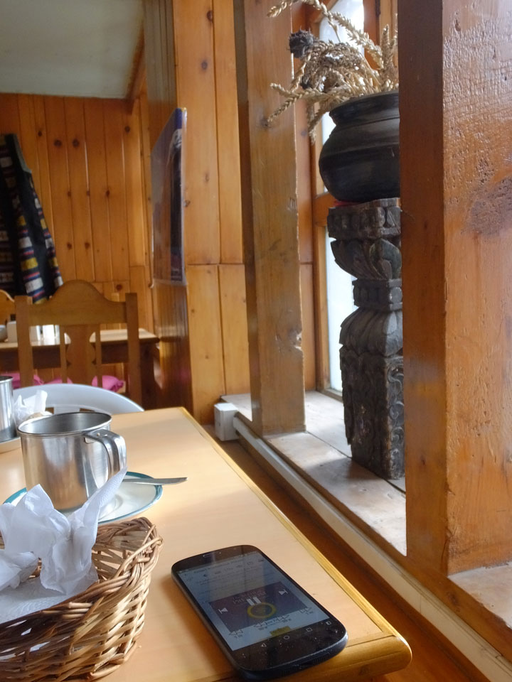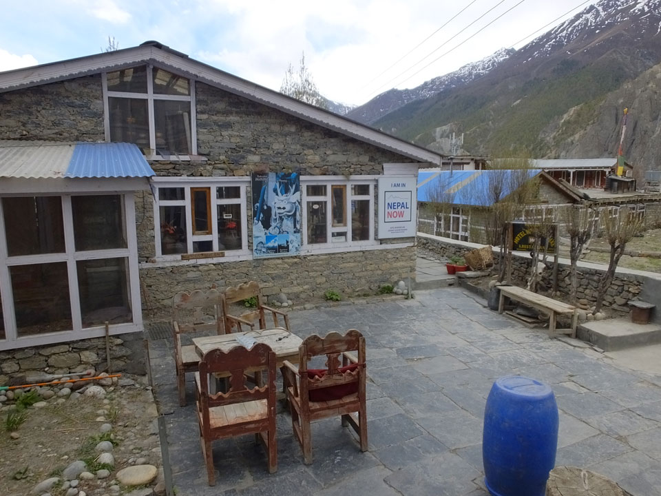 Ein paar Chats per Whatsapp, weil das Handynetz heute mal wieder ging. Dann erst um 10 Frühstück. Das Restaurant war leer. Gegen 11 kamen dann der Deutsche und Team Russland. Die hatten es heute von Ngawal hierher gebracht.