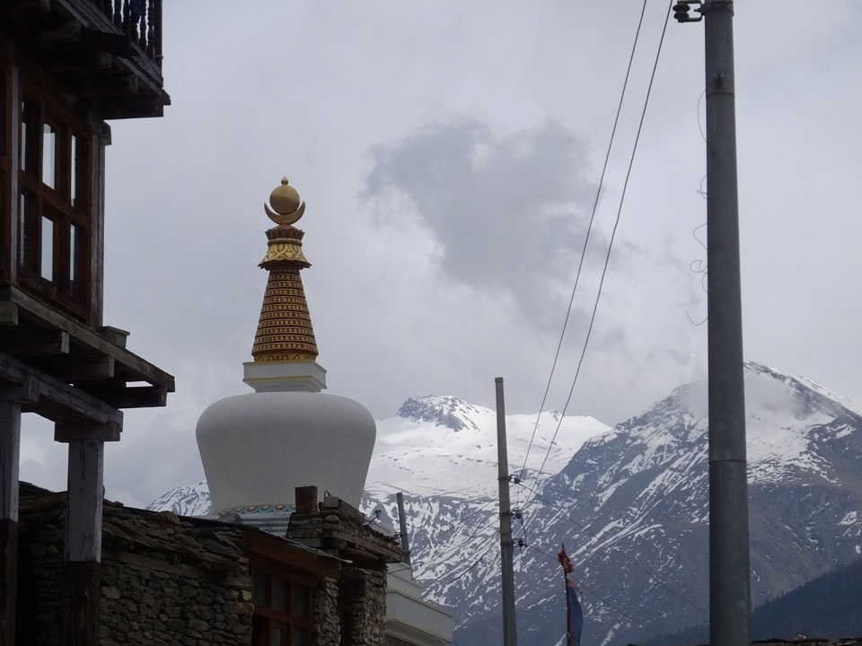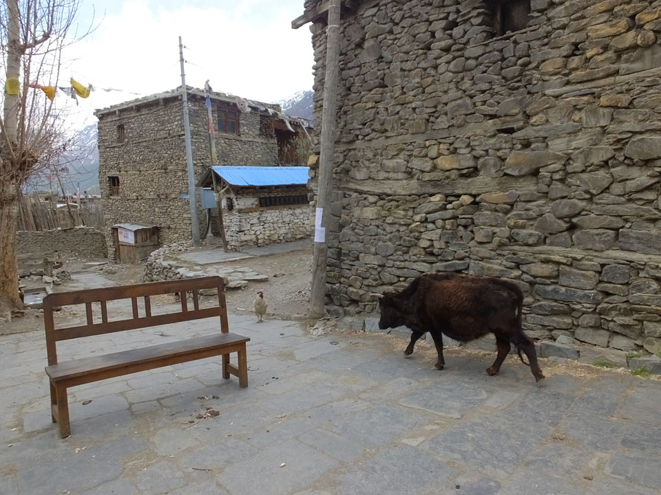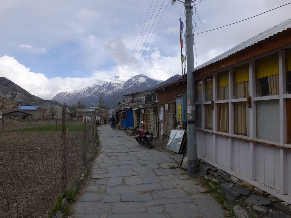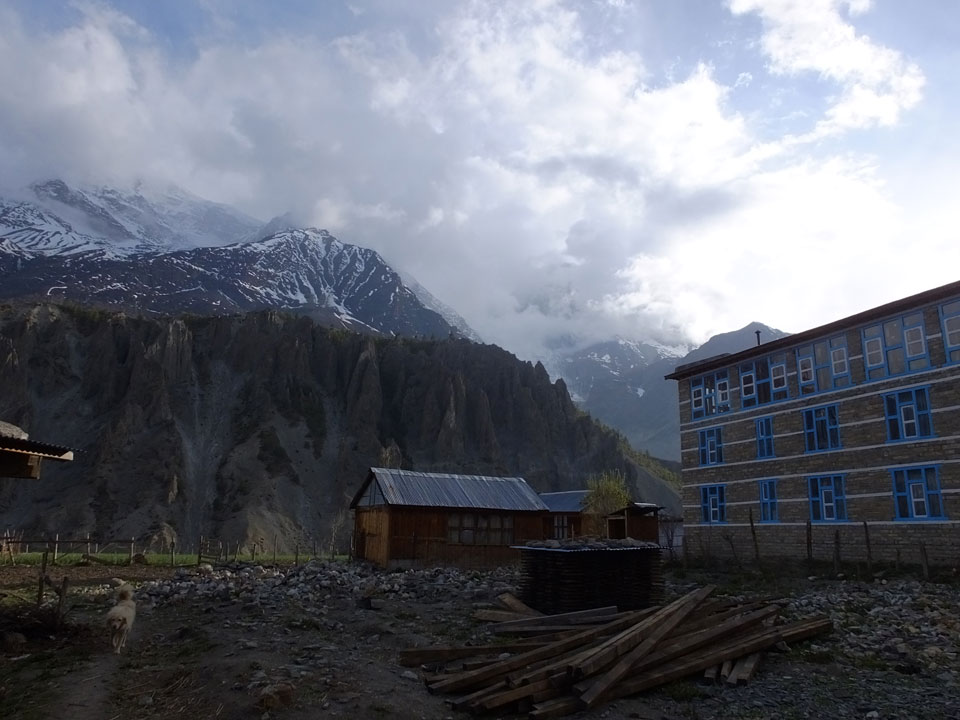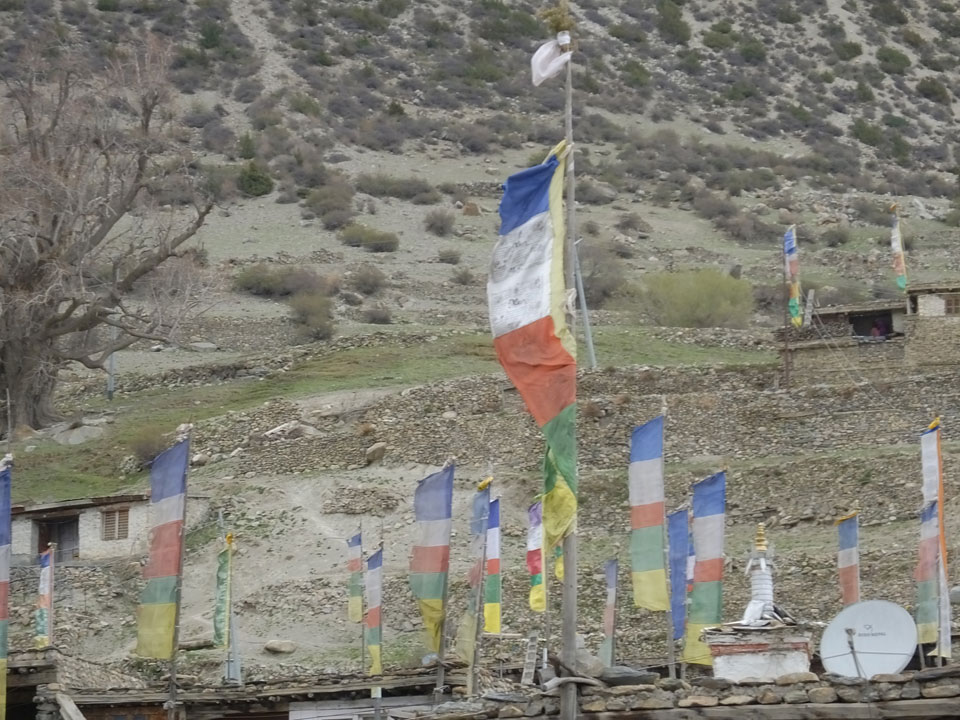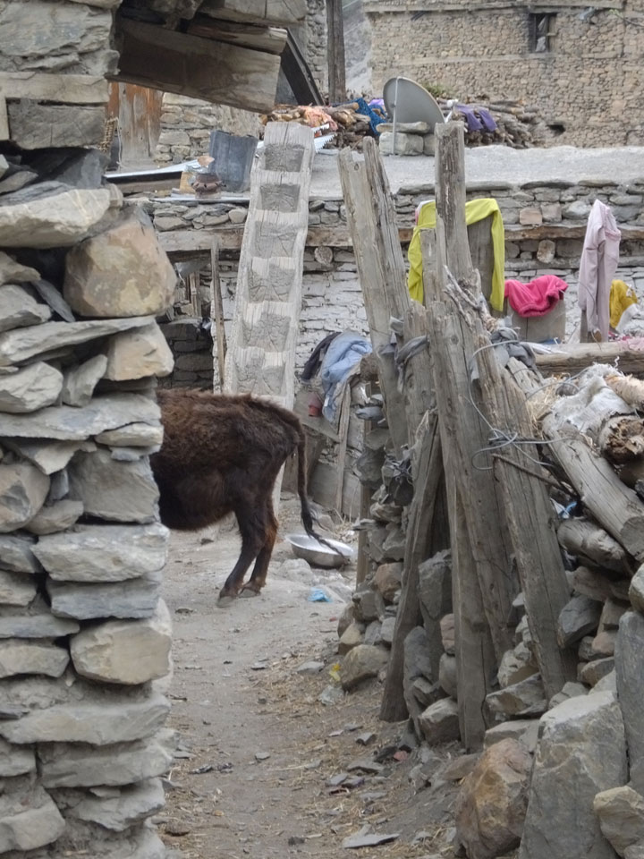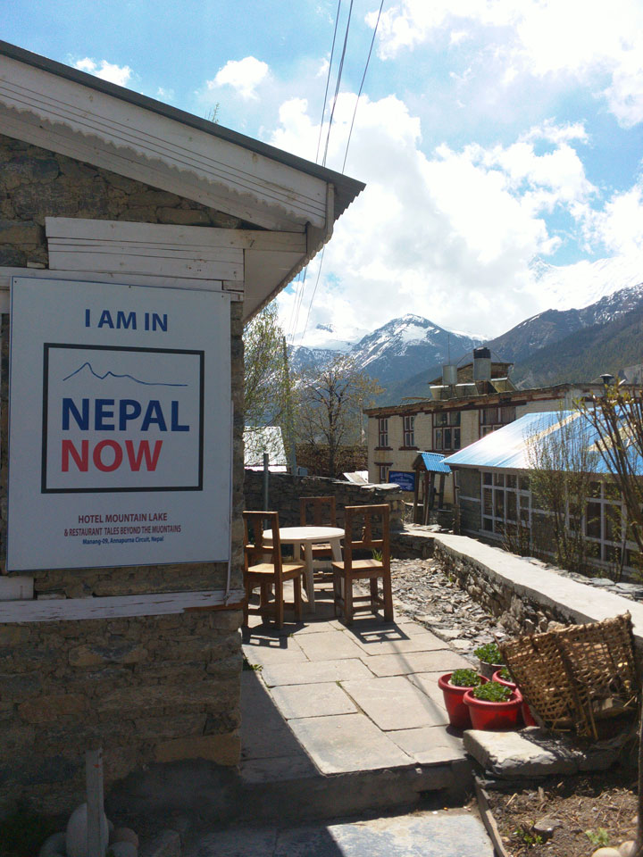 Ein paar Chats per Whatsapp, weil das Handynetz heute mal wieder ging. Dann erst um 10 Frühstück. Das Restaurant war leer. Gegen 11 kamen dann der Deutsche und Team Russland. Die hatten es heute von Ngawal hierher gebracht.