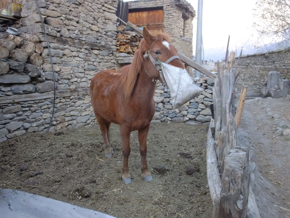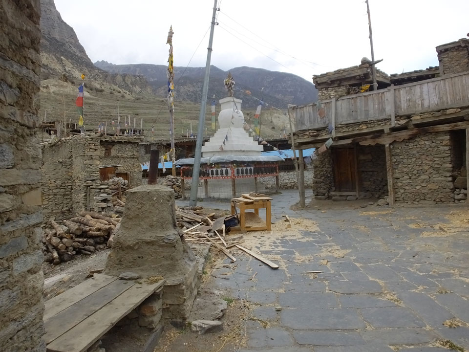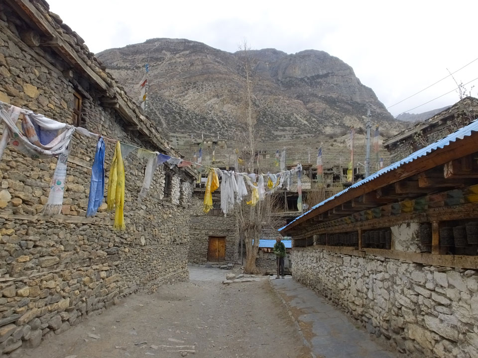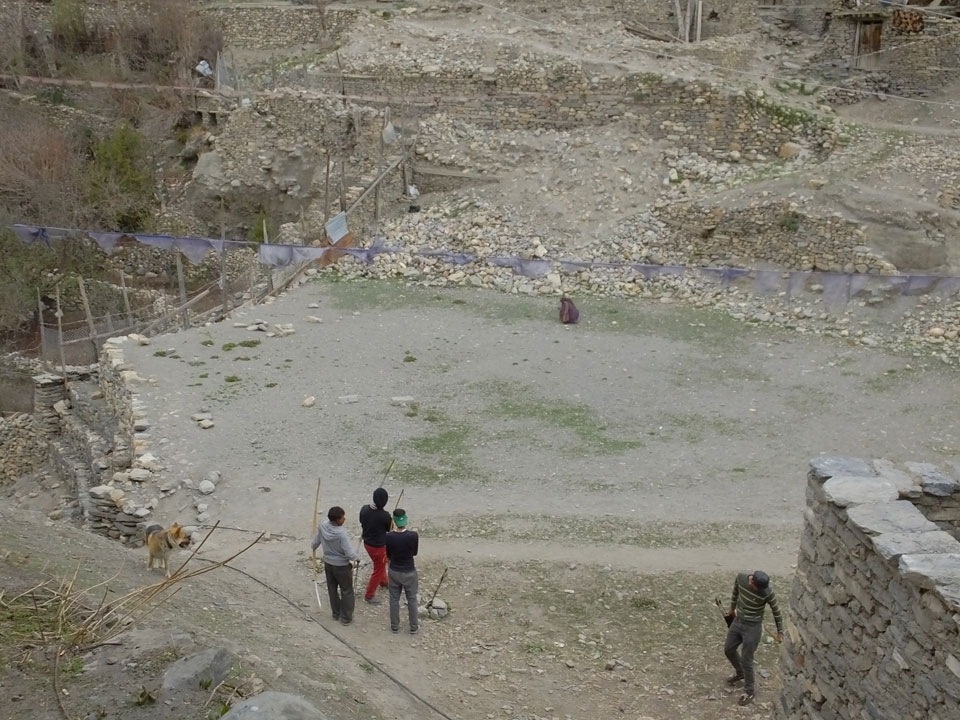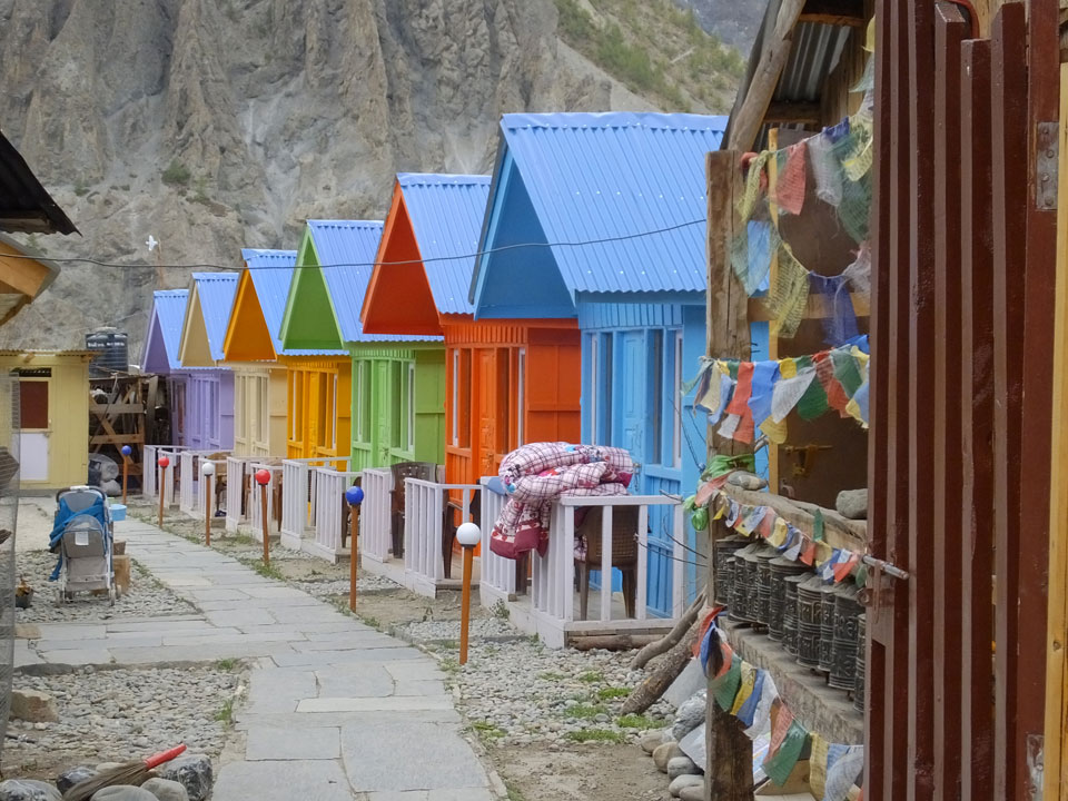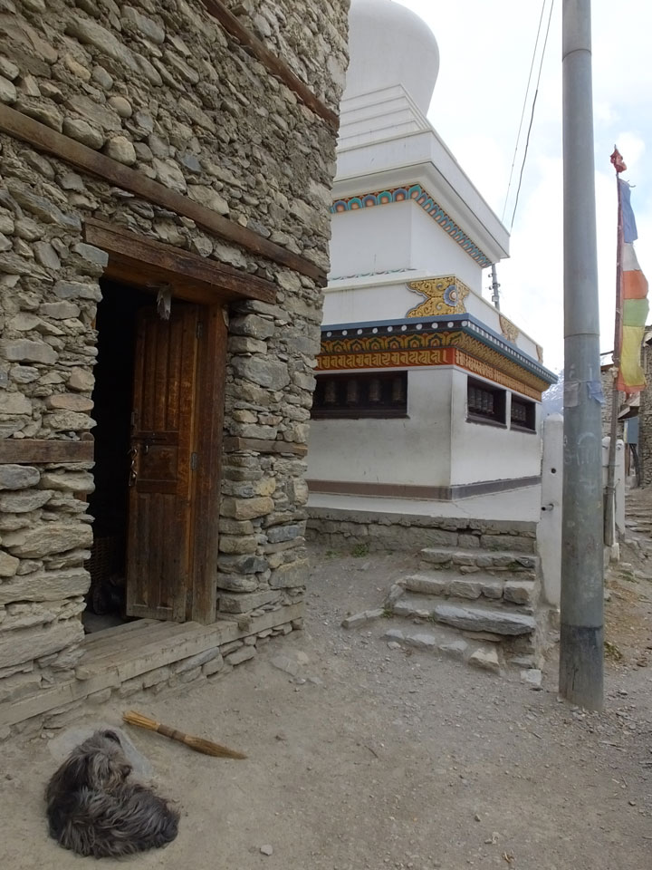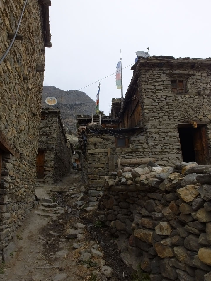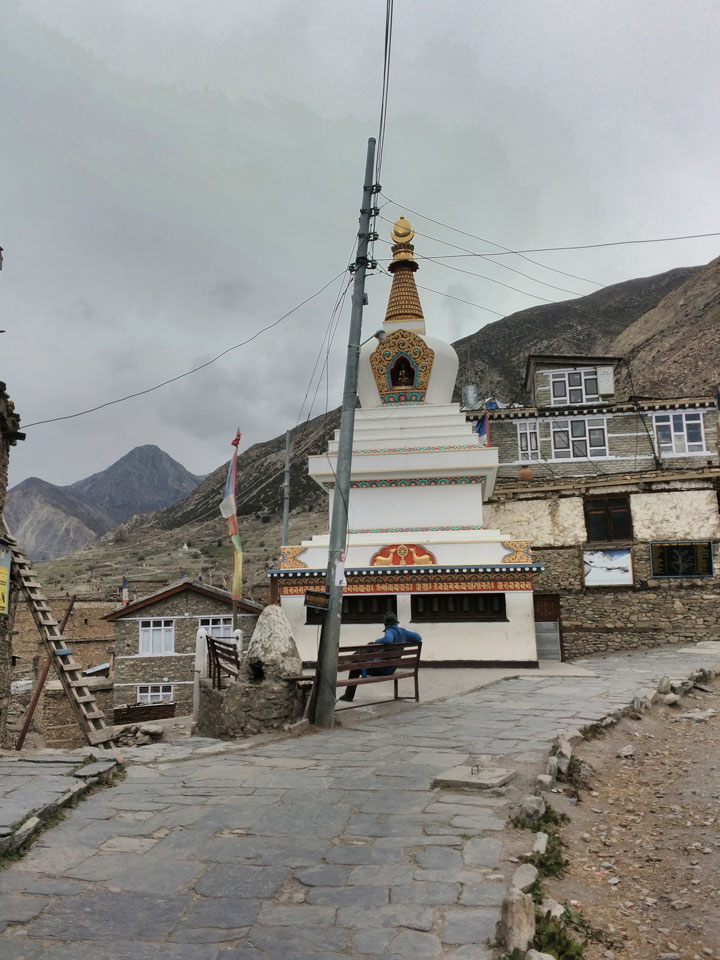 Ein paar Chats per Whatsapp, weil das Handynetz heute mal wieder ging. Dann erst um 10 Frühstück. Das Restaurant war leer. Gegen 11 kamen dann der Deutsche und Team Russland. Die hatten es heute von Ngawal hierher gebracht.