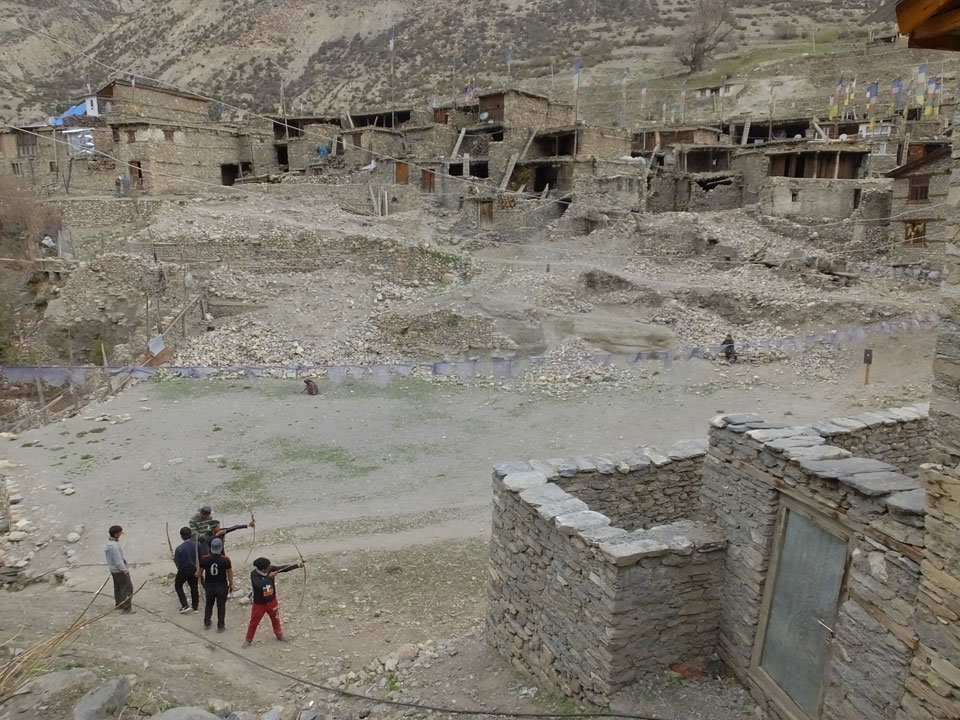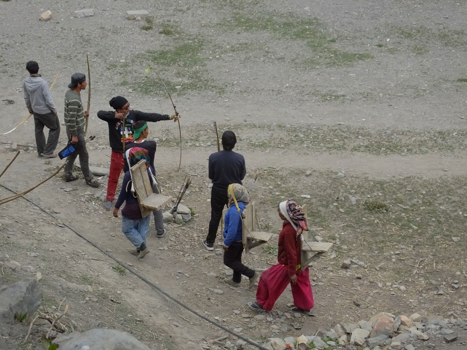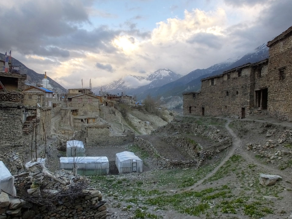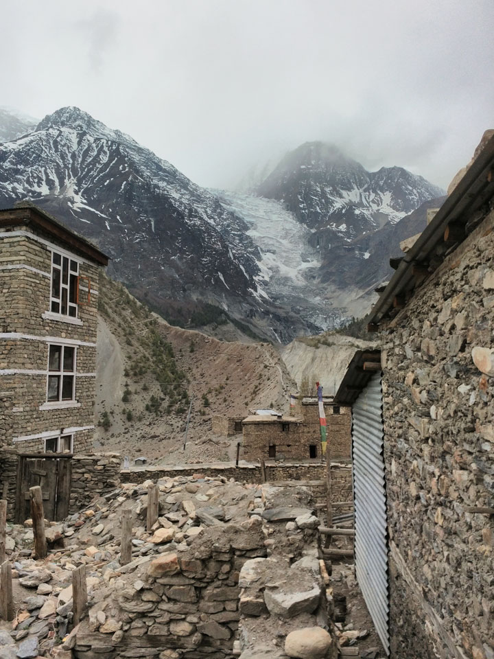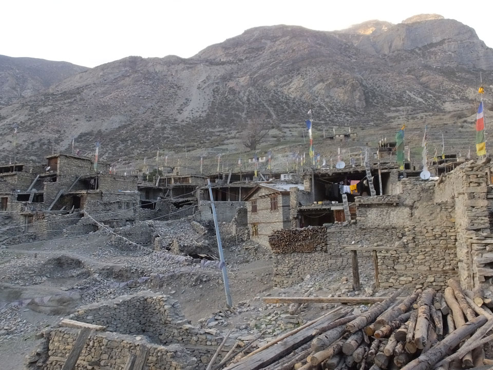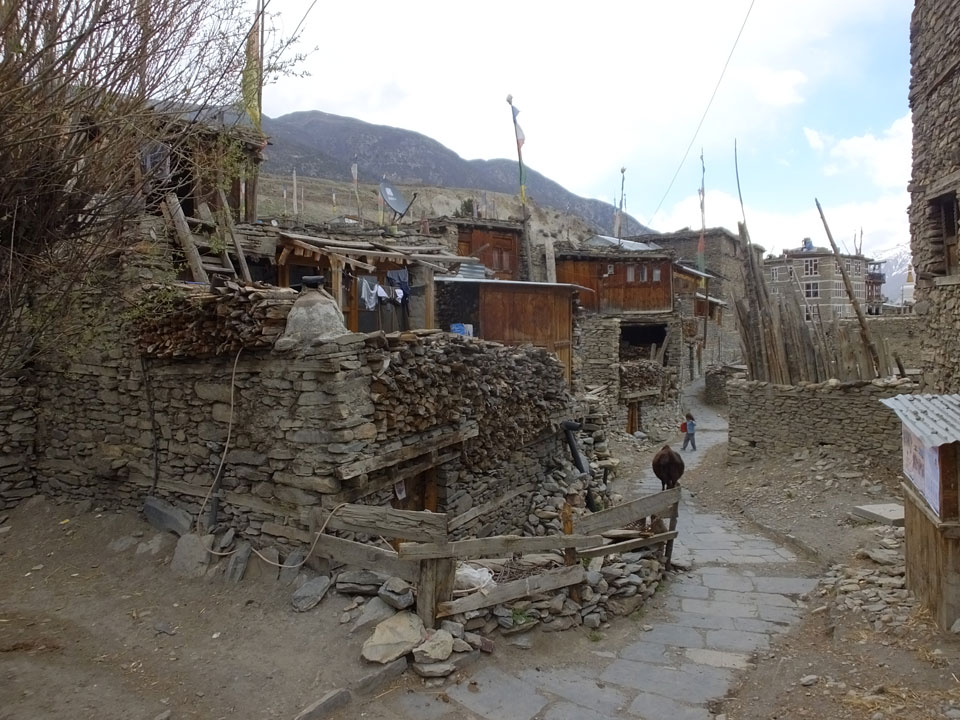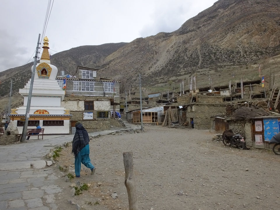 Ein paar Chats per Whatsapp, weil das Handynetz heute mal wieder ging. Dann erst um 10 Frühstück. Das Restaurant war leer. Gegen 11 kamen dann der Deutsche und Team Russland. Die hatten es heute von Ngawal hierher gebracht.