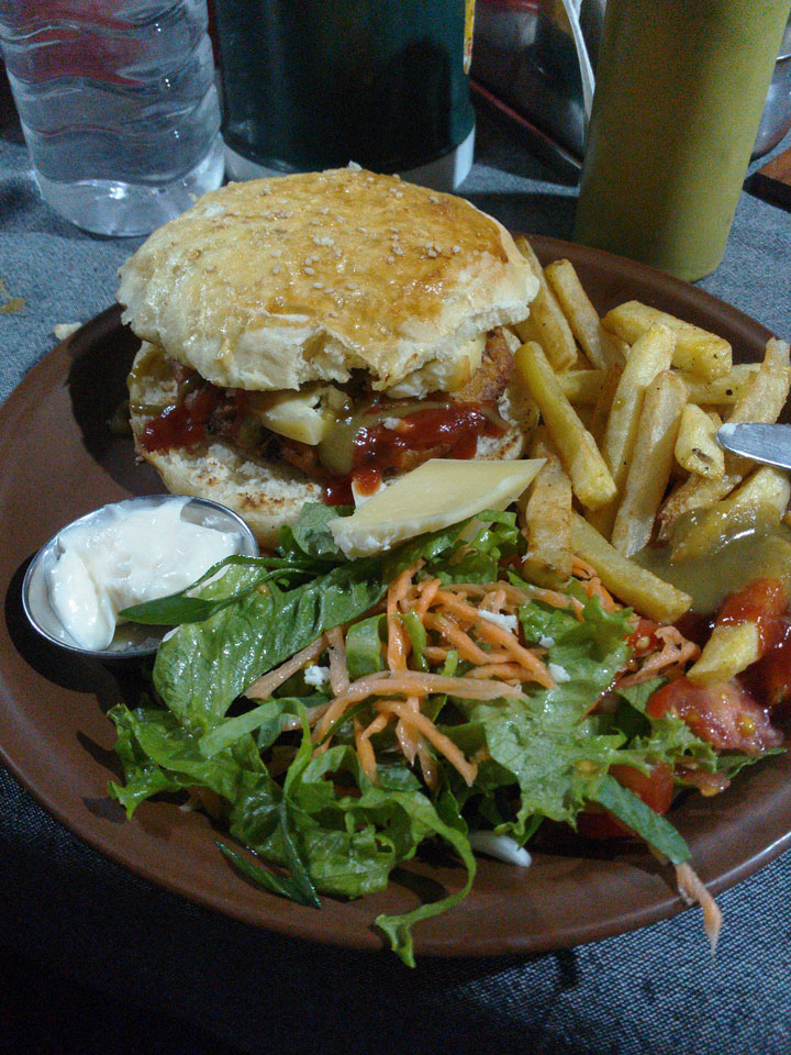Ich tippe am iPad etwas Blog und bestellte mir 11:30 gleich das Mittagessen mit – Chow Mei Veg..