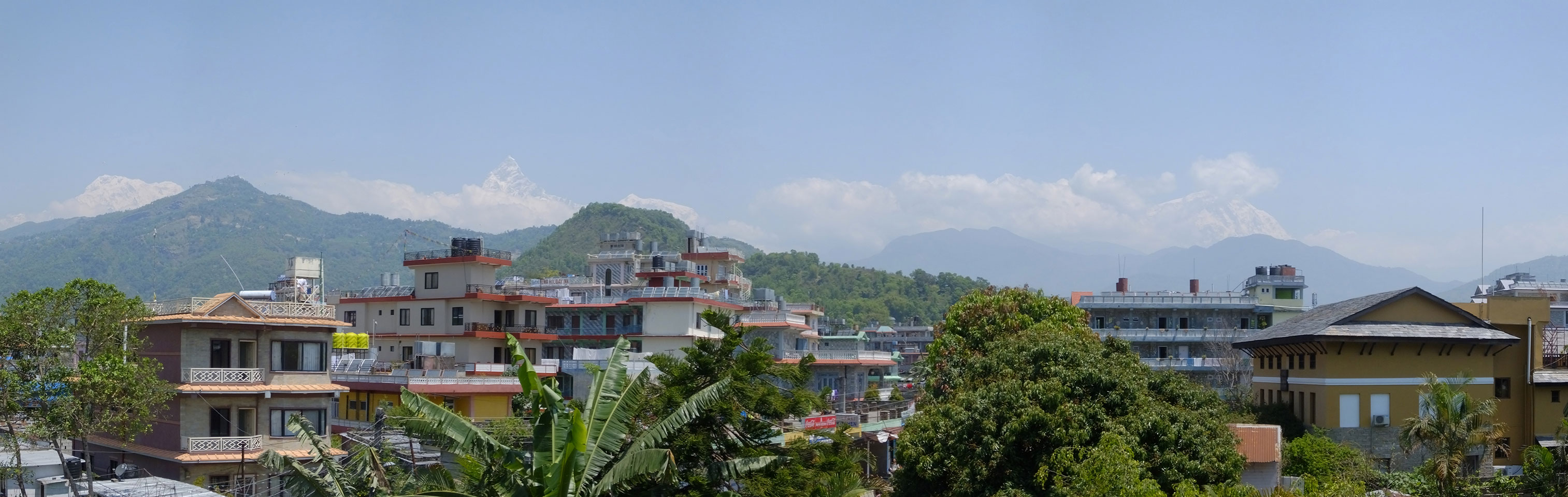 Morgens sah man die ganzen Berge ringsum Pokhara. Ein toller Anblick auch mit den Gleitschirmpiloten in der Ferne. Das Wetter war mal wieder super, ich ging etwas in die Straßen.