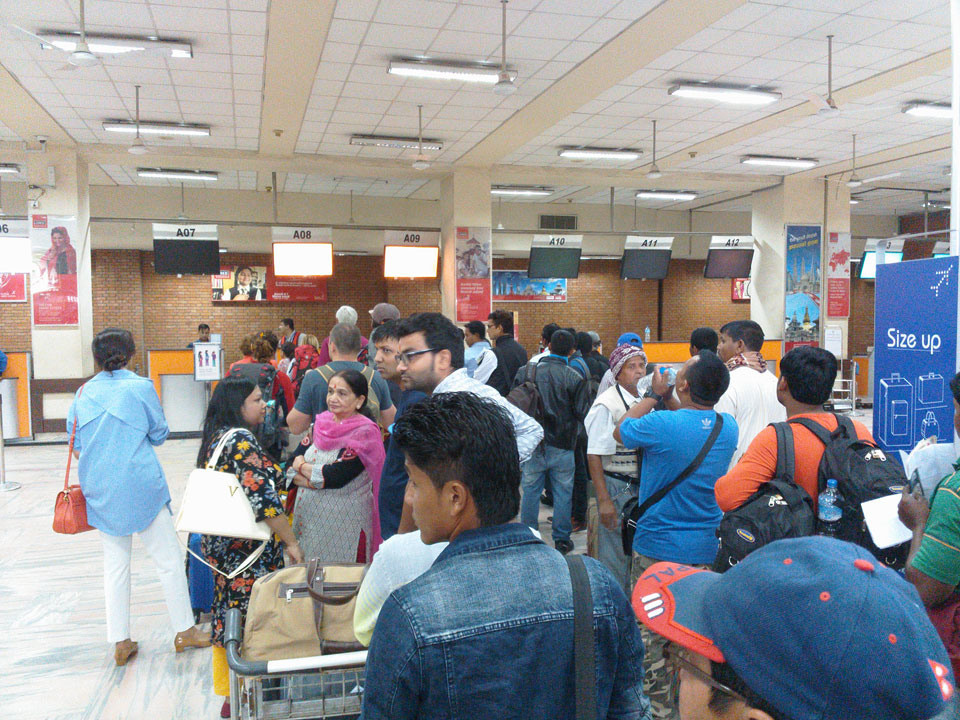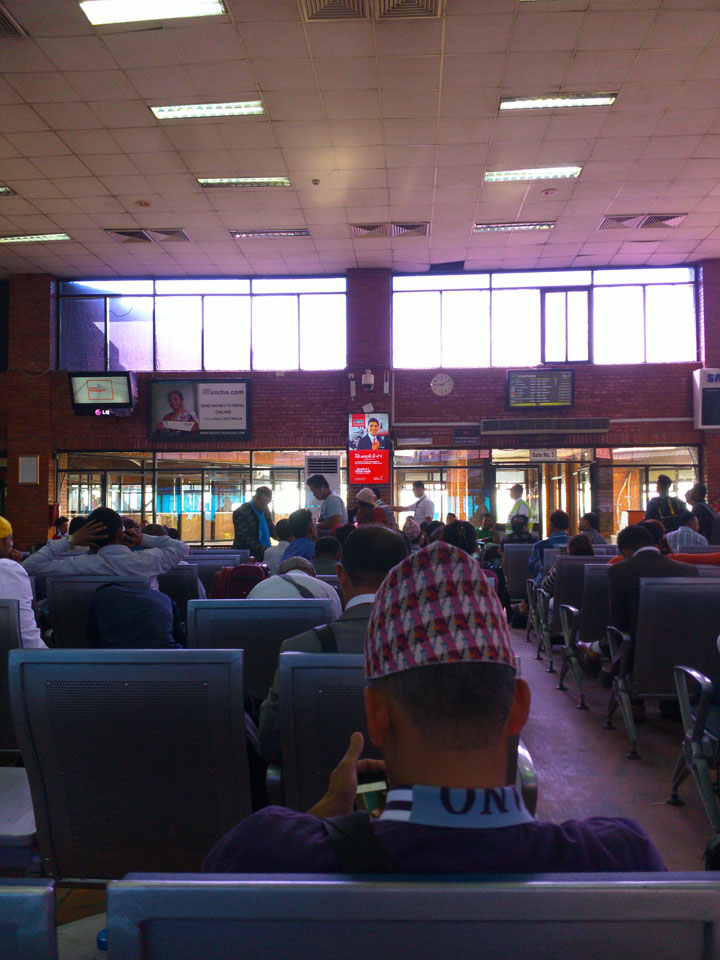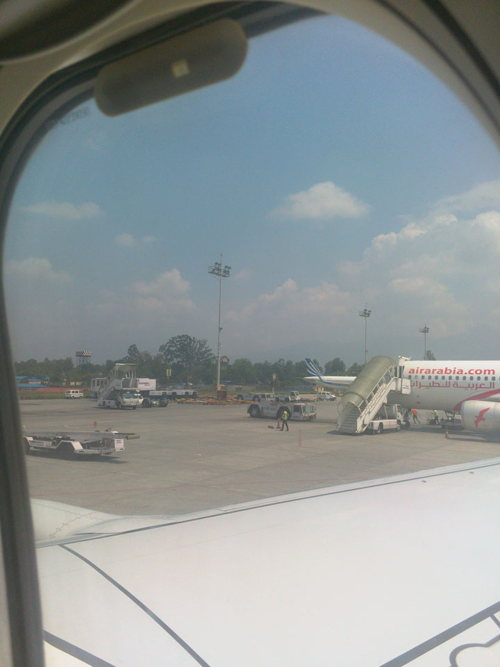 Am Flughhafen standen schon viele Nepalesen, die auf dem weg in die Golfregion mit ihren Arbeitsvisa waren. Für Touristen wie mich war die Sache einfacher. Das Einchecken bei flydubai ging schnell, doch dann sagte man mir, dass der Flug 2 Stunden Verspätung habe. Ich hätte also um einiges länger schlafen können.