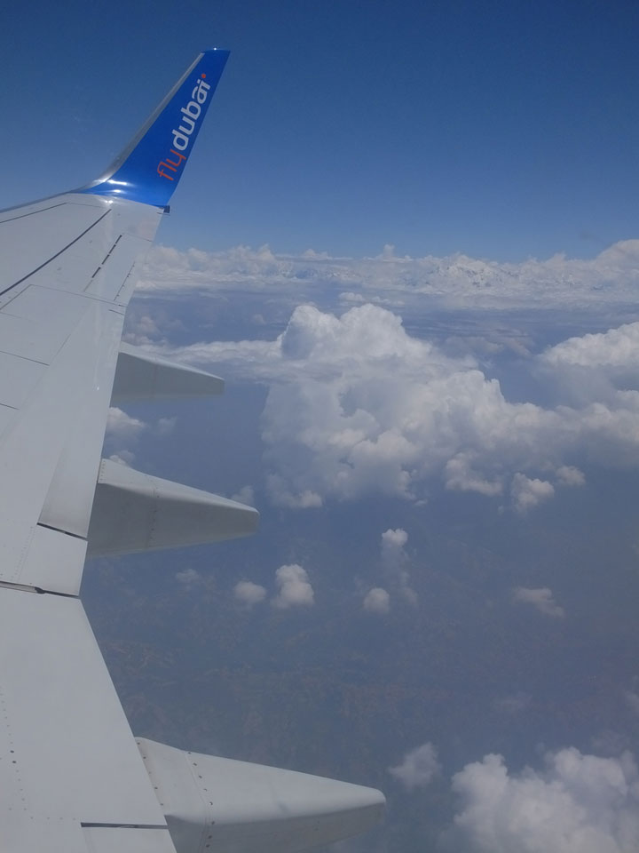 Der Flug nach Dubai ging OK über die Bühne. Ein schöner Ausblick auf den Himalaya so weit über den Wolken. Erstaunlich ist, dass selbst bei dem 4h Flug kein Essen oder Getränke incl. waren. Der Grund für die Verspätung wurde auf’s Wetter geschoben. Morgens gibt es wohl viel Nebel in Kathmandu, sodass das Management die Flugzeiten auf später verschiebt.
