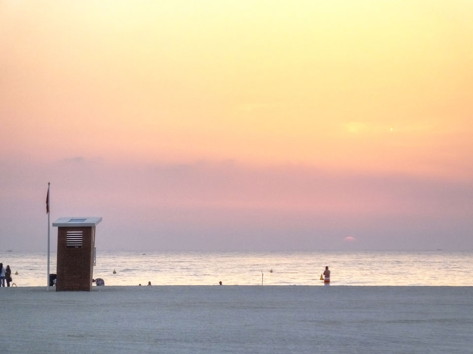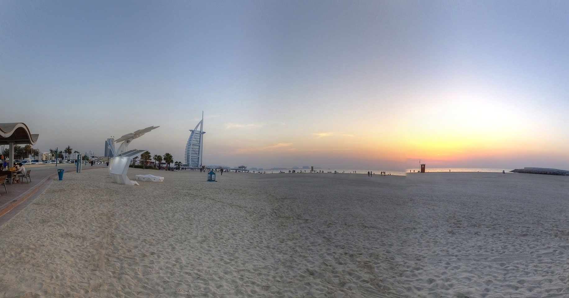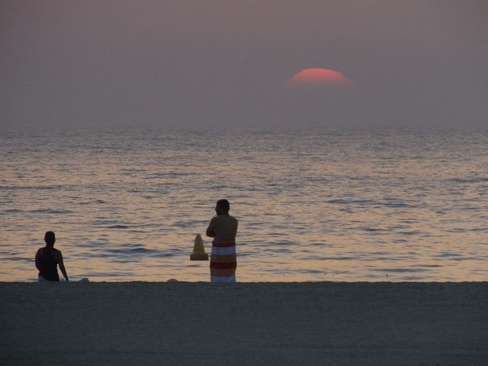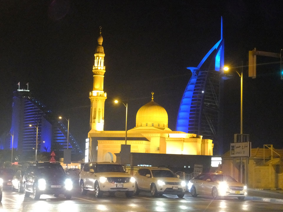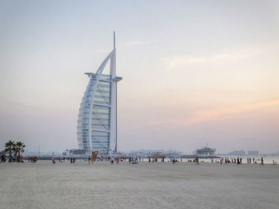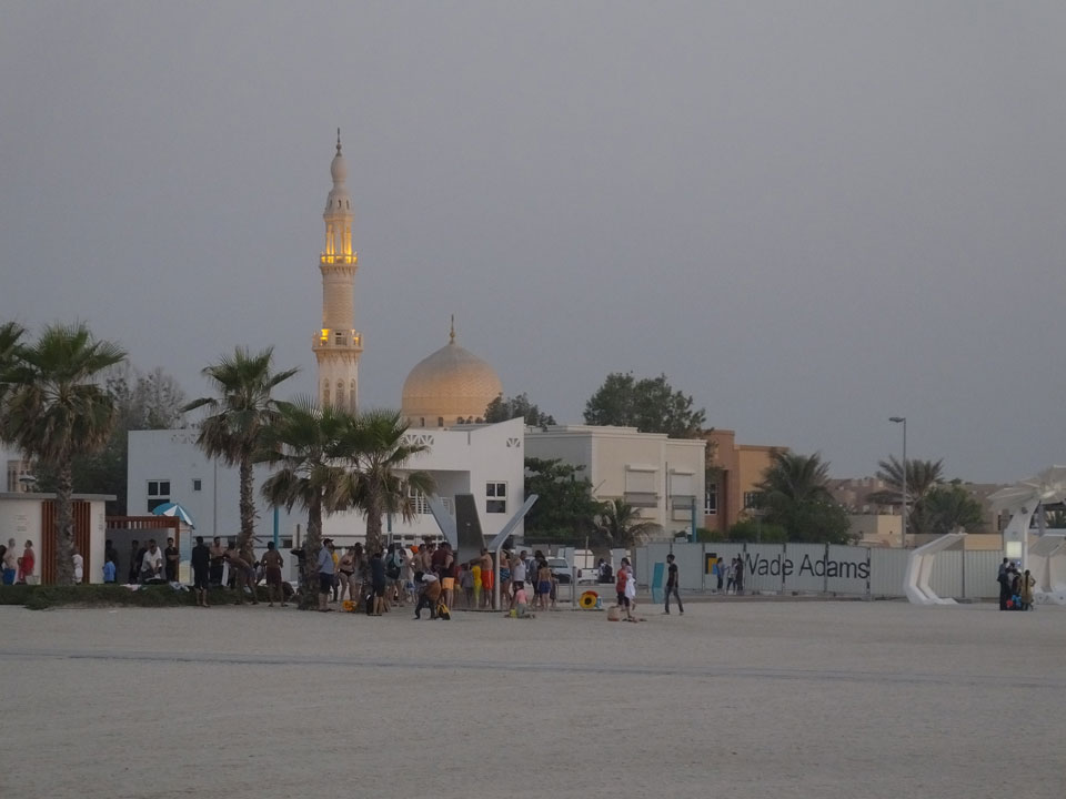 Im Bus roch es nach ein paar Bremsmanövern nach verkohlten Bremsscheiben. Wir mussten den Bus wecheln und es wurde immer später. Über eine Stunde brauchte ich bis Marina Beach. Dort sah ich das berühmte Burj Al Arab Hotel in Segelform. Ich hüpfte in’s Wasser. Sehr schön und angenehm mit der perfekten Temperatur. Ich blieb recht lange, doch es grauste mir vor’m Heimweg.