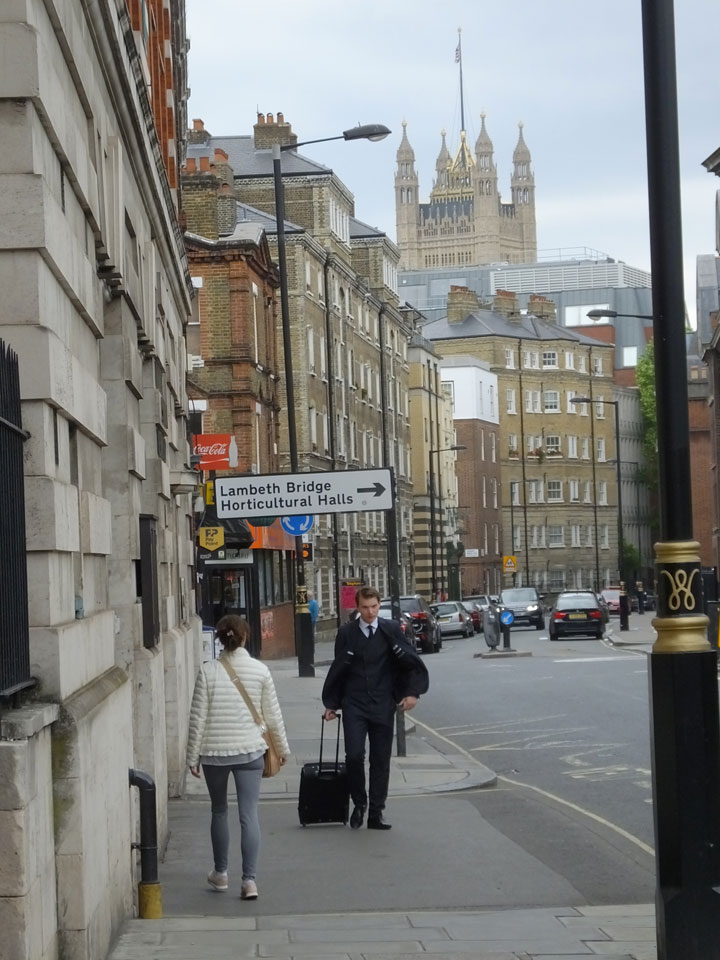 Schwach nach der Nacht. Frühstück war OK, doch nach dem Auschecken lag ich bis Mittags recht regunglos in der Lounge. Als dann Energie zurück kam, drehte ich noch eine kleine Touristenrunde durch Westminster.