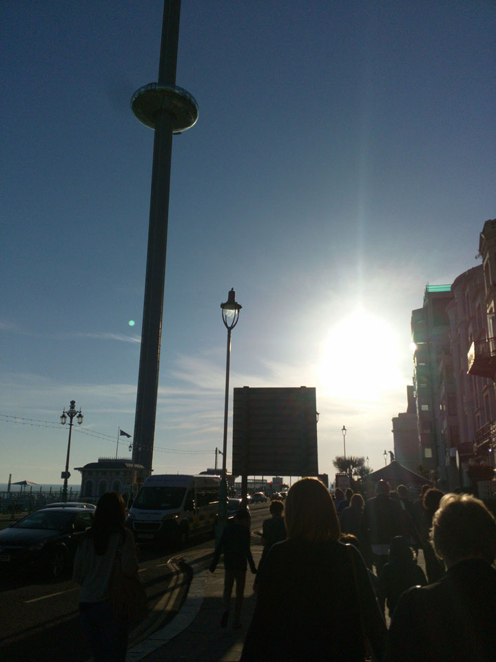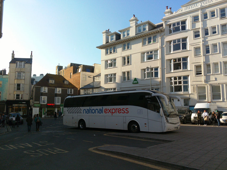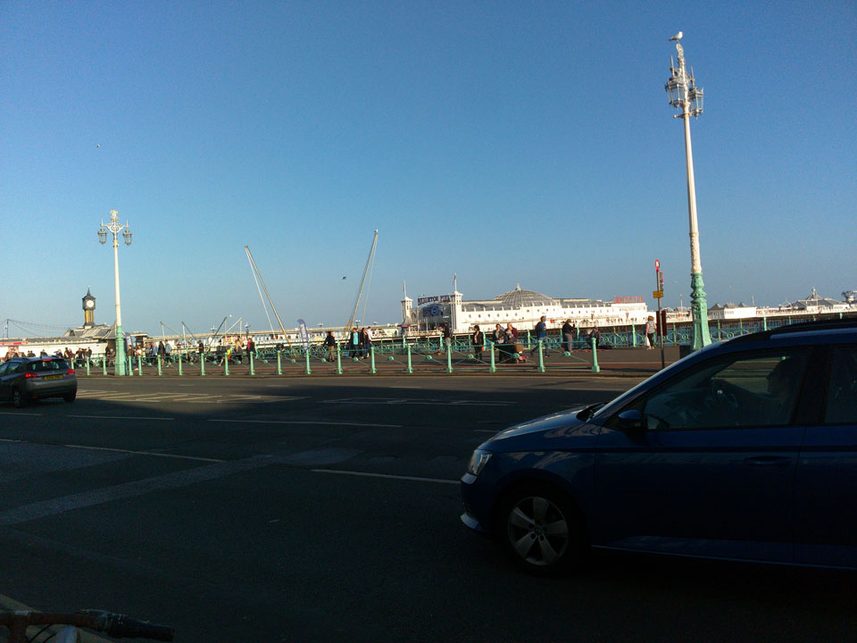 Bis zur Victoria Coach Station rief ich mir doch ’nen Uber, wäre sonst die 20′ gelaufen. Heute aber nicht. Der Bus um 16:00 nach Brighton kam GBP 11.70, legte dann etwas verspätet ab. Inzwischen wieder Sonnenschein.