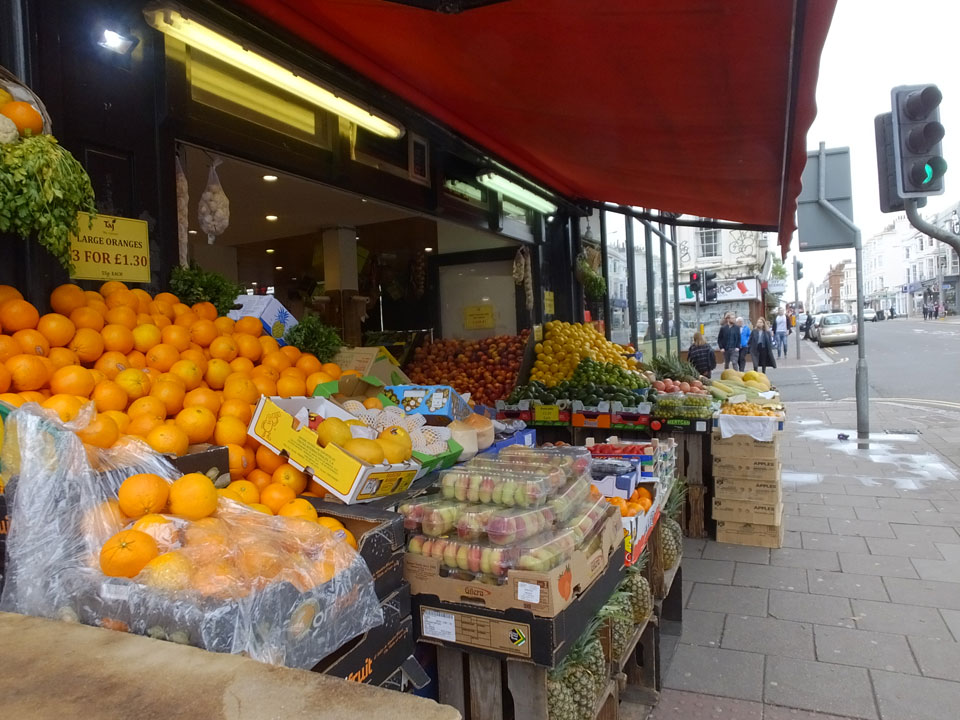 Nachmittags dann ging ich endlich mal auf die Straße. Das Wetter heute war wolkenverhangen und eher ungemütlich. In einem Taj Supermarkt kaufte ich mir was zu essen. Preislich geht das alles schon mit dem Pfund zur Zeit.
