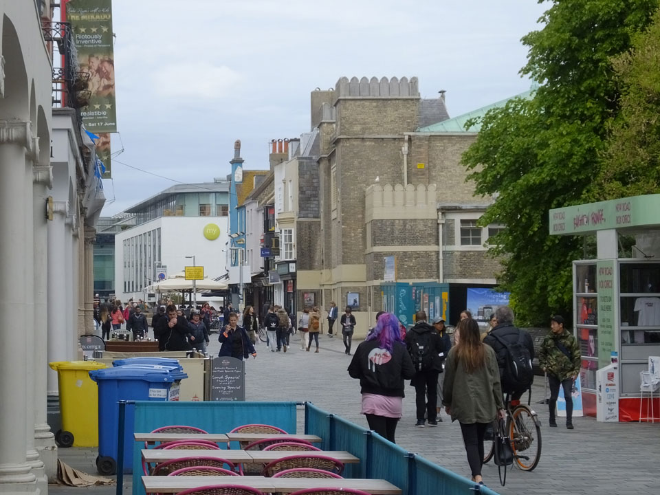 Ich ging in den Royal Park zum Brighton Dome. Das sah interessant aus – eine Mischung aus Klassik mit Orientalisch. Viele Wege entlang der kleinen Gassen. Mir gefällt der Ort. Belebt, mit halt etwas zu vielen Crazies aber ansonsten schon ganz nett im Sommer, denke ich mal.