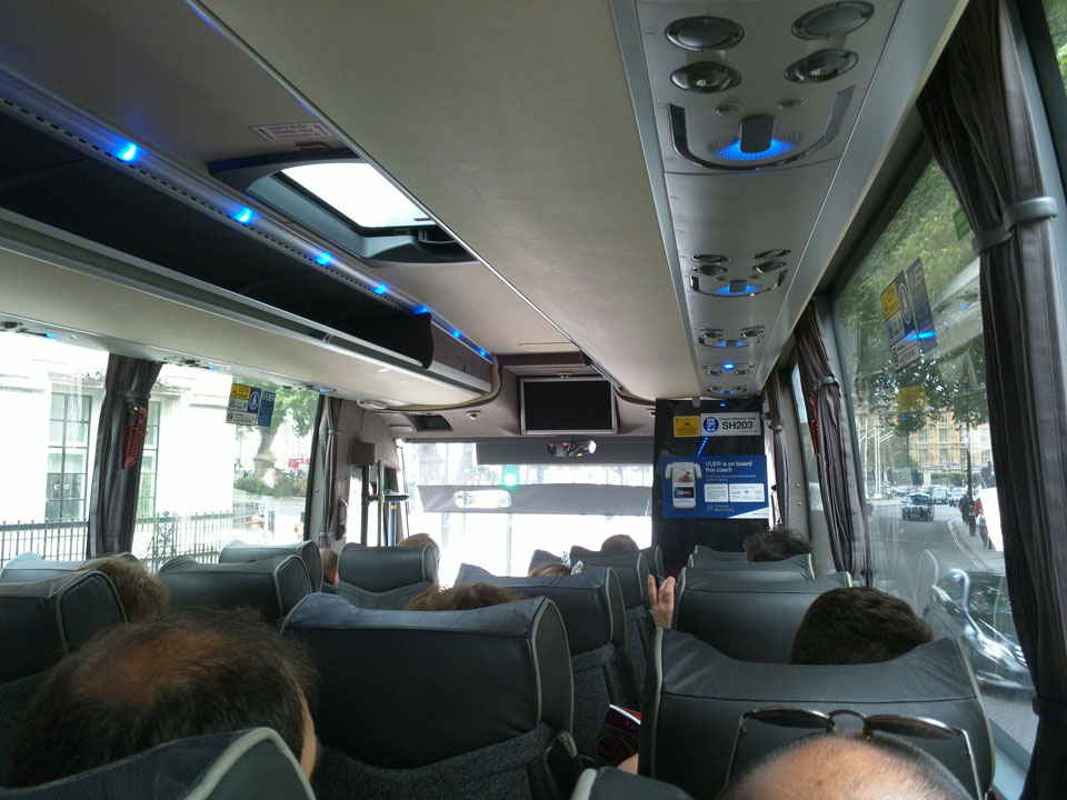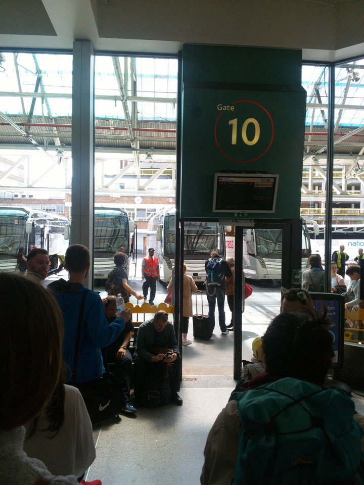 Ich machte es mir auf der Rückreise einfacher und rief mir ’nen Uber zum Busstopp. Das kostete GBP 6, war’s aber auch zeitlich wert. Pünktlich 10.50 fuhr der National Express dann Richtung London Victoria, kaum gefüllt.
