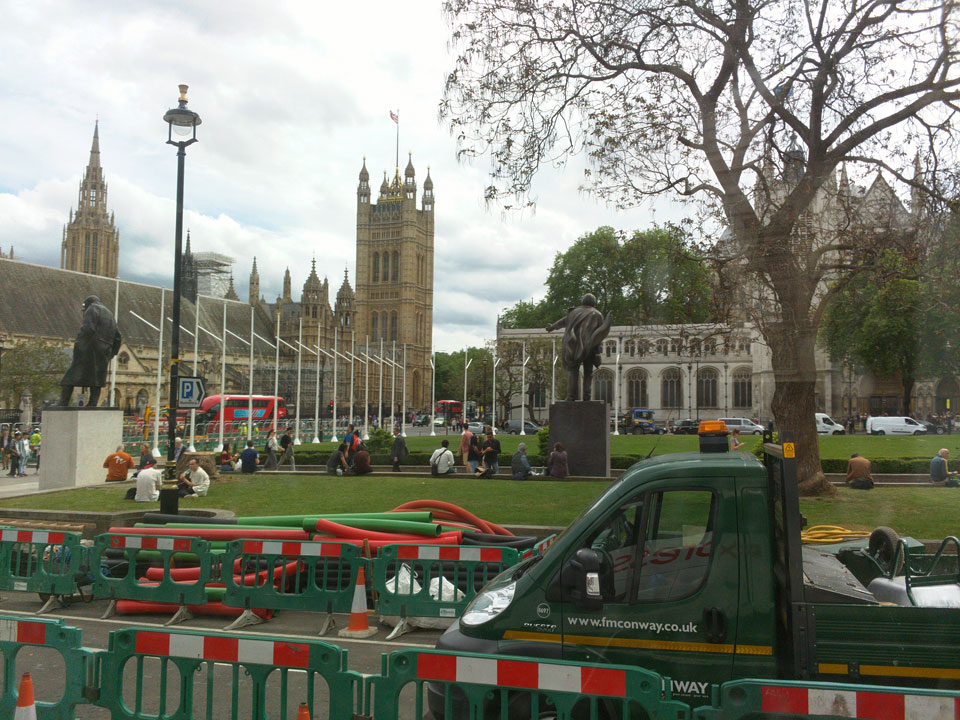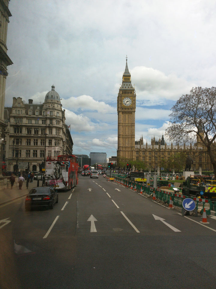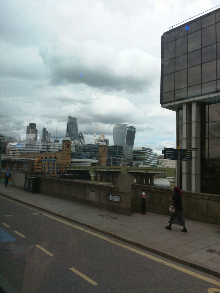 Die Fahrt wieder zurück also bei schönem Wetter. Auf der Victoria Coach Station hatte ich etwas Aufenthalt, nach Stansted ging’s wieder mit einem vollen Bus weiter. Die Stauzeiten in der Innenstadt sind in der Fahrtzeit eingerechnet. Da braucht man schon Geduld. Ich sah so im Vorbeifahren noch den Tower, die Tower Bridge und den Finanzbezirk ein wenig.