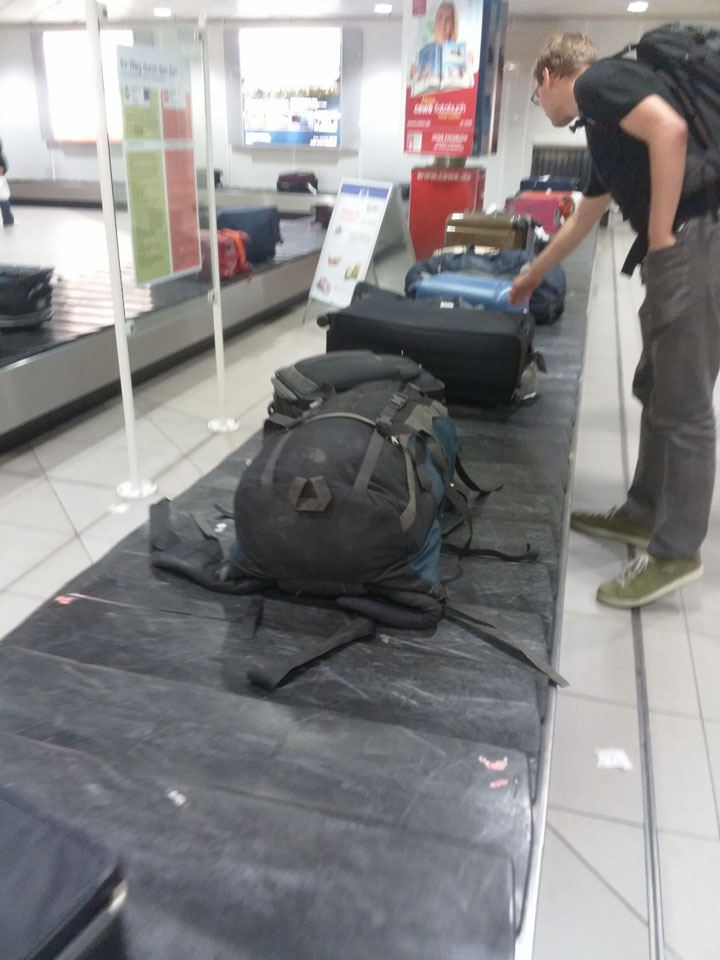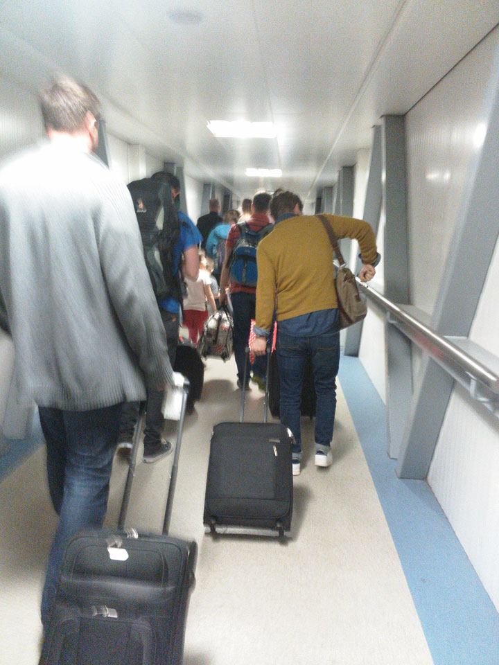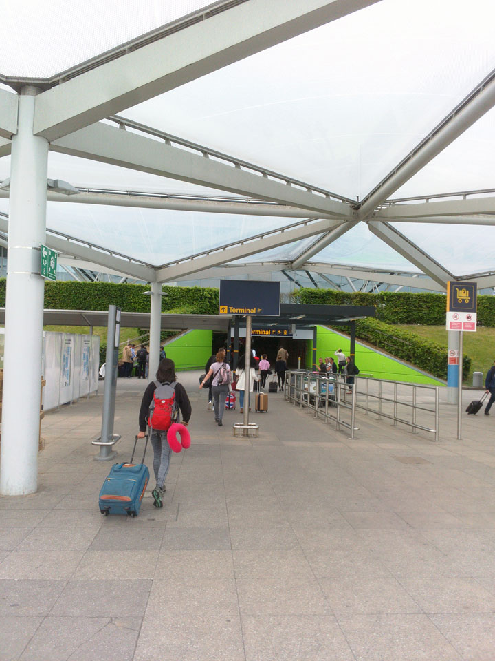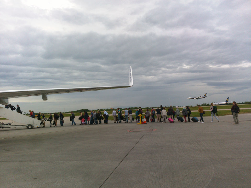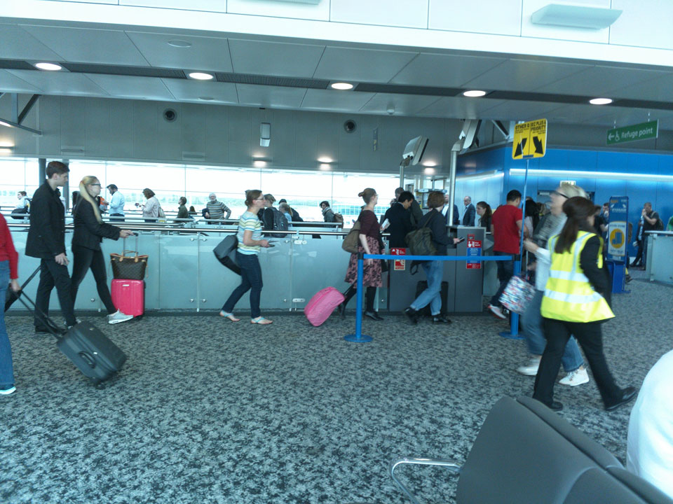 Auf Stansted hatte ich viel Zeit. Ich setzte meine restlichen Klimpermünzen bei M&S um. Nur ein Ei-/Tomatensandwich für 2.40 sprang dabei raus. Bei Ryan checkte ich dann mein Gepäck ein. Ich hoffe, dass ich mir bei kommenden Reisen im Sommer diese Kosten sparen kann.
