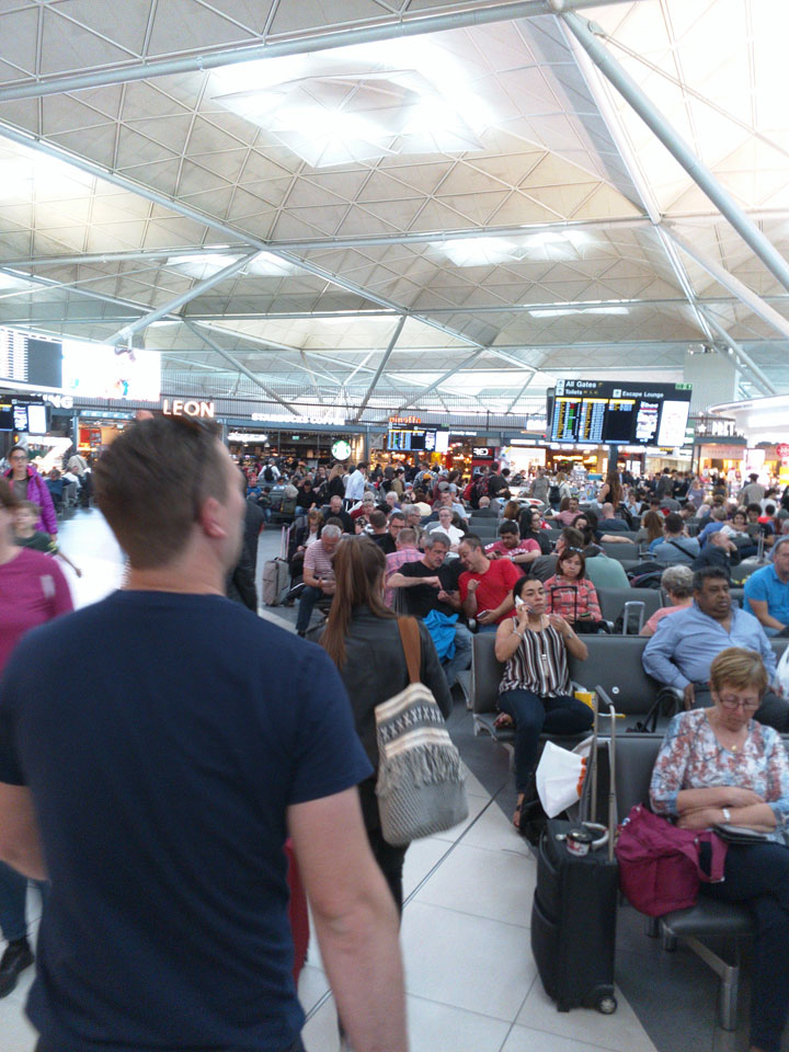 Stansted dann vor den gates ähnelte eher einem Einkaufszentrum. Zuerst wurde man durch einen großen Duty Free Shop geleitet. Da war Whisky Fest. Ein Online-Check der heruntergesetzten Preise zeigte aber keine besonderen Ersparnisse. So blieben meine 35 verbliebenen Pfund erst mal im Portemonnaie.