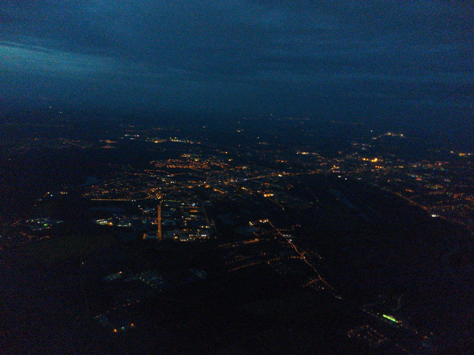 Das Flugzeug nach Leipzig startete und landete ebenfalls pünktlich. Gut war, dass ich statt meines zugewiesenen Mittelplatzes an’s Fenster rücken konnte. Es waren wohl Leute fern geblieben, jedenfalls auch wieder nicht ganz so voll.