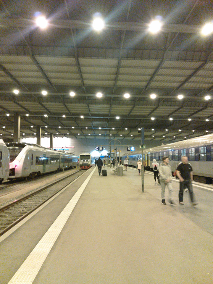 In Leipzig wurde mir eine Verbindung nach Chemnitz selbst jetzt gegen 22:00 angezeigt. Das war gut, denn obwohl es eine Option zur Übernachtung gab, wollte ich doch lieber direkt nach Hause. Per Schienenersatz nach Schkeuditz, dann S-Bahn Hauptbahnhof. Als ich auf dem Leipziger HbF dann zu den Gleisen ging, hörte ich Knaller, dann Explosionen wie von Riesenböllern – oder noch mehr. Die Leute guckten aus der Ferne aber das klang alles ziemlich realistisch nach Terror. Ich blieb am anderen Ende der Bahnhofshalle stehen. Einige Leute rannten, doch die Bahnangestellten blieben ruhig. So kam dann auch eine Bestätigung, dass das nur eine Übung sei. Volle Kanone wurde da ein Programm durchgezogen. Die Sicht war mit Wänden versperrt. Ich ging zum meinem Zug, musste jetzt noch eine Viertelstunde auf Anschlussreisende warten.