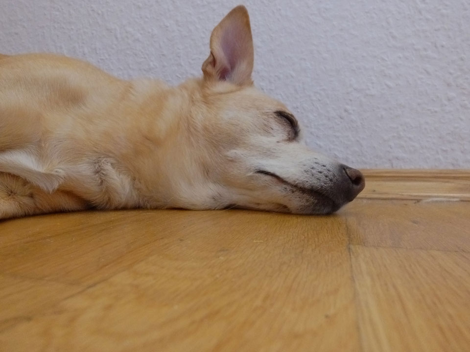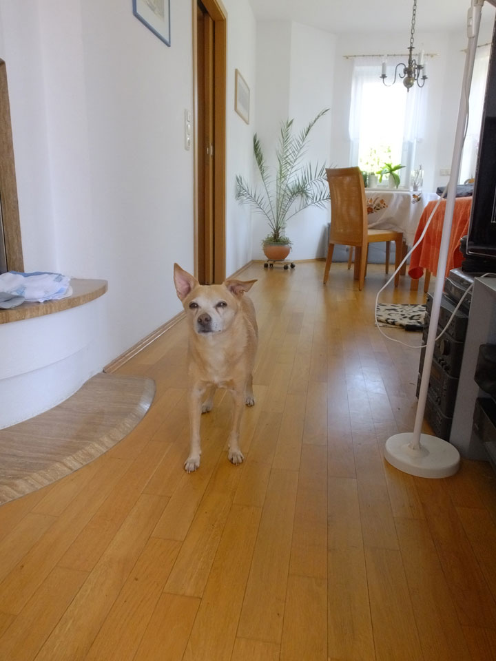 Der Sommer ist da. Der Hund war auch im Haus und suchte sich den kühlsten Platz zum Chillen. Ich machte meine Sachen, langsam. Es ging an’s Packen, wobei ich wieder den großen Rucksack füllte und wieder erst spät in der Nacht fertig wurde..