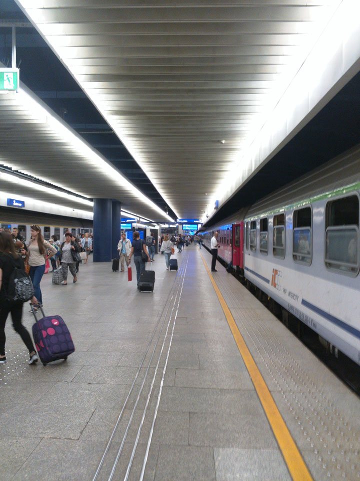 Fast hätte ich es verschlafen. Ein schnelles Frühstück und hurtiger Lauf zum Bahnhof brachten mir genügend Zeitpolster. Ich hatte einen Sitzplatz im vollen Zug nach Warschau und döste einige Male weg. Zu wenig Schlaf in der verschnarchten letzten Nacht im Hostel.