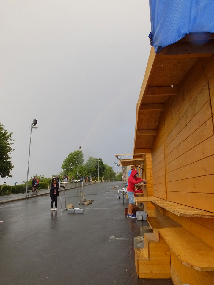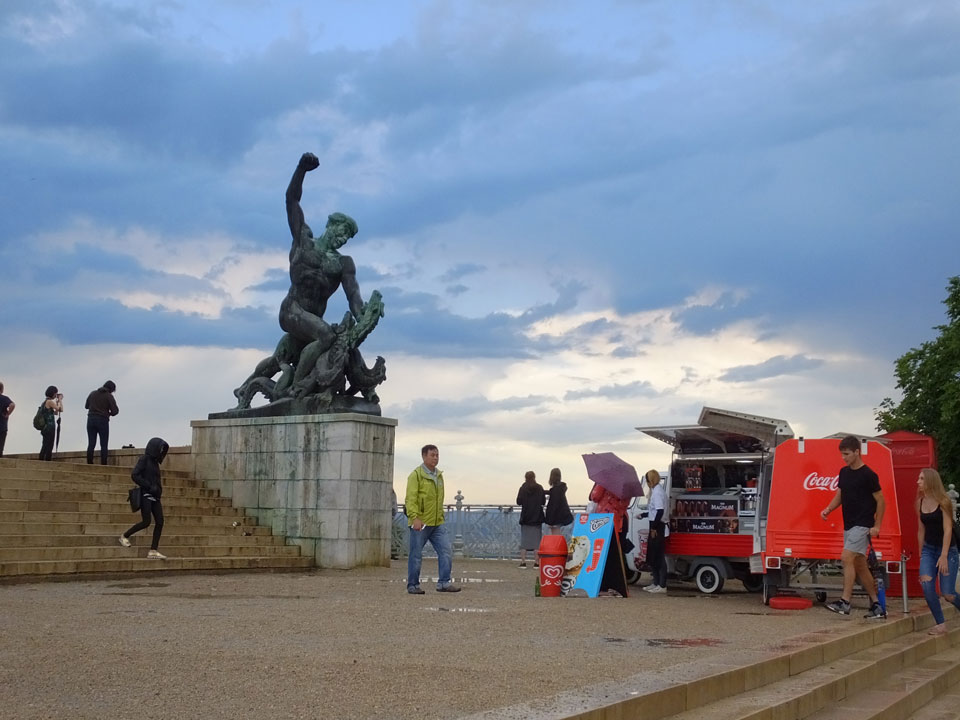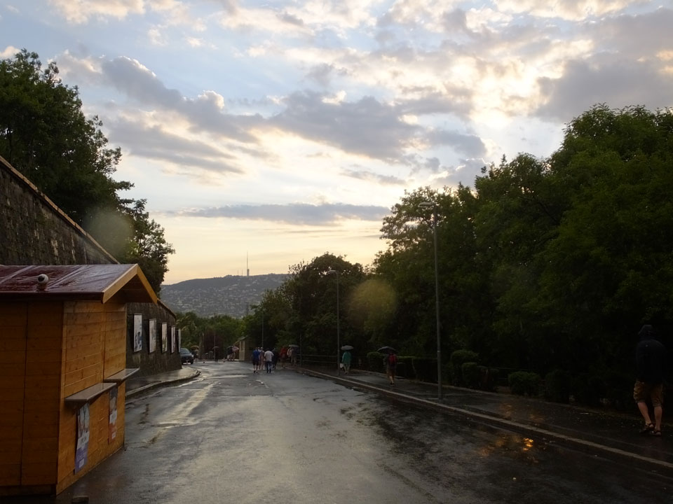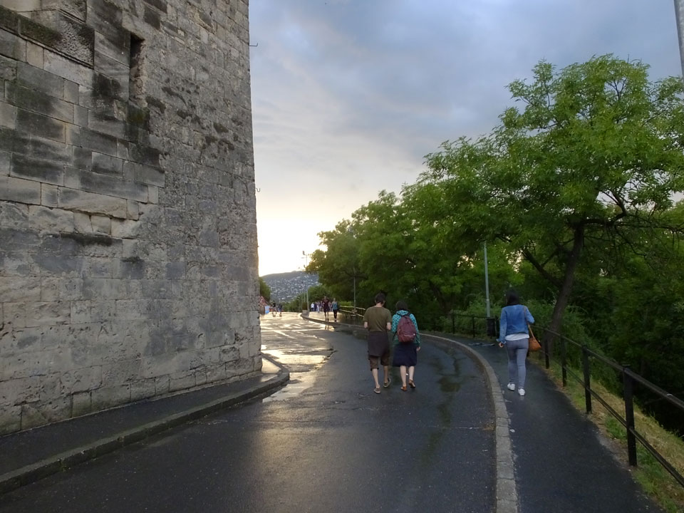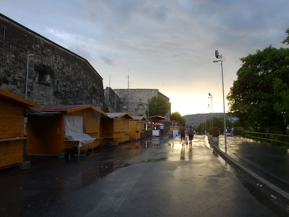 Um 19:00 waren wir oben auf der Zitadelle. Eine schöne Aussicht. Ich versuchte jemandem eine Pose im Hüpfen zu zeigen und da passierte mir ein Riesen-Missgeschick: das Handy flog aus meiner Tasche und das Front-Display zersprang. Kaputt! Mein schönes Yotaphone! Ich ärgerte mich riesig über diese Dummheit. Dann fing auch noch ein heftiger Regen an – ohen Unterschlupfmöglichkeit weit und breit. In den 10 Minuten mal echt viel Pech.