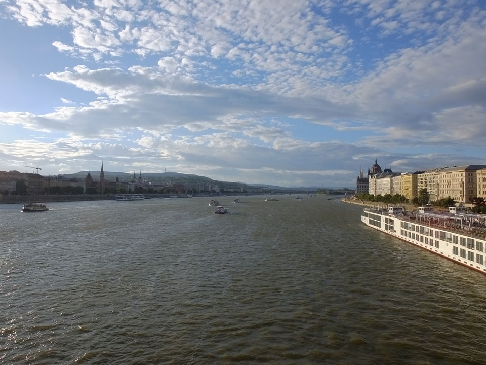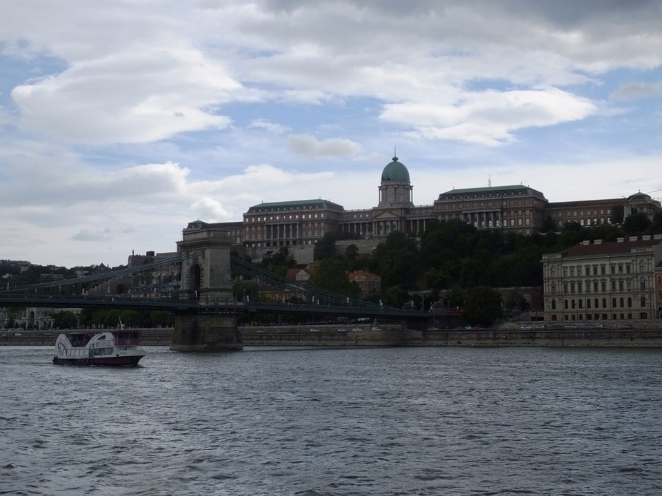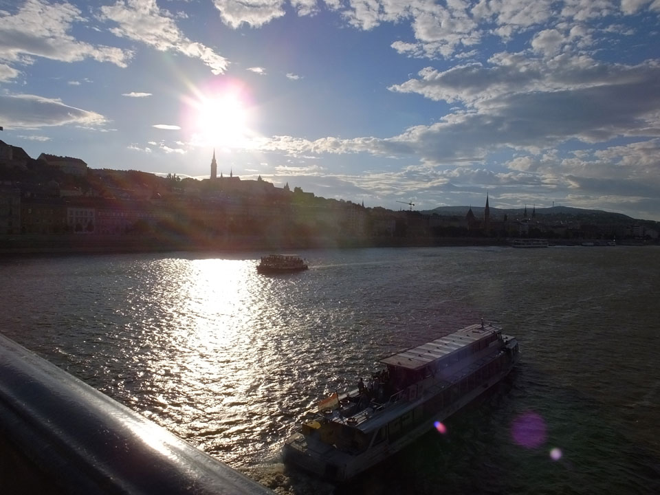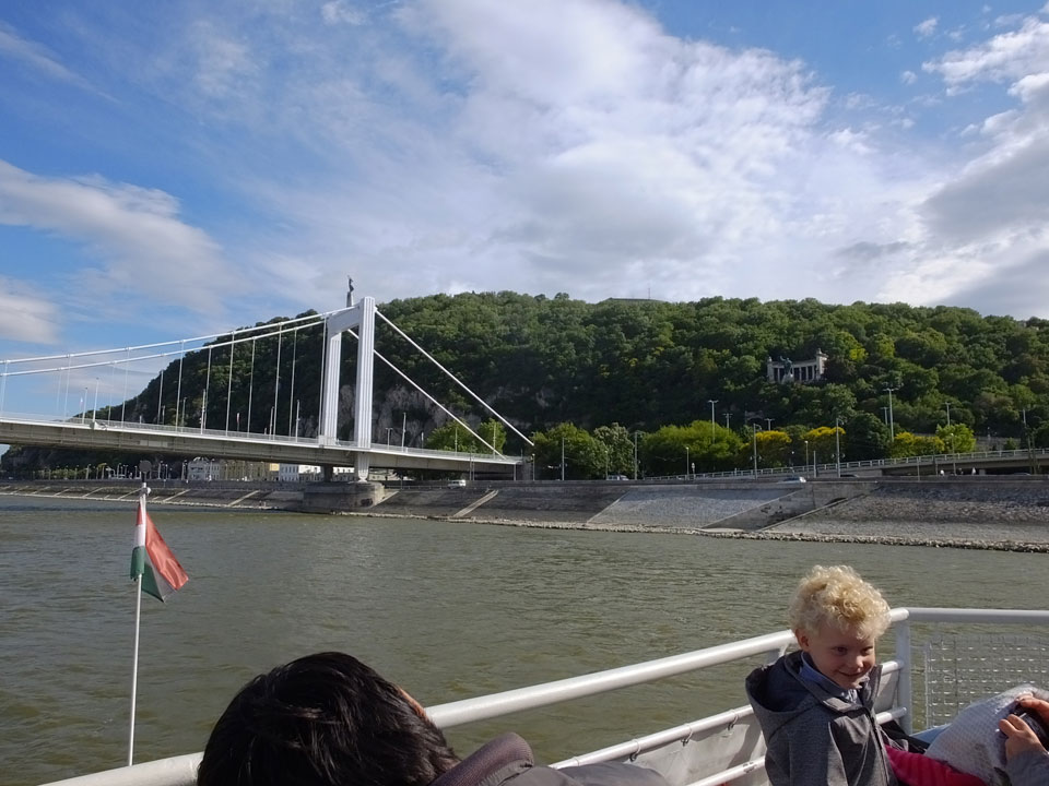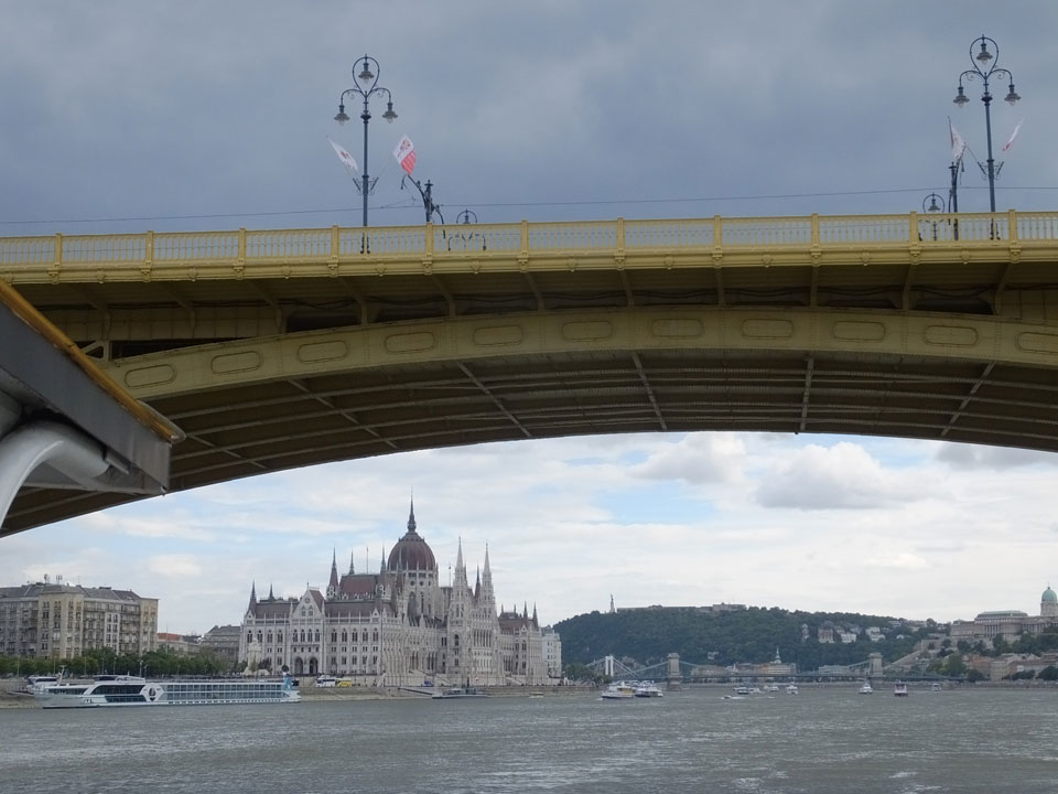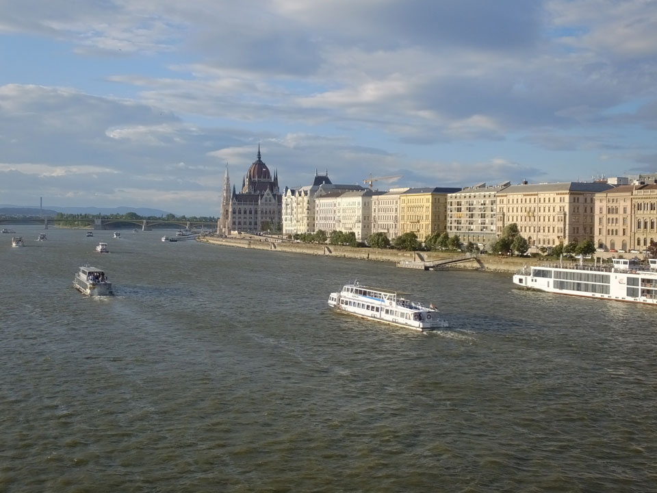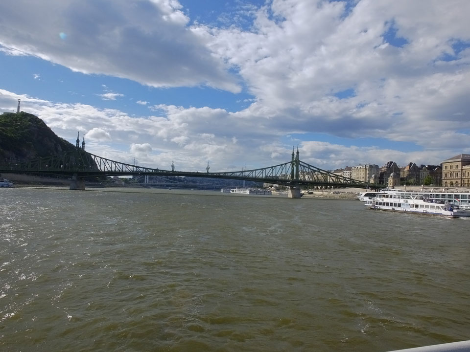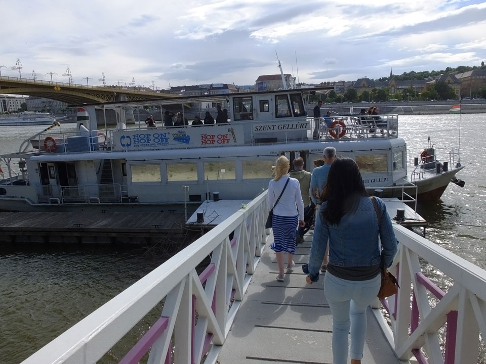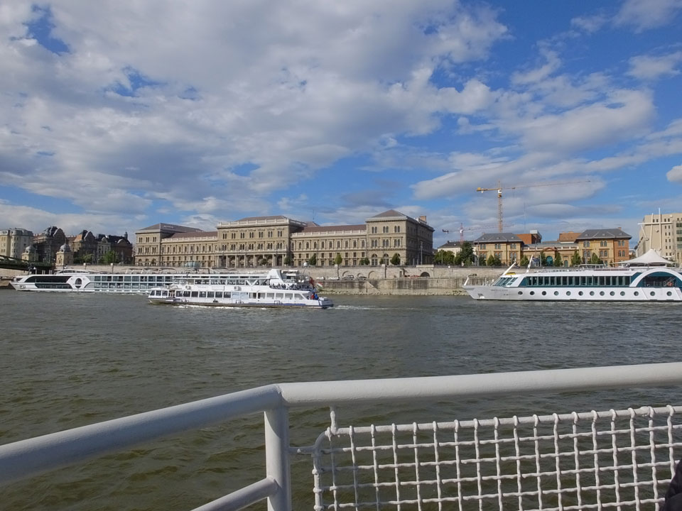 Um 15:00 machte der Markt gerade zu, was schlecht und gut war, denn so kamen wir bis 15:30 zur Boots-Abfahrt. Ein windiger Tag heute. Gerade mal 5′ warteten wir, dann ging es auf eine kleine Runde auf der Donau zur Margareteninsel.