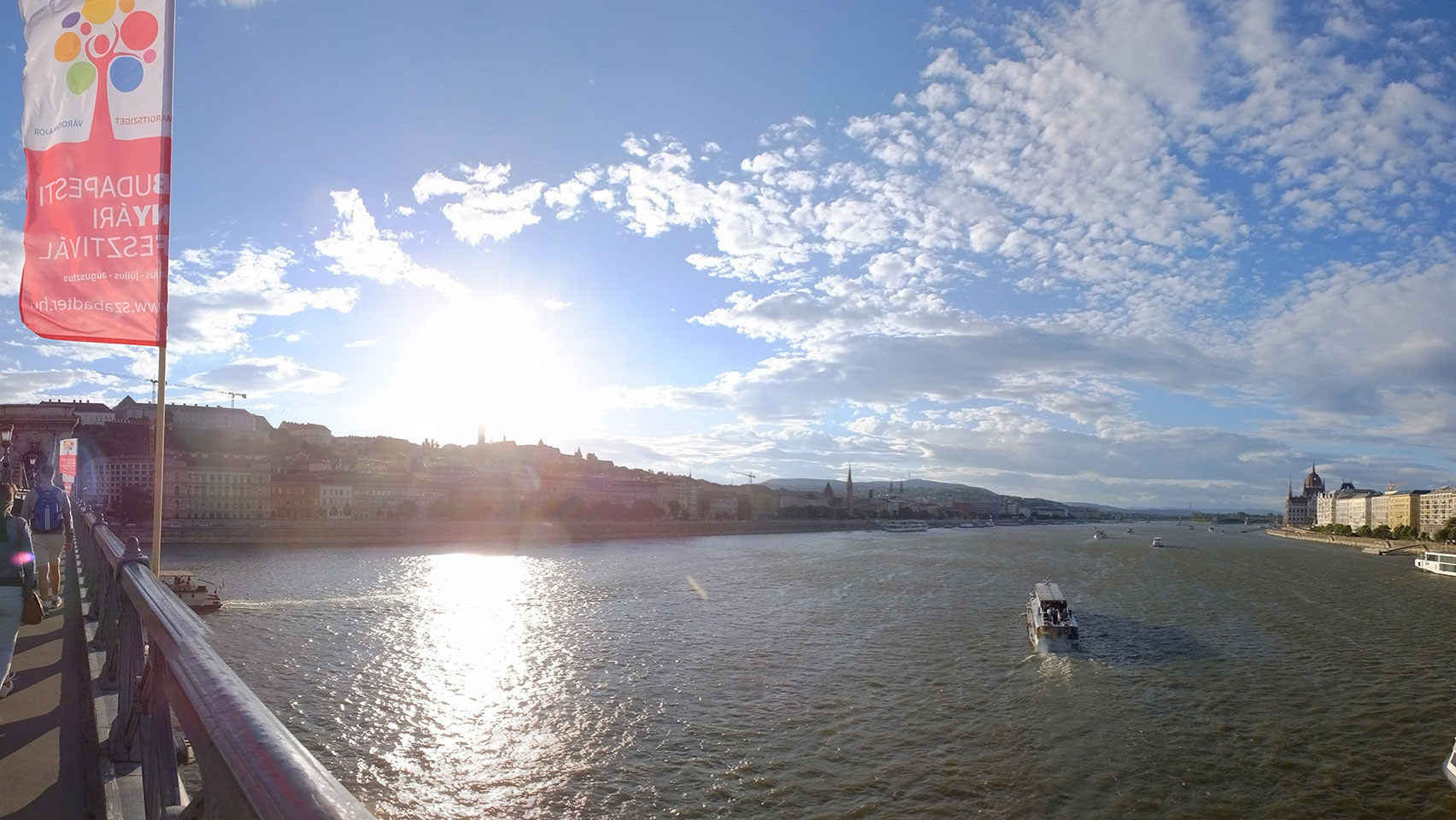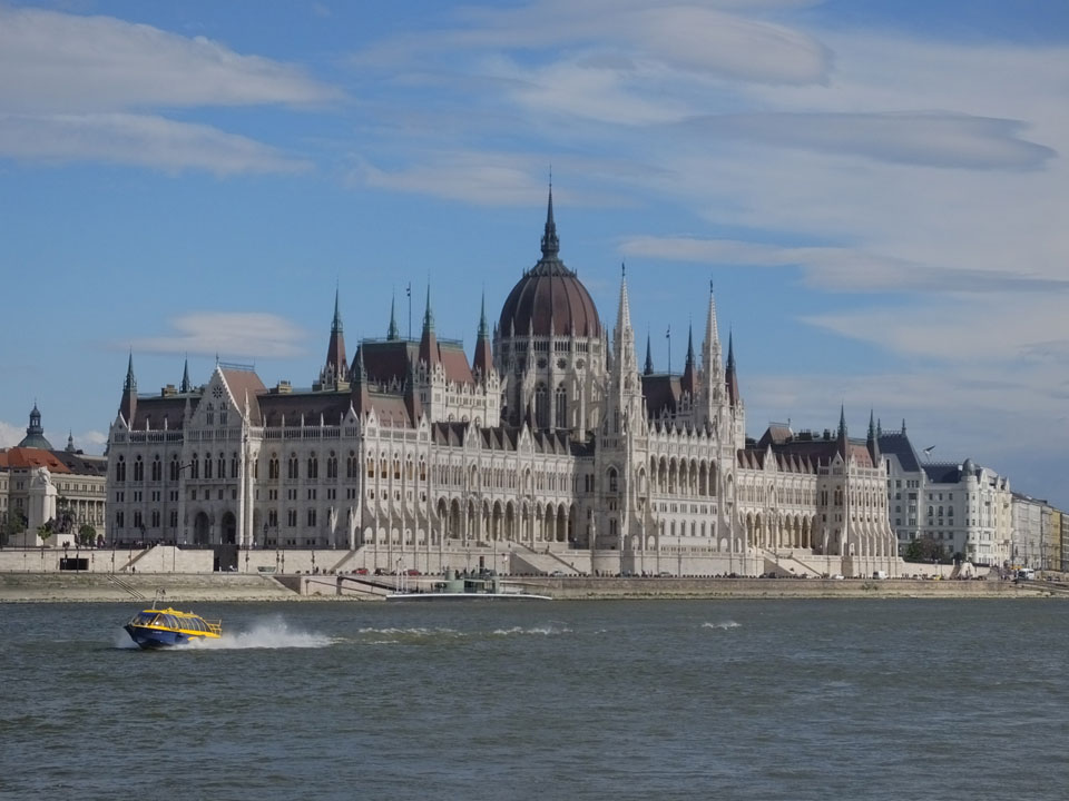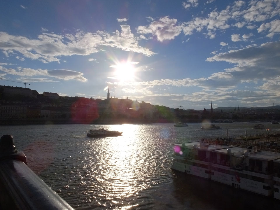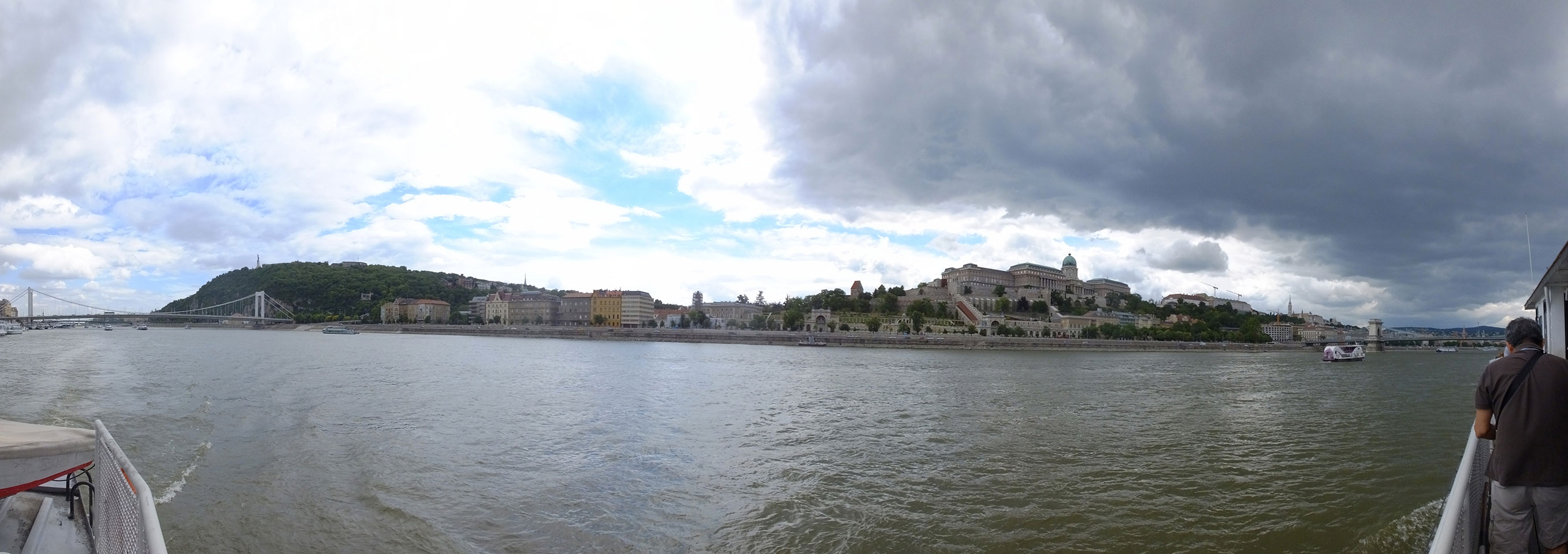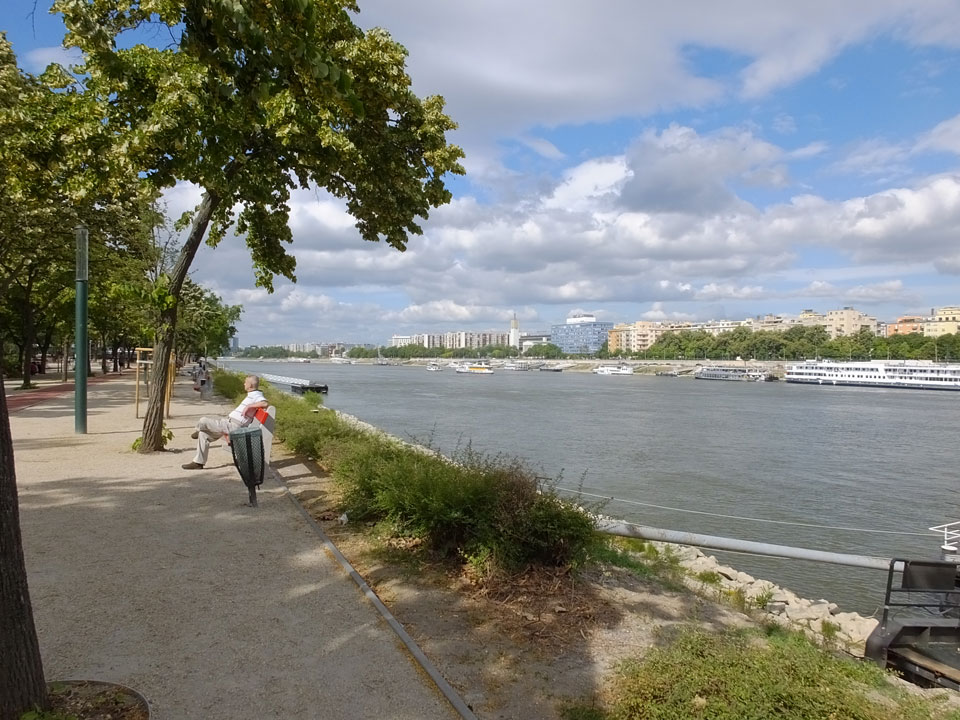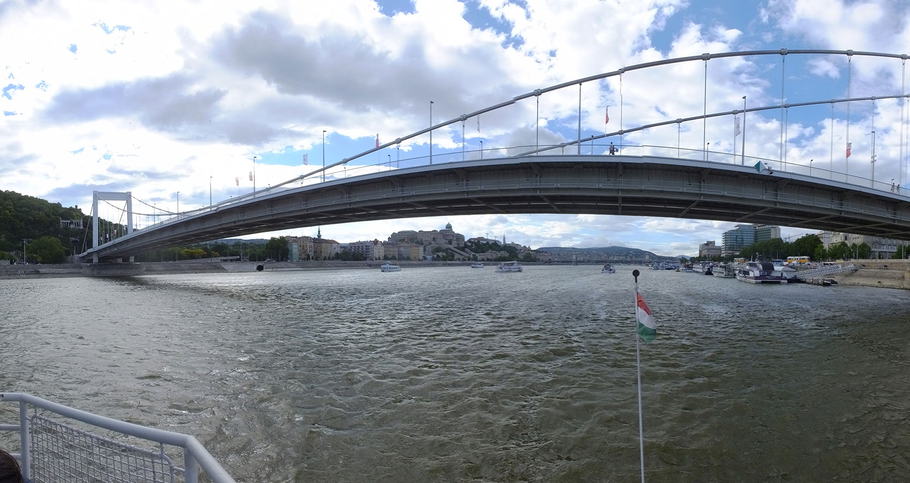 Um 15:00 machte der Markt gerade zu, was schlecht und gut war, denn so kamen wir bis 15:30 zur Boots-Abfahrt. Ein windiger Tag heute. Gerade mal 5′ warteten wir, dann ging es auf eine kleine Runde auf der Donau zur Margareteninsel.