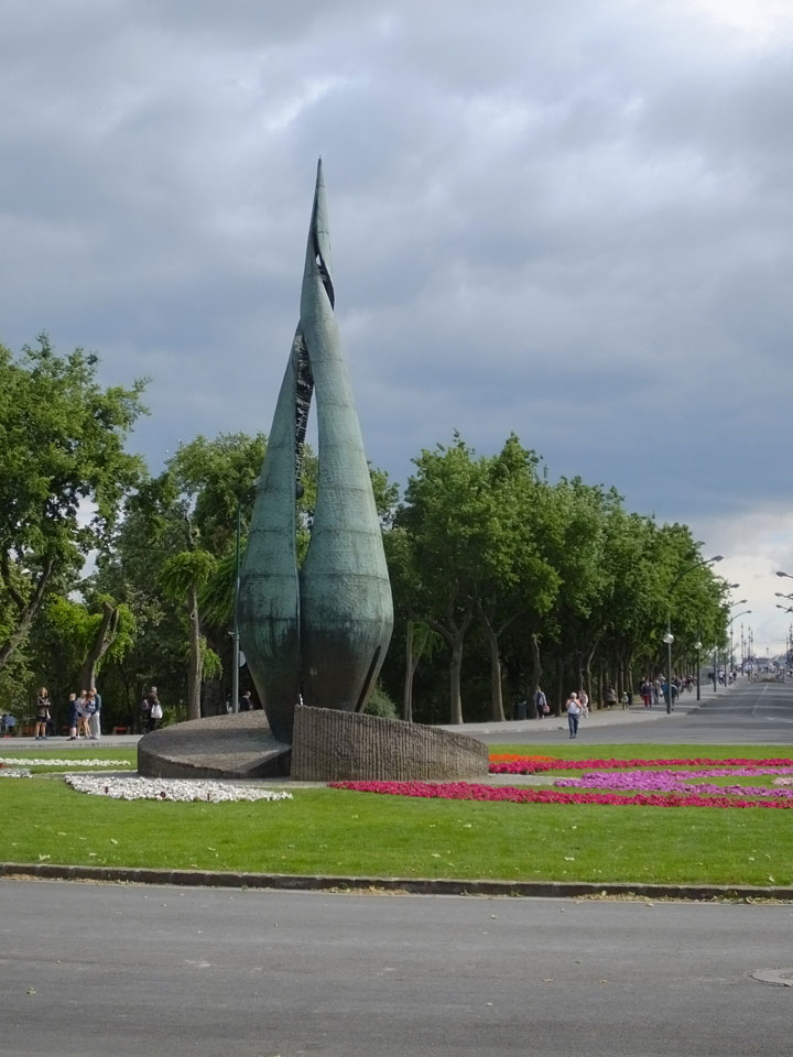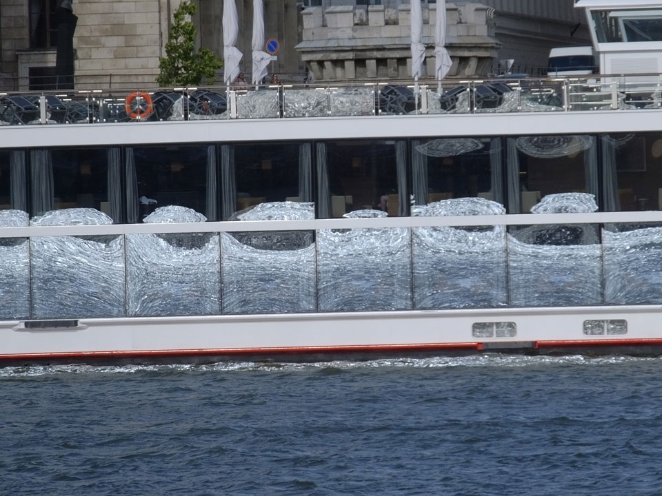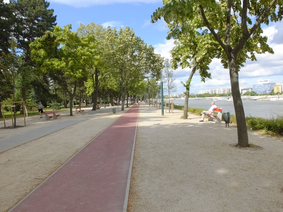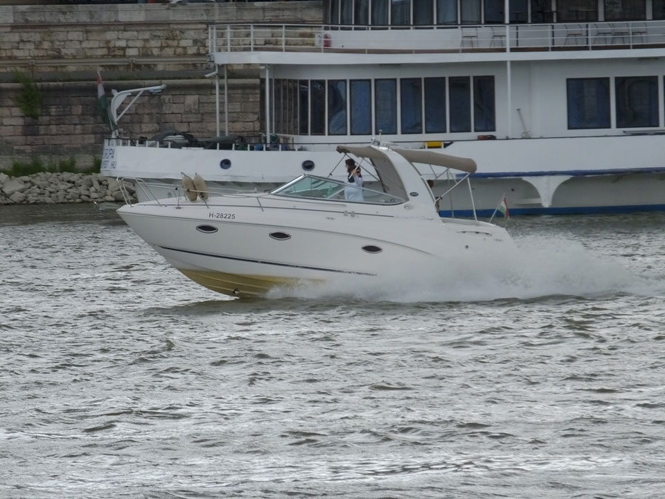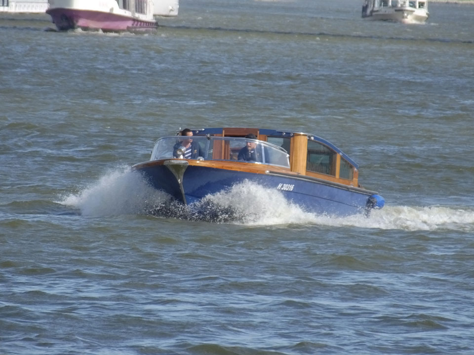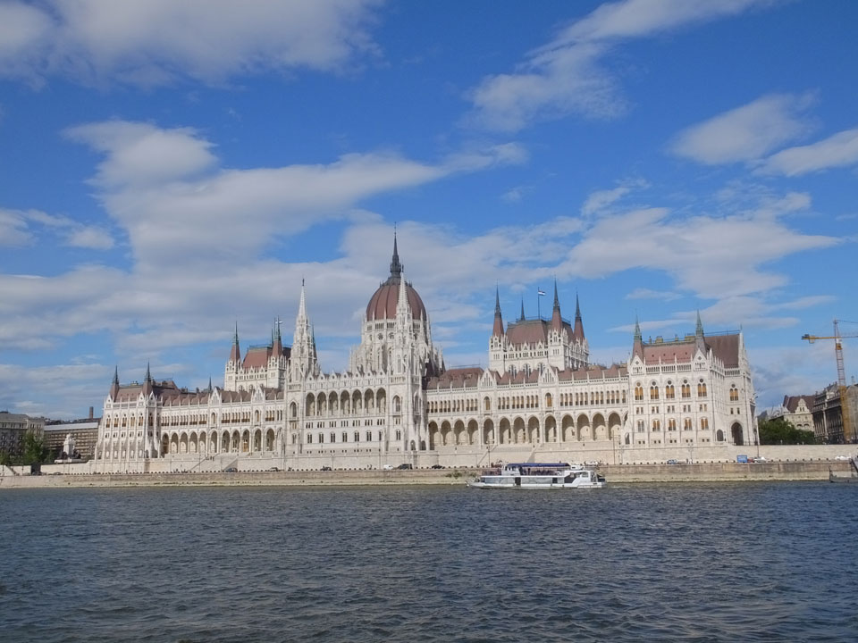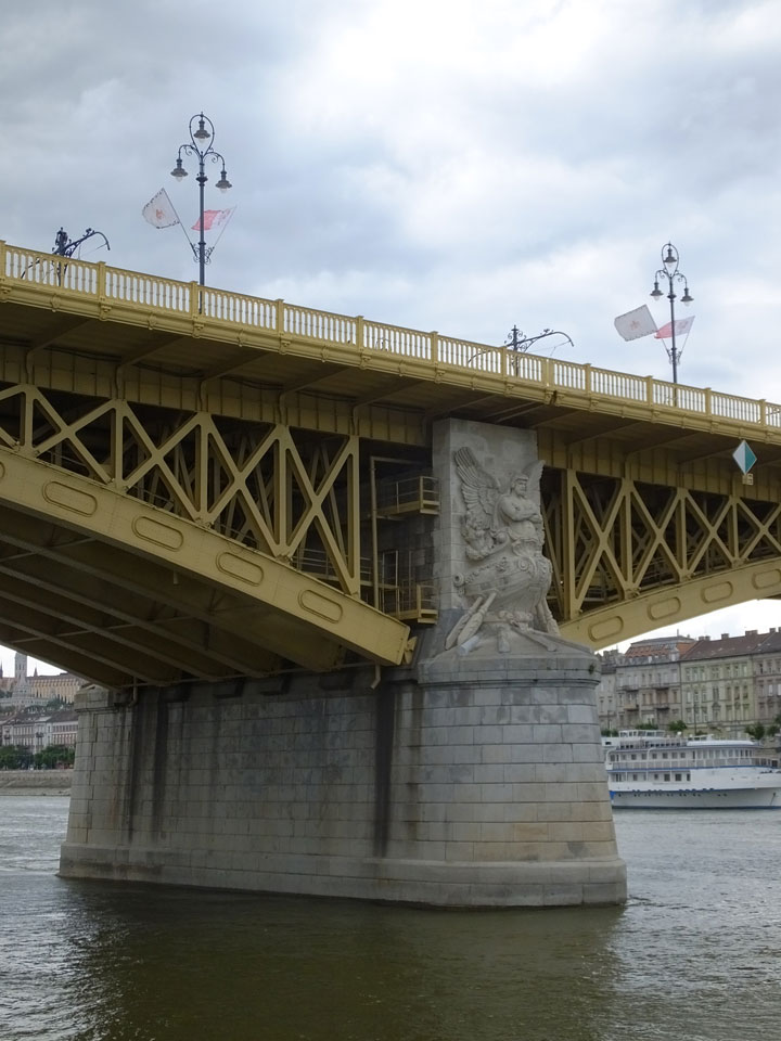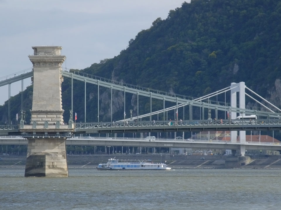 Um 15:00 machte der Markt gerade zu, was schlecht und gut war, denn so kamen wir bis 15:30 zur Boots-Abfahrt. Ein windiger Tag heute. Gerade mal 5′ warteten wir, dann ging es auf eine kleine Runde auf der Donau zur Margareteninsel.