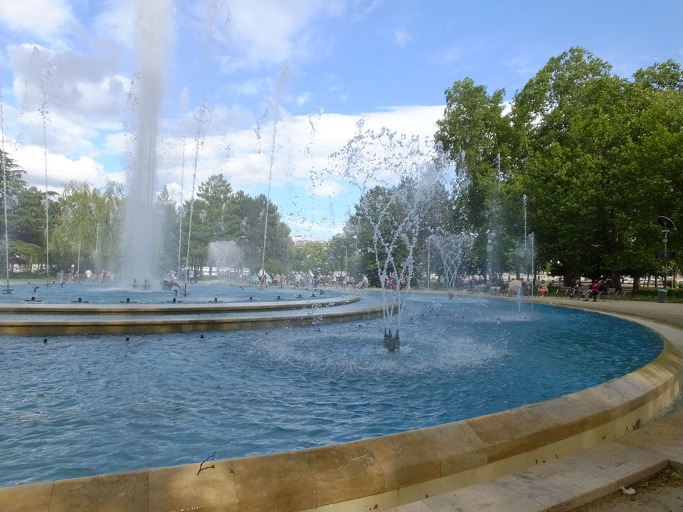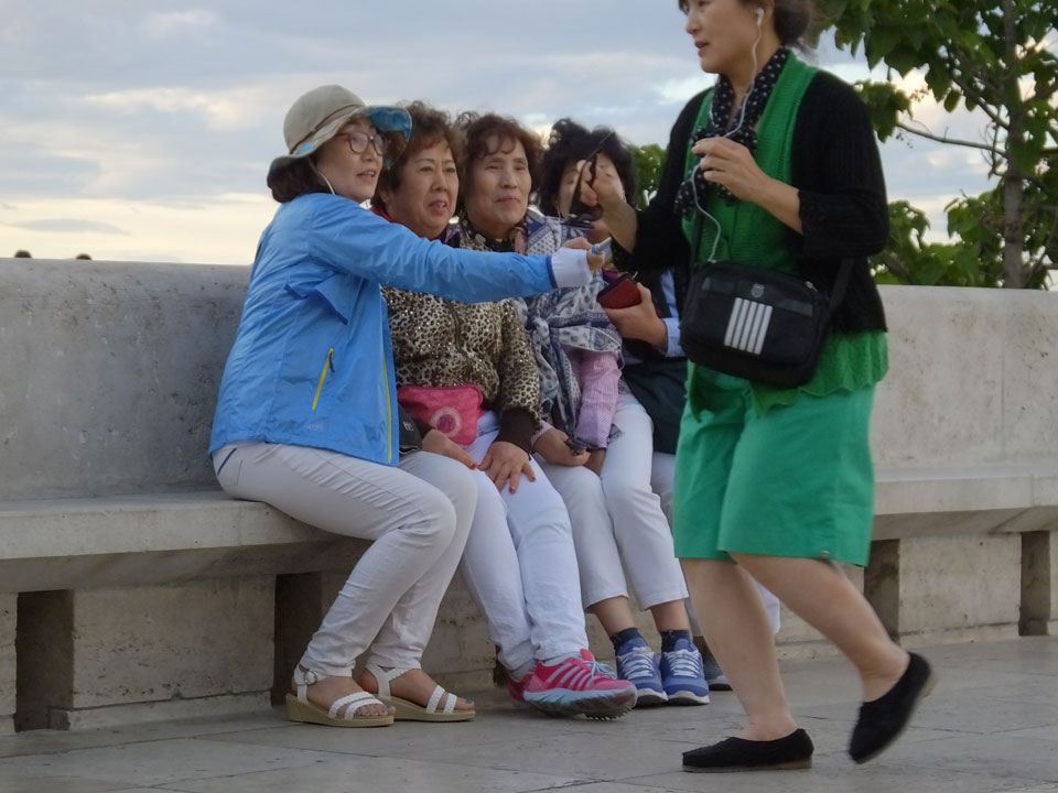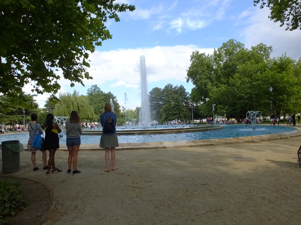 Eine Stunde hatten wir auf der Insel. Der Springbrunnen lief mit Musik. Hinter den Bäumen war es angenehmer ohne die Windböen. Pünktlich kamen wir zurück zum Boot kurz vor 17:00, dem letzten mit Rückfahrt.