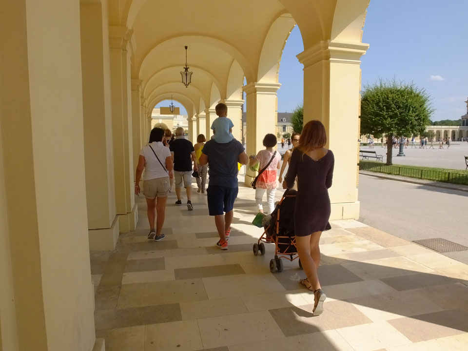 Nach einer Geldmaschine und Wasserkauf ging’s per Uber zum Schloss Schönbrunn. Am heutigen Tag war das Wetter zu gut – über 30 °C. Im Schloss dann nahmen wir doch die Führung (€14,70). Ganz schön teuer. Über einen Audioguide wurde einem alles über die ganzen Zimmer des Österreichischen Kaisers oder Sisi erklärt. Ich war vorher noch nie in Schönbrunn, somit alles halbwegs interessant. Ich bekam emails, dass die redirects die Site kaputt gemacht hatten. So setzte ich per Handy die DNS erst mal auf den hostcentric zurück.