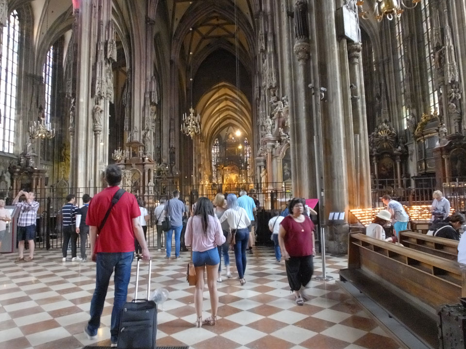 Mit der Metro fuhren wir zum Karlsplatz und drehten von dort aus an der Oper eine große Runde durch die Hofburg, Museumsquartier usw.. Wieder zurück in der Innenstadt zur Paulskirche, St. Stephansdom. Ich war in den ganzen Kirchen vorher auch noch nicht drin. Wien bot mir hier etwas Neues. Jemand will unbedingt ein Konzert erleben, doch die Preise sind mir einfach zu hoch. Die vielen Konzerte und auch Standrundfahrten werden ganz schön gepusht.