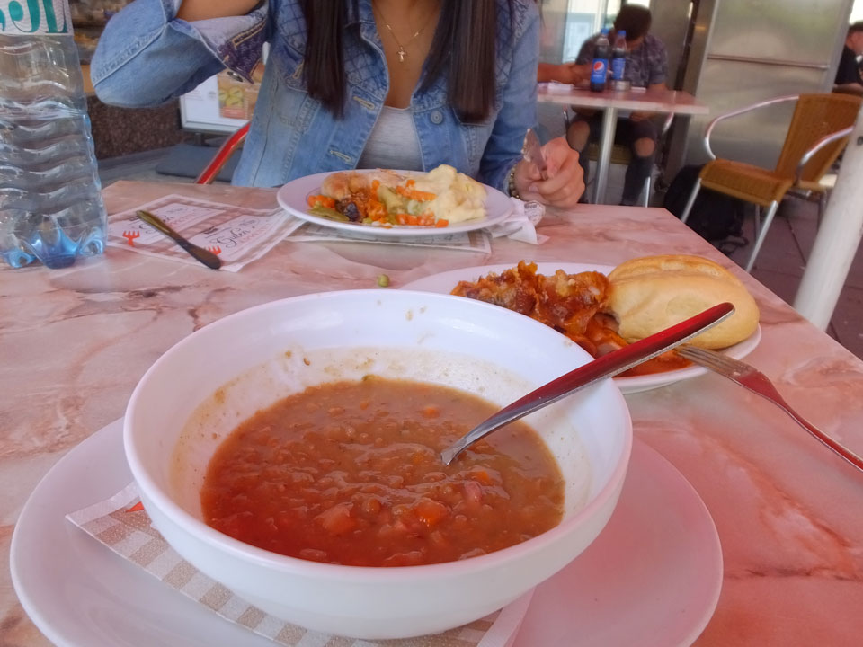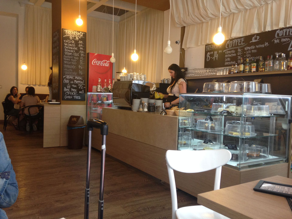 Ein schnelles und auch teures Frühstück gab’s ein paar Meter weiter auf dem Weg zum Bahnhof. Genügend Zeit bis zum Bus, doch dann 10’ vor Abfahrt stand er schon da. Der Fahrer wartete auf uns als einzigen Zustieg.
