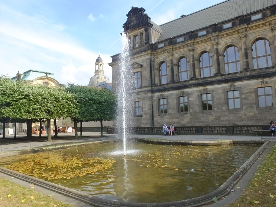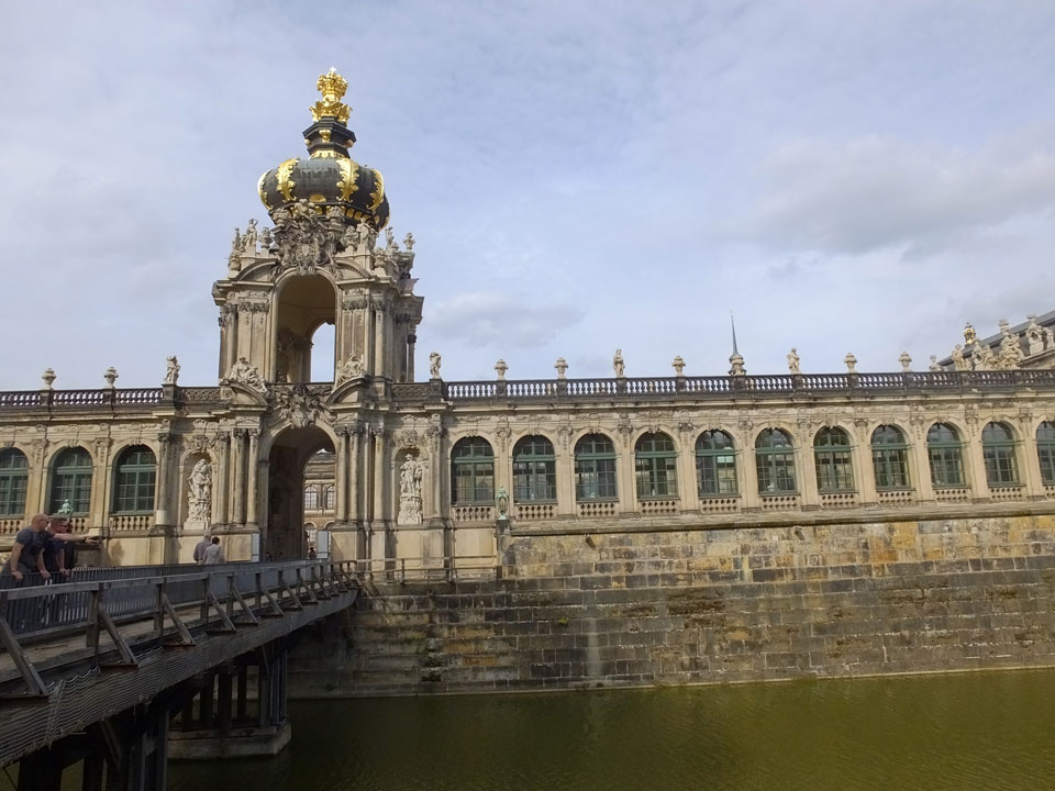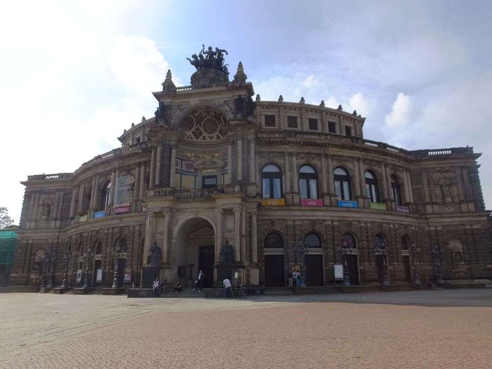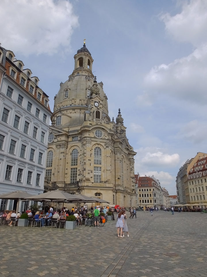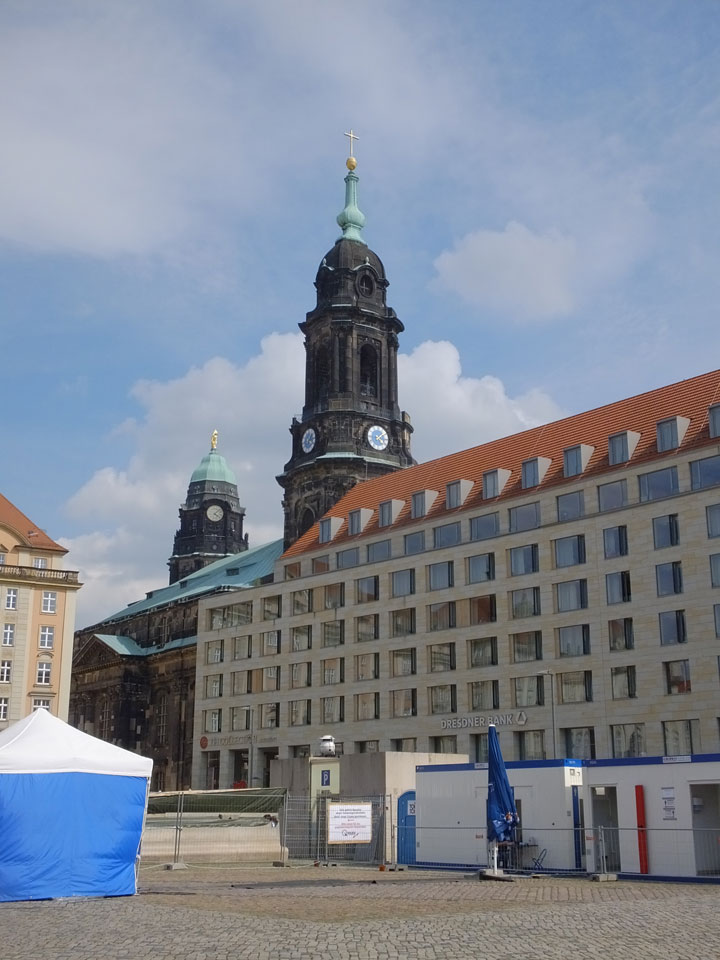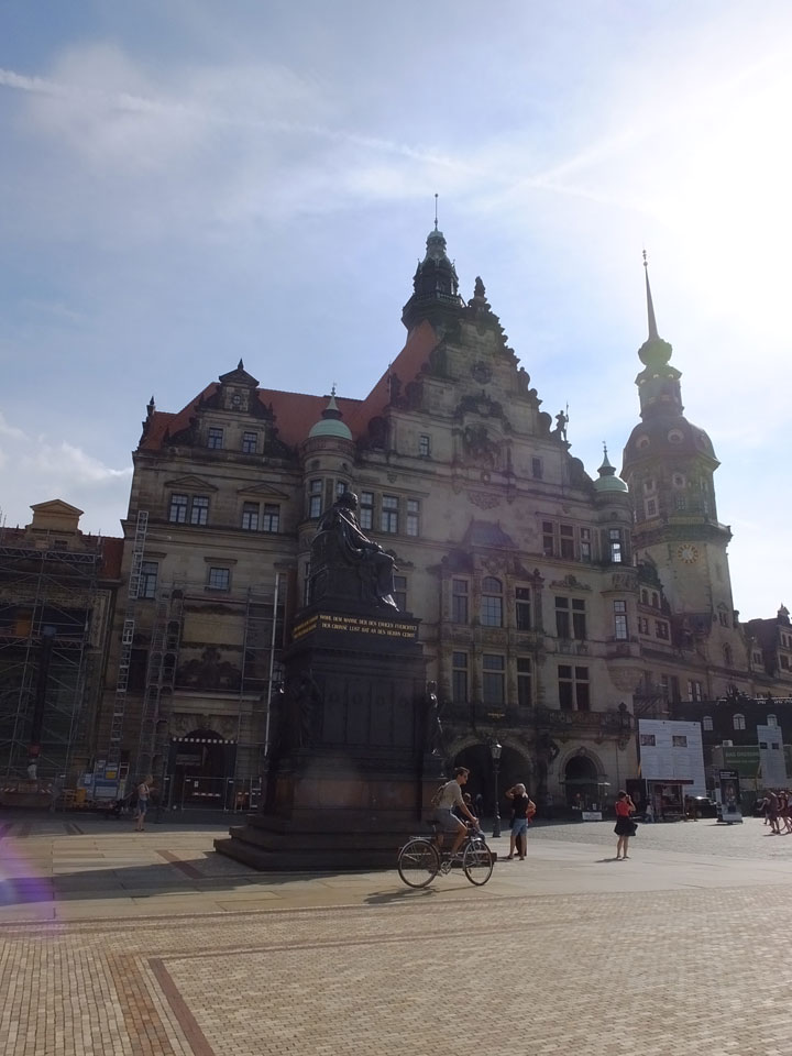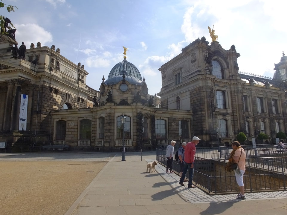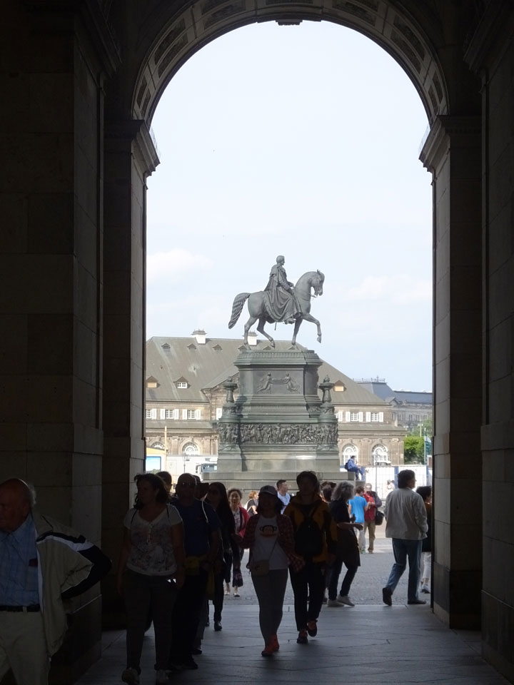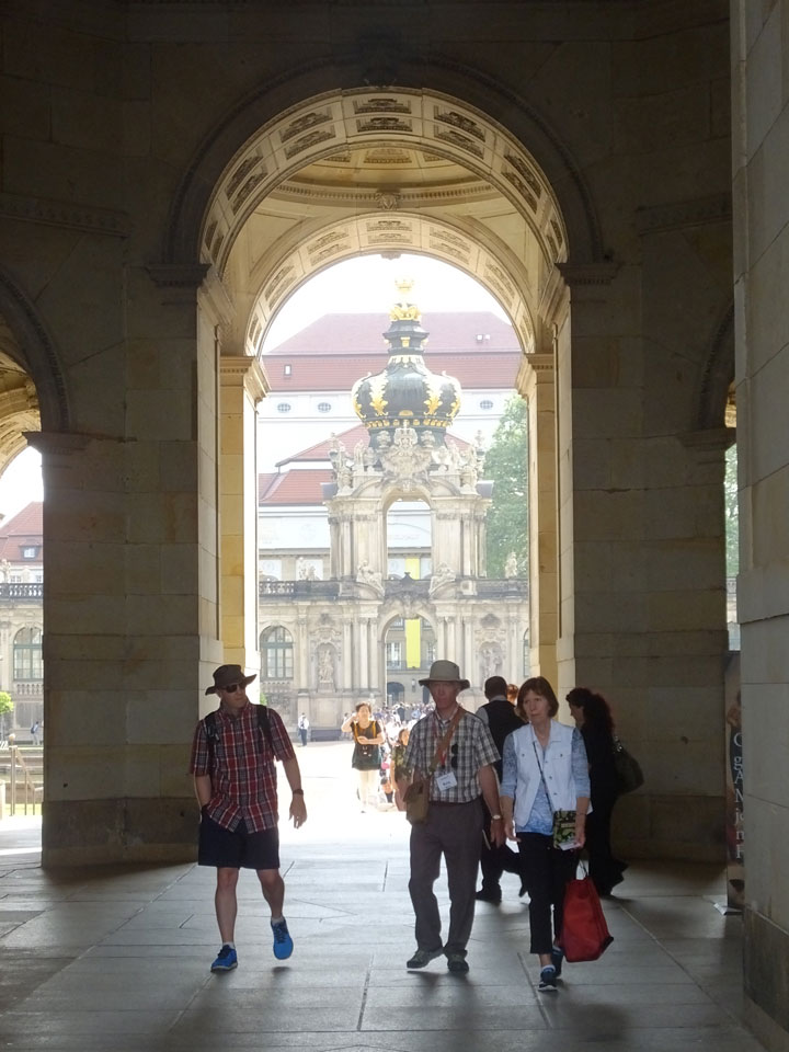 Wir verstauten das Gepäck am Bahnhof (€4) und gingen dann in die Altstadt. Jemandem gefiel Deutschland sehr gut. Mir gefiel weniger, dass jedes größere Schuhgeschäft gecheckt werden musste. Wir kamen zum Altmarkt. Da wurden Weihnachtslieder gesungen. Ich erfuhr, dass morgen der Johannistag sei – ein halbes Jahr vor Heiligabend. Es ging weiter über die geschlossene Frauenkirche an’s Elbufer mit den vielen alten Häuser und Museen. Die Semperoper und besonders der Zwinger gefielen besonders. Ein paar Kinder spielten klassische Musik.