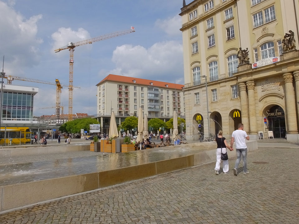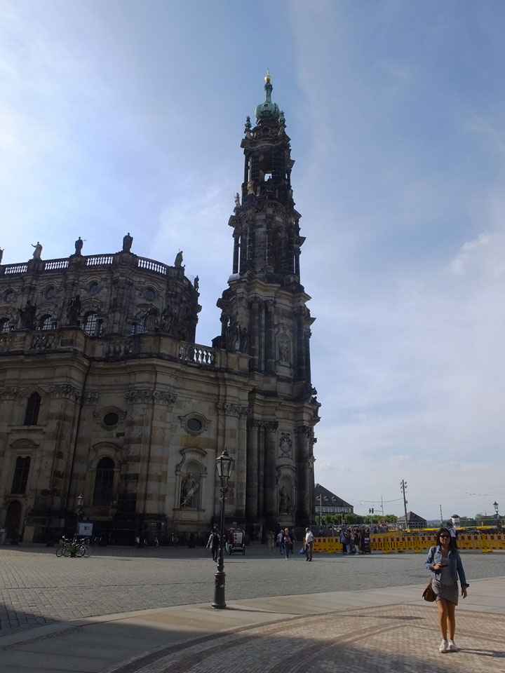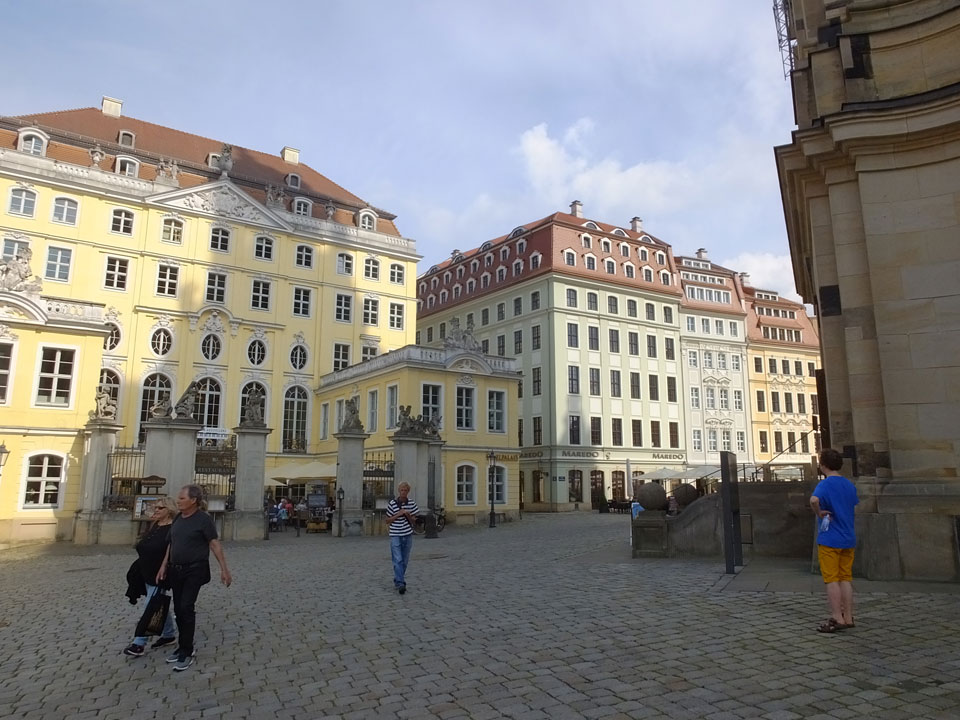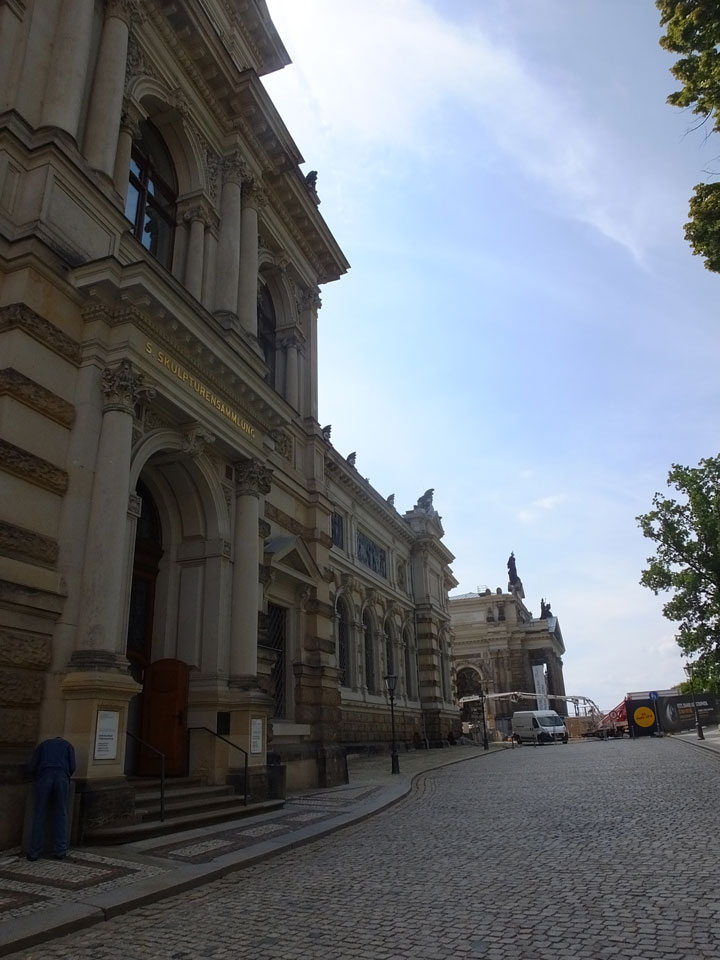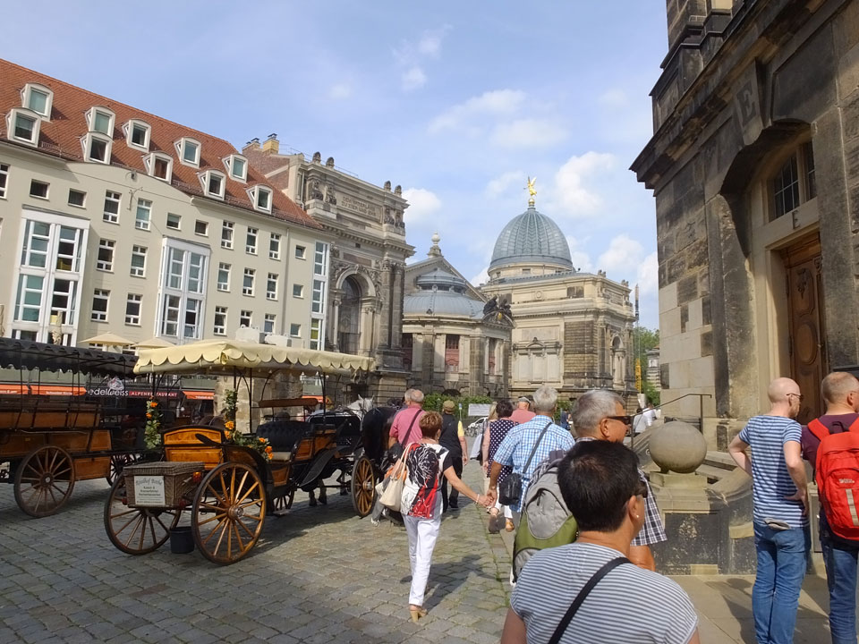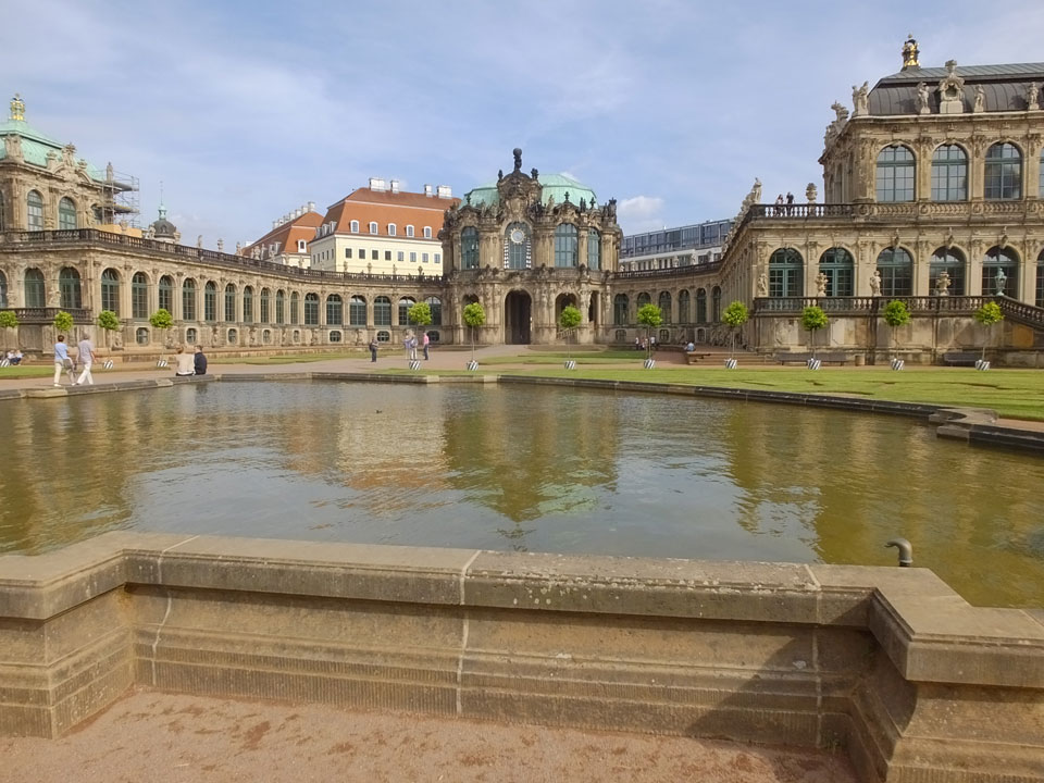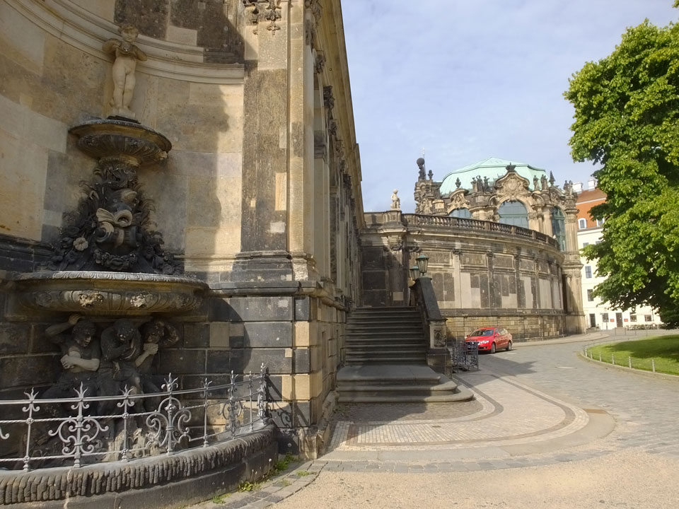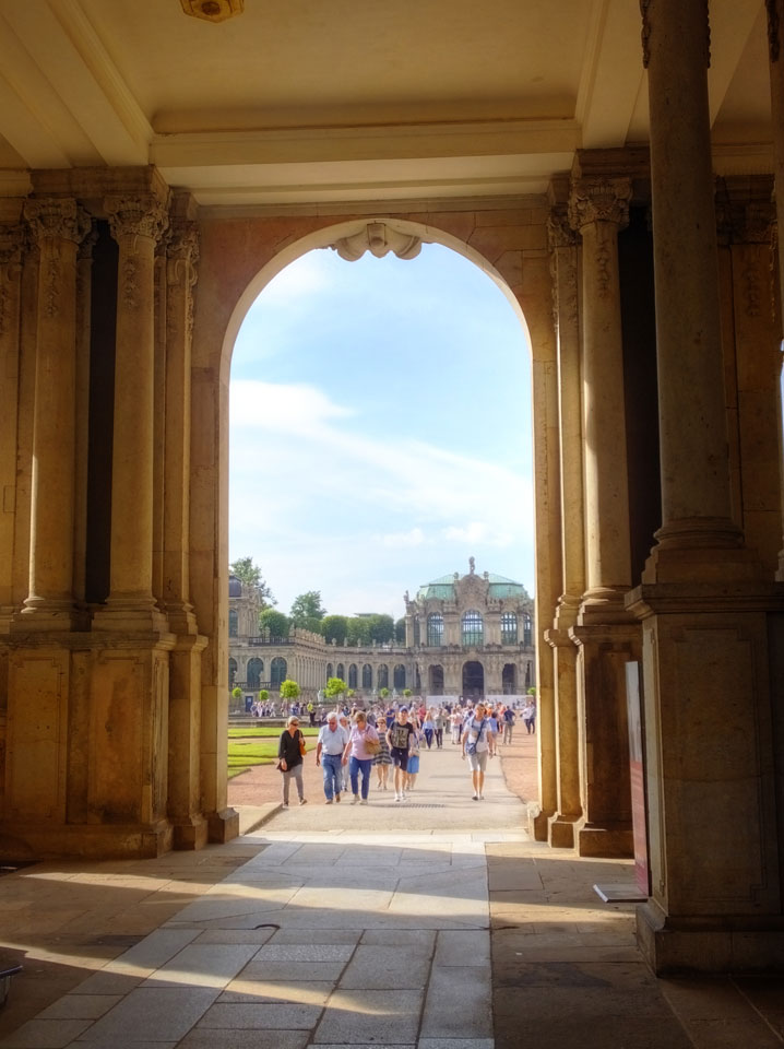 Wir verstauten das Gepäck am Bahnhof (€4) und gingen dann in die Altstadt. Jemandem gefiel Deutschland sehr gut. Mir gefiel weniger, dass jedes größere Schuhgeschäft gecheckt werden musste. Wir kamen zum Altmarkt. Da wurden Weihnachtslieder gesungen. Ich erfuhr, dass morgen der Johannistag sei – ein halbes Jahr vor Heiligabend. Es ging weiter über die geschlossene Frauenkirche an’s Elbufer mit den vielen alten Häuser und Museen. Die Semperoper und besonders der Zwinger gefielen besonders. Ein paar Kinder spielten klassische Musik.