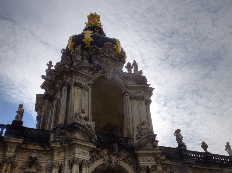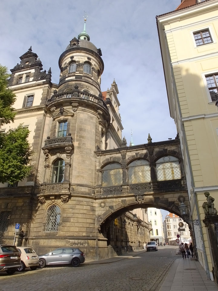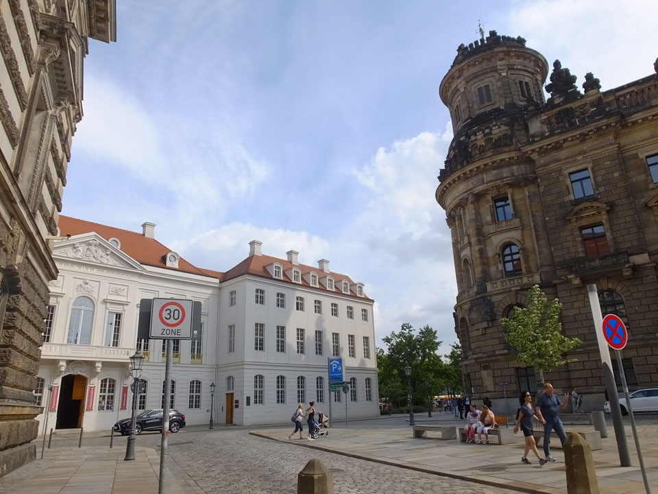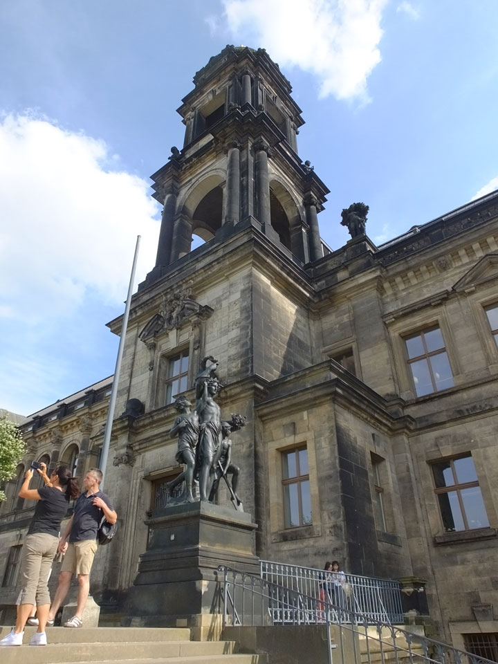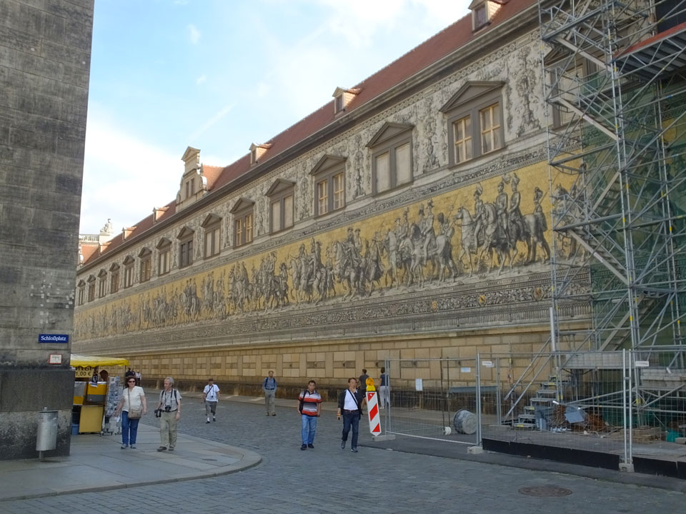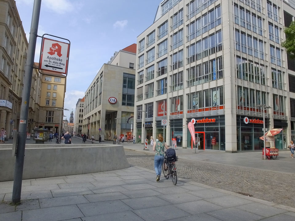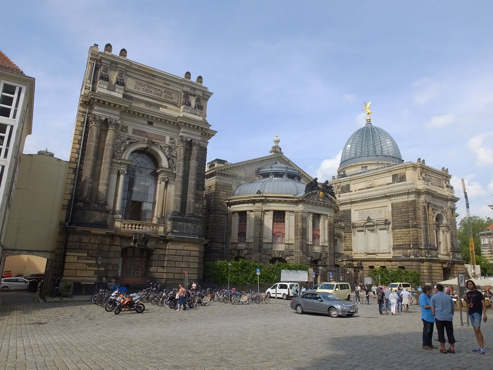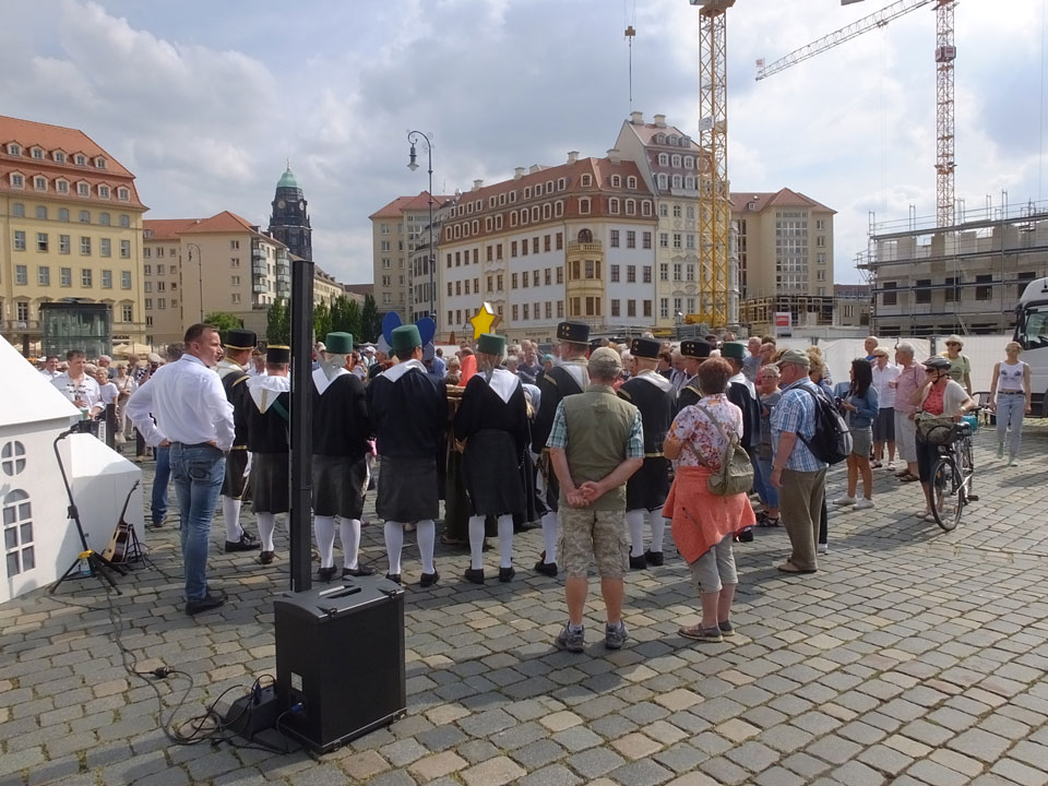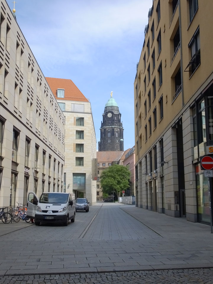 Wir verstauten das Gepäck am Bahnhof (€4) und gingen dann in die Altstadt. Jemandem gefiel Deutschland sehr gut. Mir gefiel weniger, dass jedes größere Schuhgeschäft gecheckt werden musste. Wir kamen zum Altmarkt. Da wurden Weihnachtslieder gesungen. Ich erfuhr, dass morgen der Johannistag sei – ein halbes Jahr vor Heiligabend. Es ging weiter über die geschlossene Frauenkirche an’s Elbufer mit den vielen alten Häuser und Museen. Die Semperoper und besonders der Zwinger gefielen besonders. Ein paar Kinder spielten klassische Musik.
