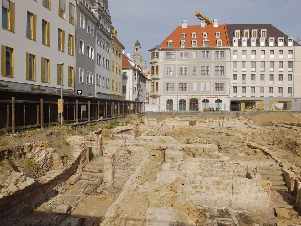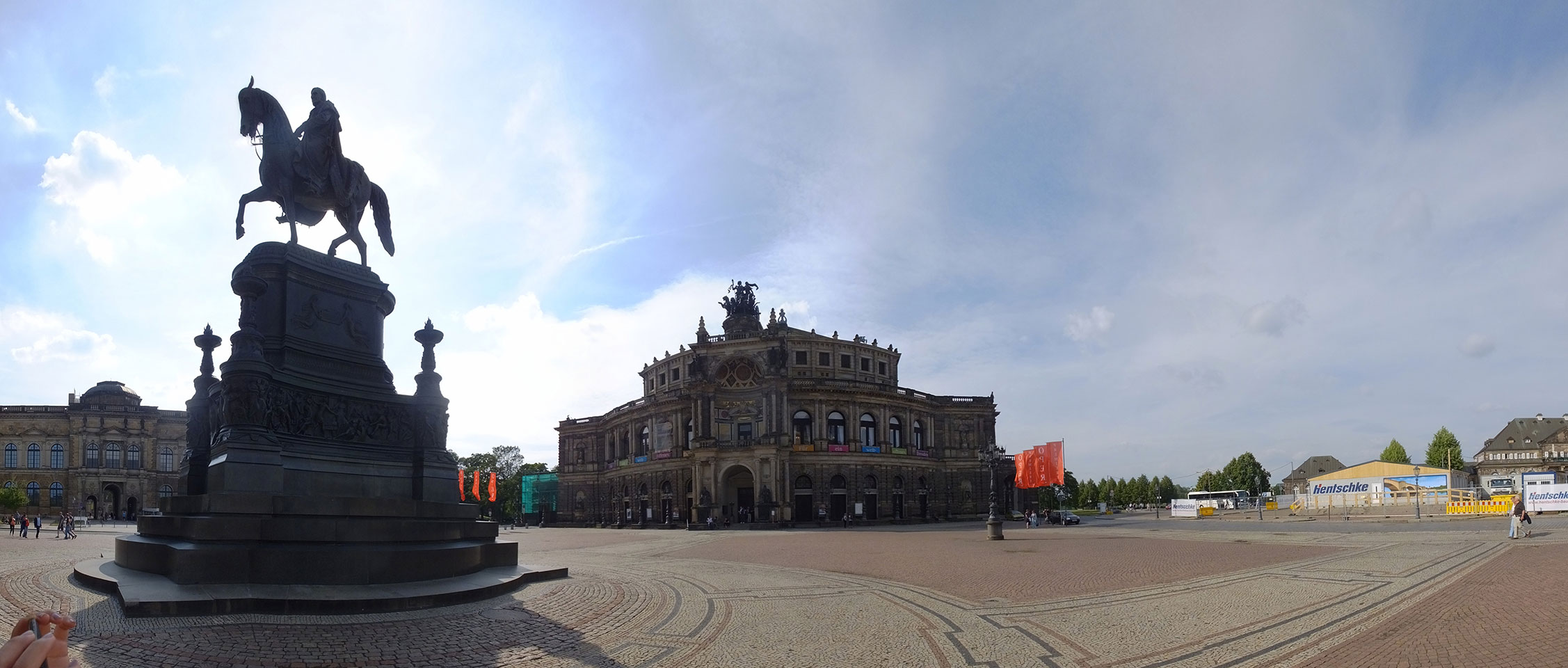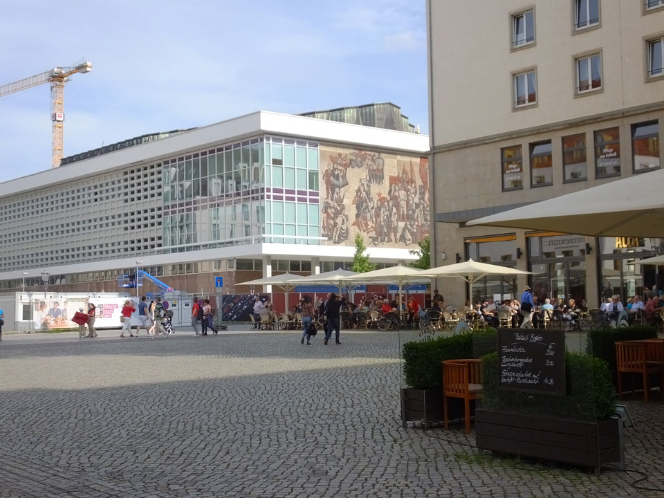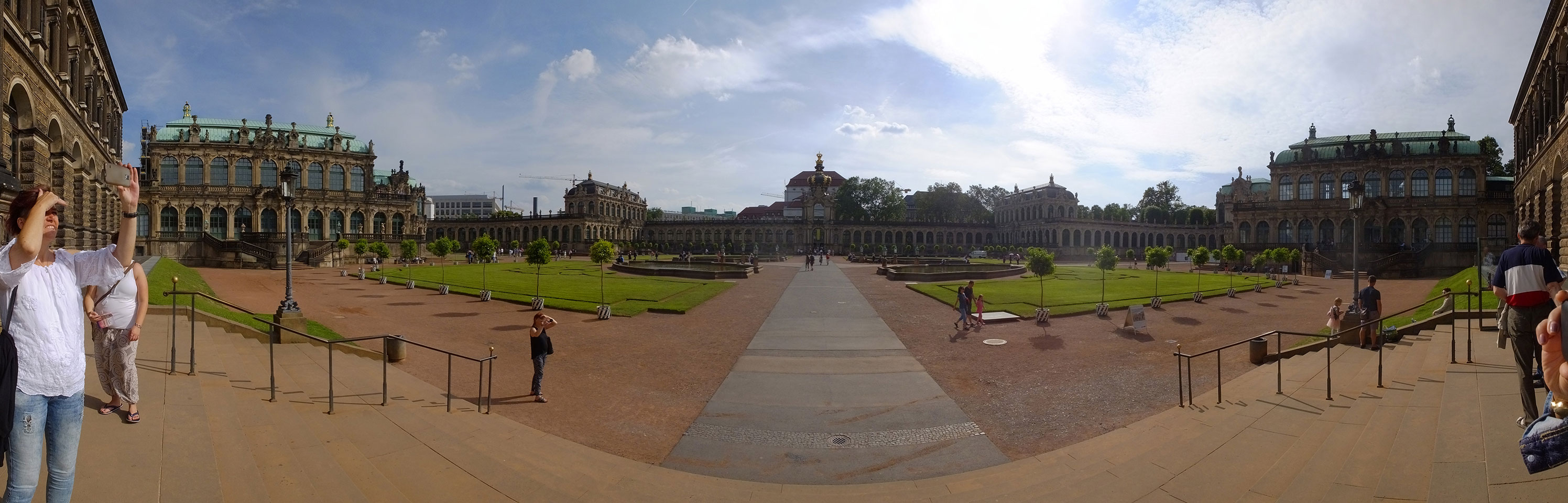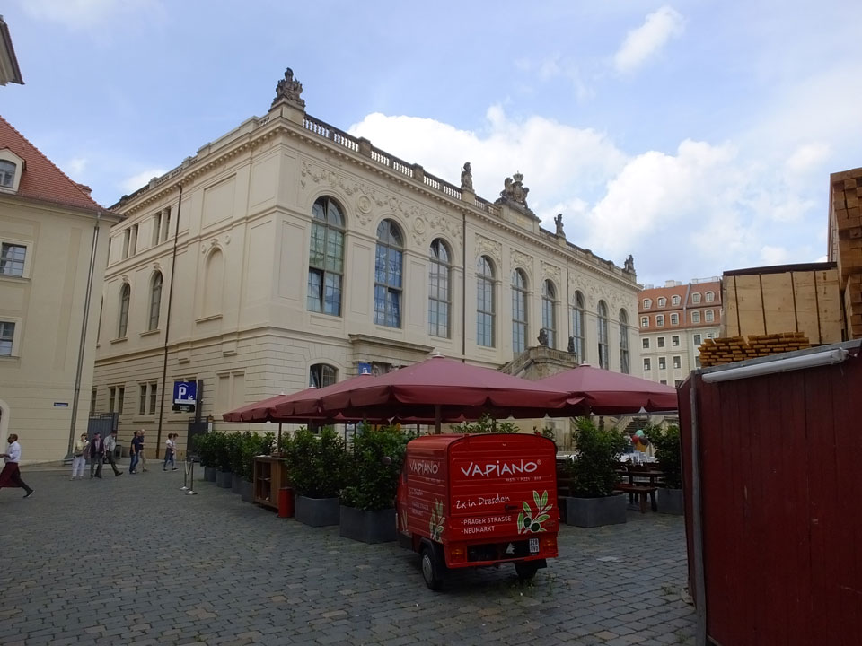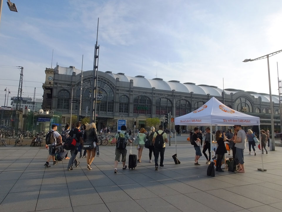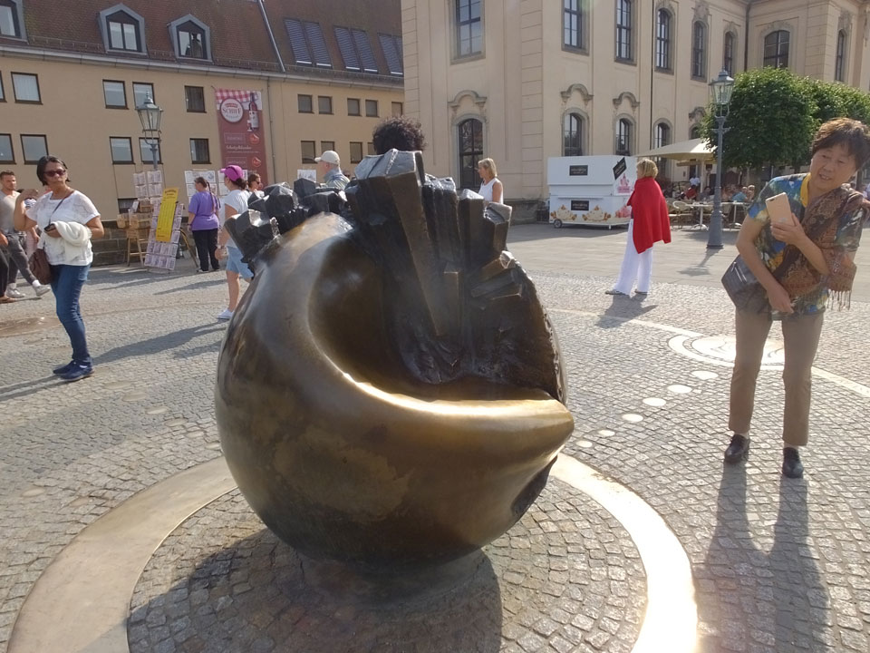 Wir verstauten das Gepäck am Bahnhof (€4) und gingen dann in die Altstadt. Jemandem gefiel Deutschland sehr gut. Mir gefiel weniger, dass jedes größere Schuhgeschäft gecheckt werden musste. Wir kamen zum Altmarkt. Da wurden Weihnachtslieder gesungen. Ich erfuhr, dass morgen der Johannistag sei – ein halbes Jahr vor Heiligabend. Es ging weiter über die geschlossene Frauenkirche an’s Elbufer mit den vielen alten Häuser und Museen. Die Semperoper und besonders der Zwinger gefielen besonders. Ein paar Kinder spielten klassische Musik.