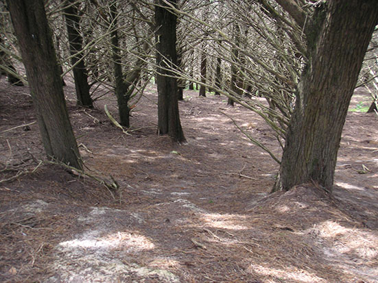 Ja, schön dort oben und ich sah sogar meine Unterkunft dank der auffälligen Zebra-Streifen (siehe Photo). Man sieht und hört dort die Flugzeuge aufsteigen. Der Wind pfiff auch lustig. Nachdem ich mich satt gesehen hatte machte ich kehrt und schwenkte auf den Wanderweg. Dieser Track war interessanter als an der Straße entlang.