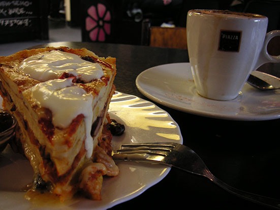 Um 18:00 wurde dort geschlossen und so holte ich mir in einem coolen Café einen Espresso Vienna samt „Mexican Bean Stack“. Dank Microwellen schmeckte das Kuchen/Lasageding auch lecker und ich spazierte bei etwas Nieselregen zurück zum Hostel.