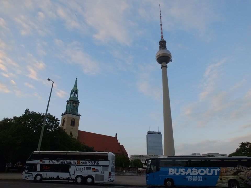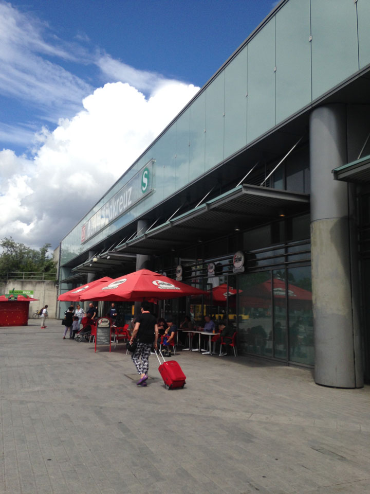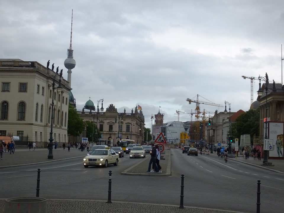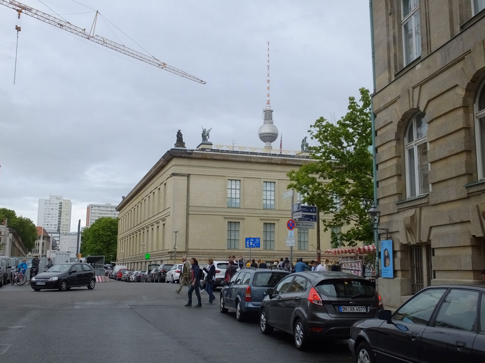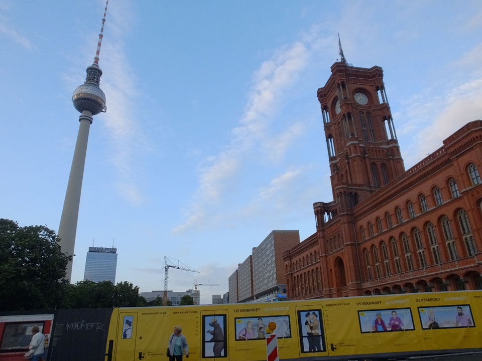 Schnell waren wir am Busbahnhof und saßen im vollen Bus nach Berlin. In Ostbahnhof ging’s in die S-Bahn für die Fahrt zur Oranienburger Straße. Es fing schon leicht mit regnen an. Halb trocken kamen wir in’s Baxpax Hostel, wo ich ein Privatzimmer reserviert hatte. Das zahlte heute jemand – um die €60. Das Retsaurant im Backpax hatte geschlossen, sodass wir ein paar Mitbringsel auf dem Zimmer als Mittag verspeisten.