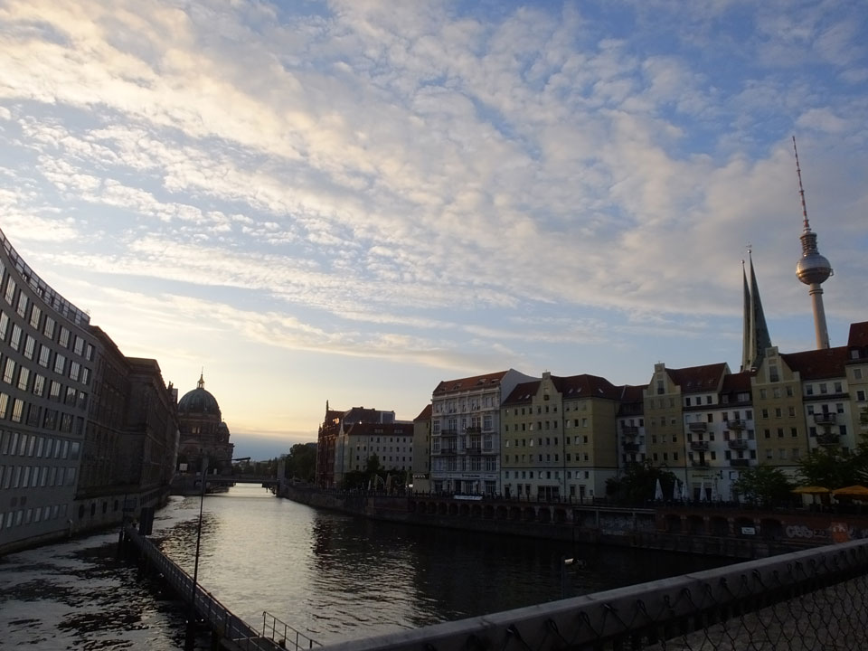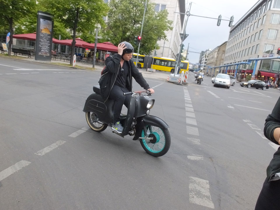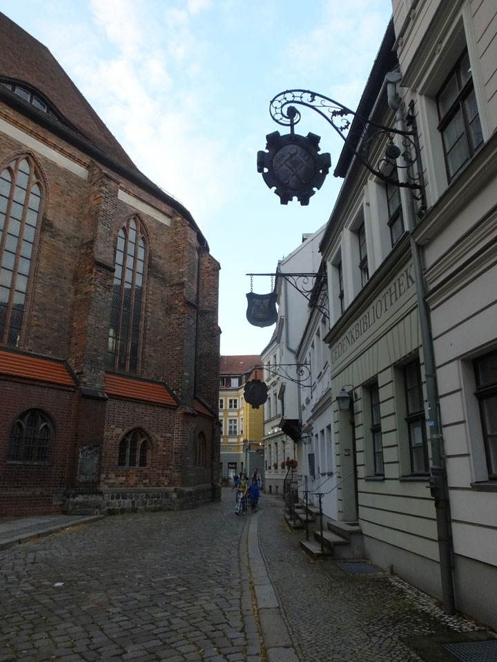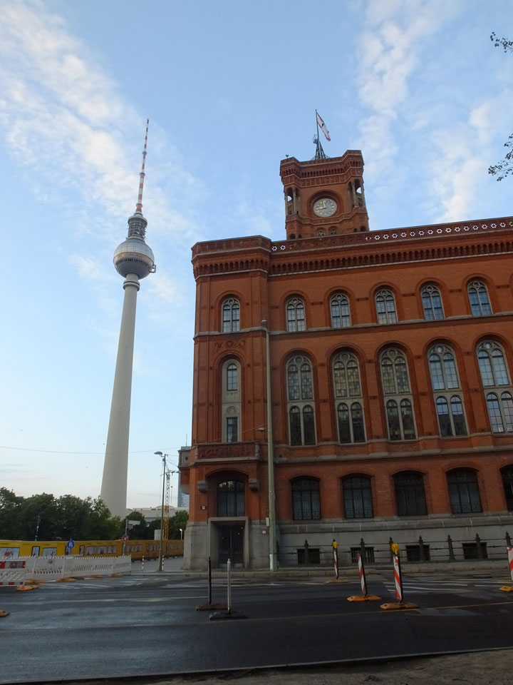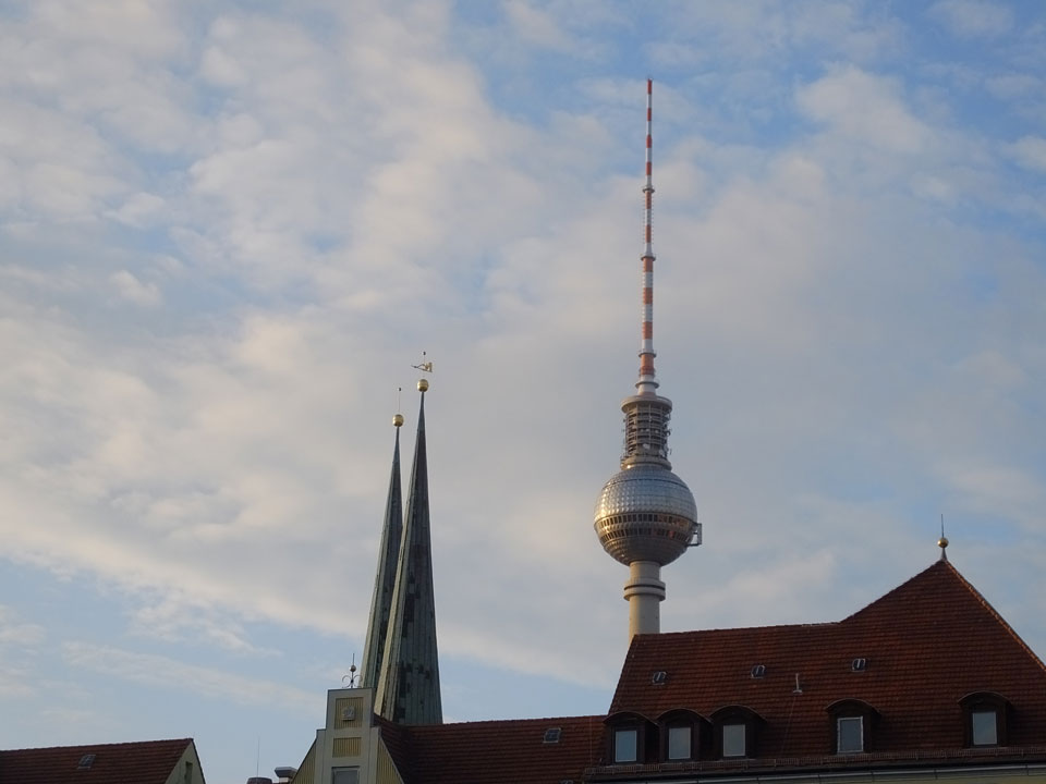 Schnell waren wir am Busbahnhof und saßen im vollen Bus nach Berlin. In Ostbahnhof ging’s in die S-Bahn für die Fahrt zur Oranienburger Straße. Es fing schon leicht mit regnen an. Halb trocken kamen wir in’s Baxpax Hostel, wo ich ein Privatzimmer reserviert hatte. Das zahlte heute jemand – um die €60. Das Retsaurant im Backpax hatte geschlossen, sodass wir ein paar Mitbringsel auf dem Zimmer als Mittag verspeisten.
