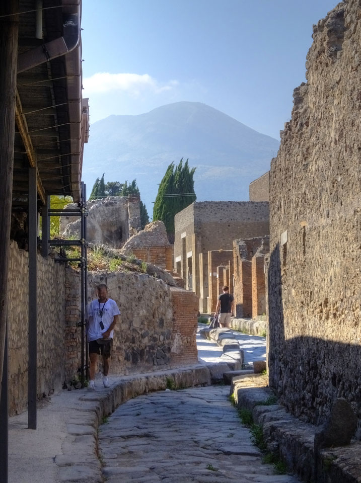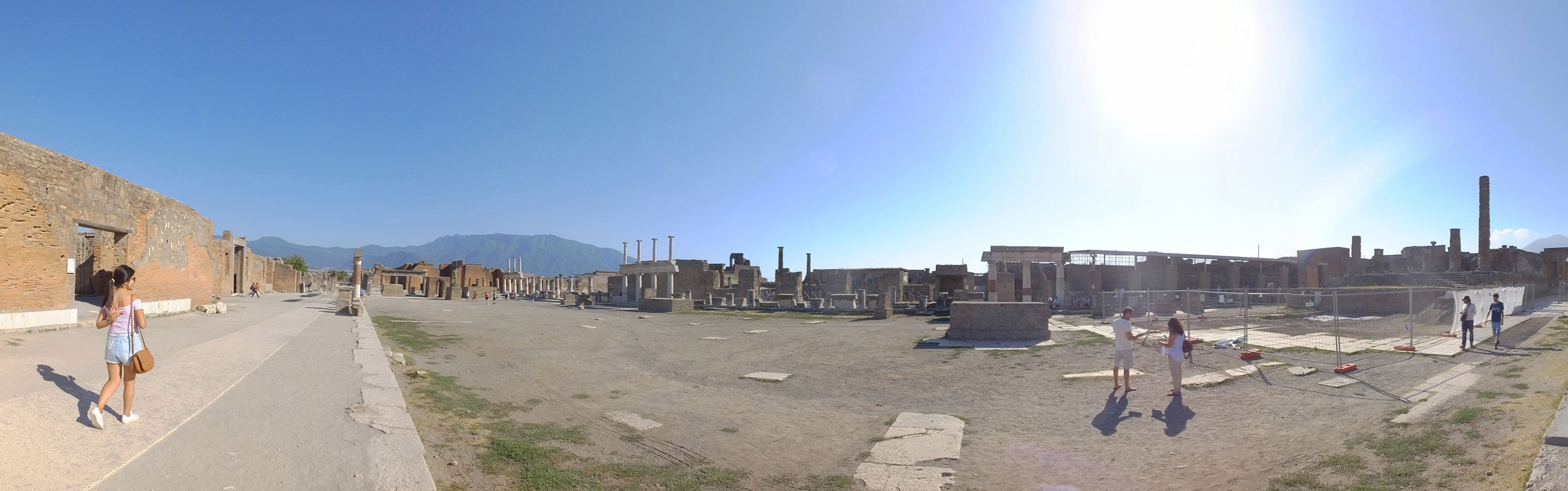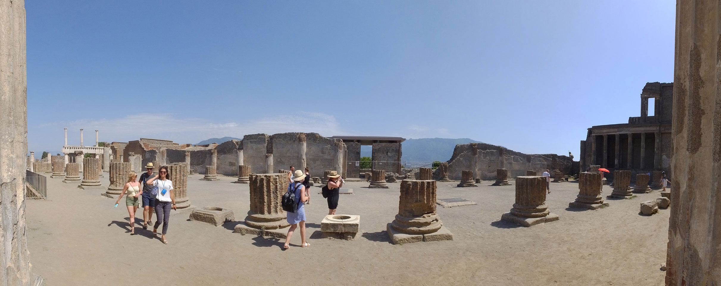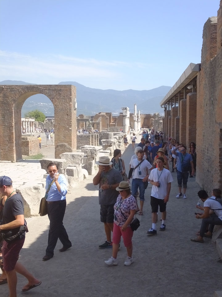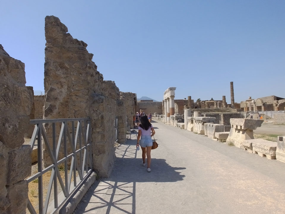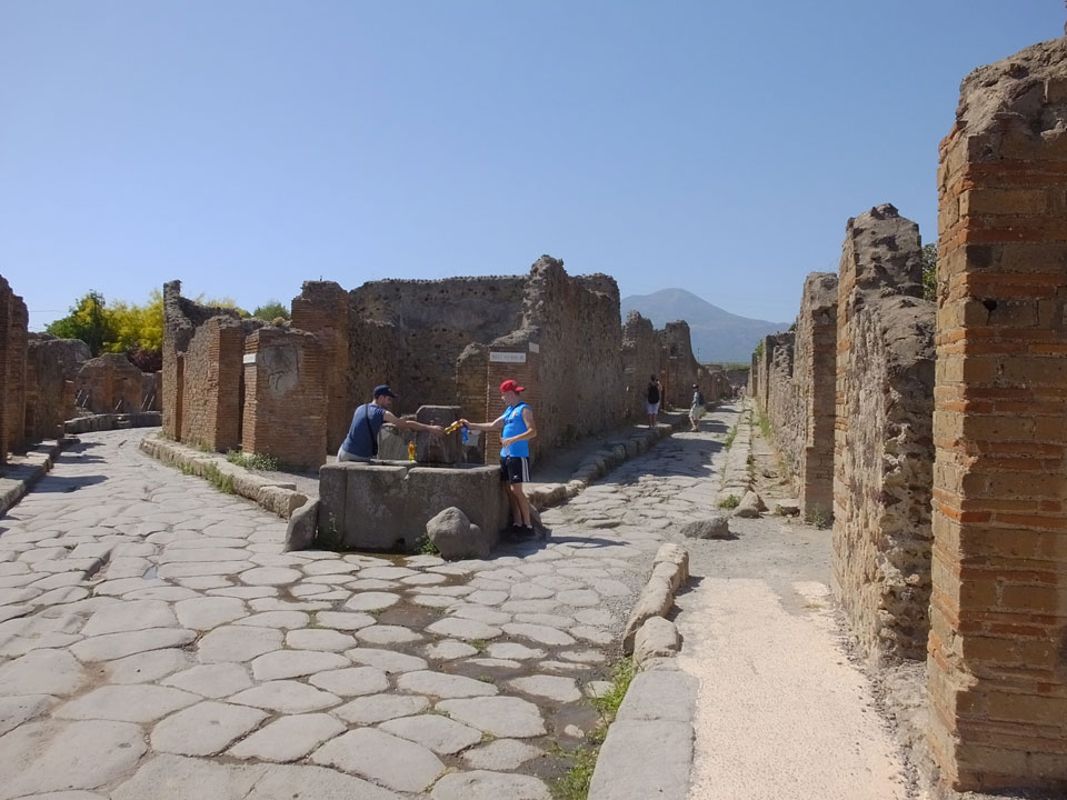 Gegen 15:00 waren wir aber drin im archeologischen Bereich. Pompeij war schon immer mal mein Ziel gewesen, jetzt war ich hier. Mit der Sonne und Hitze, war ich gut mit Sonnencreme geschützt. Wasser kauften wir extra auch noch, was eine gute Idee war.