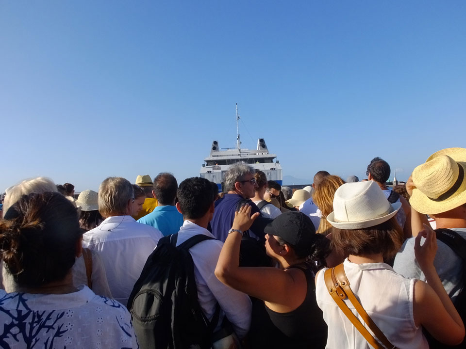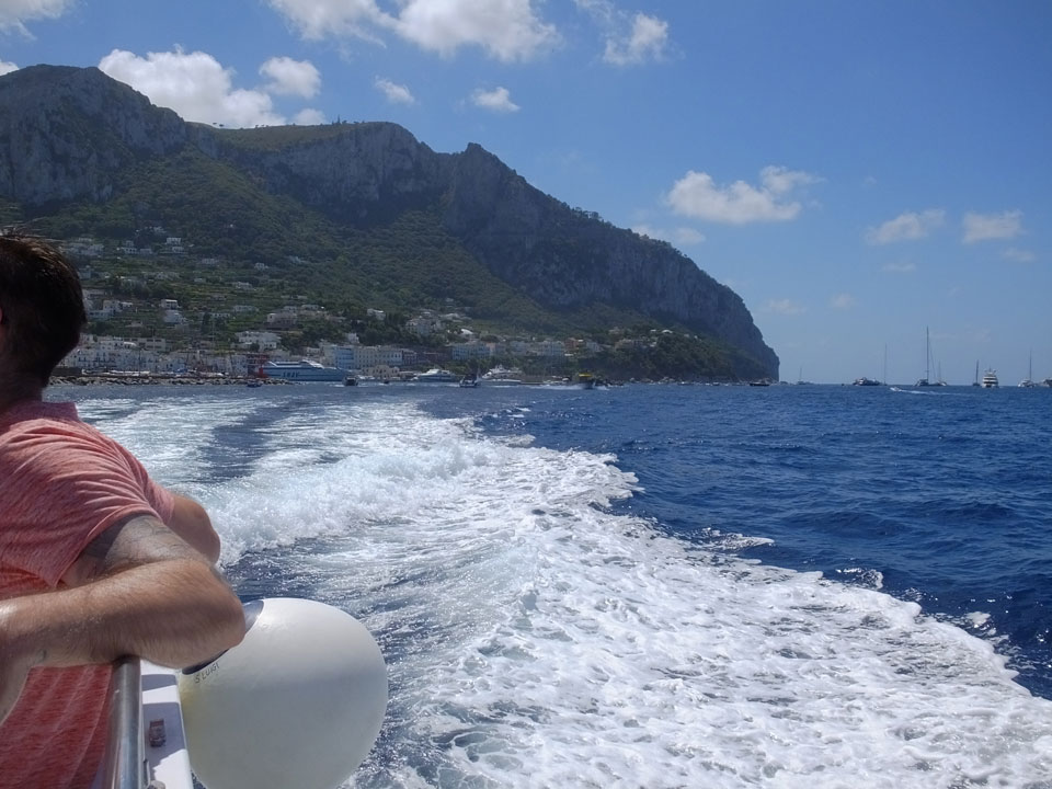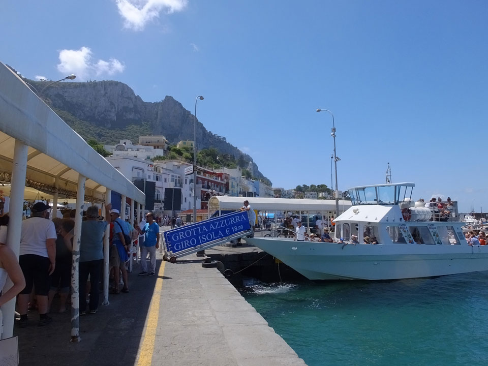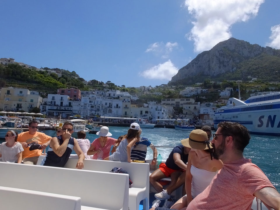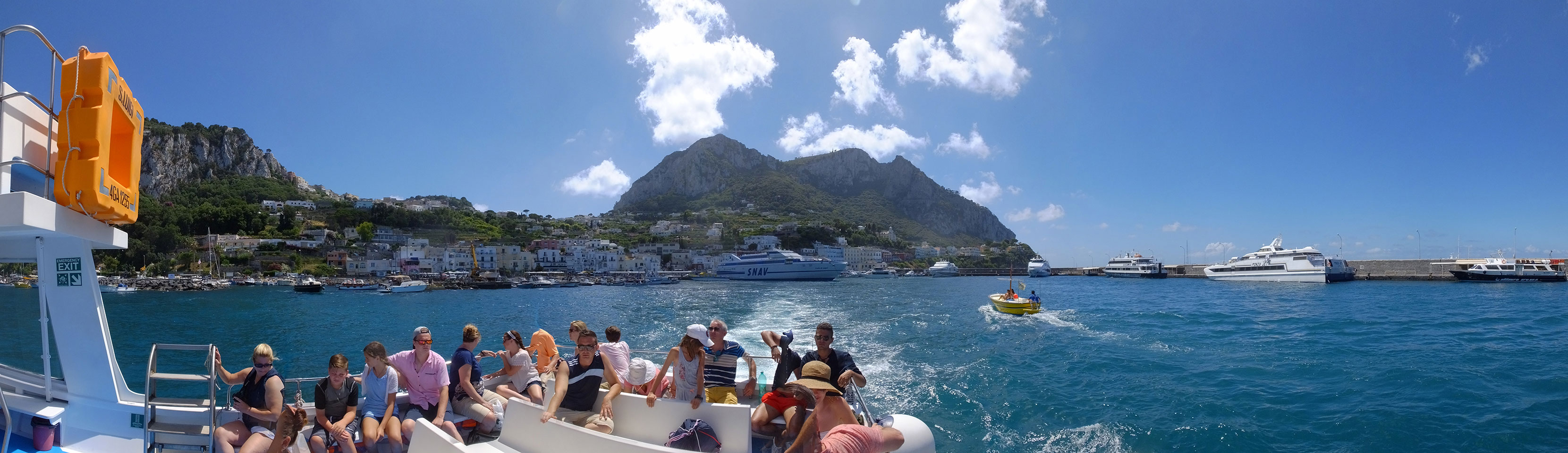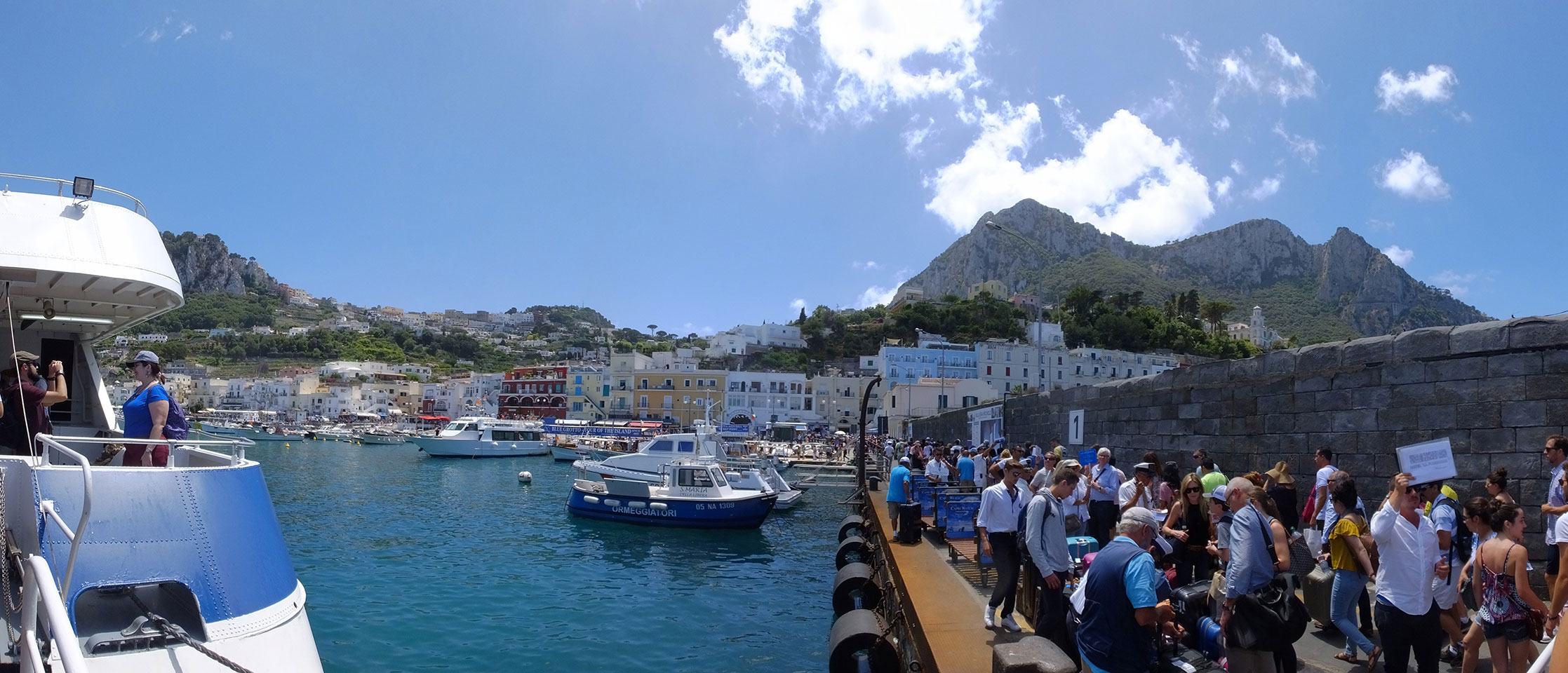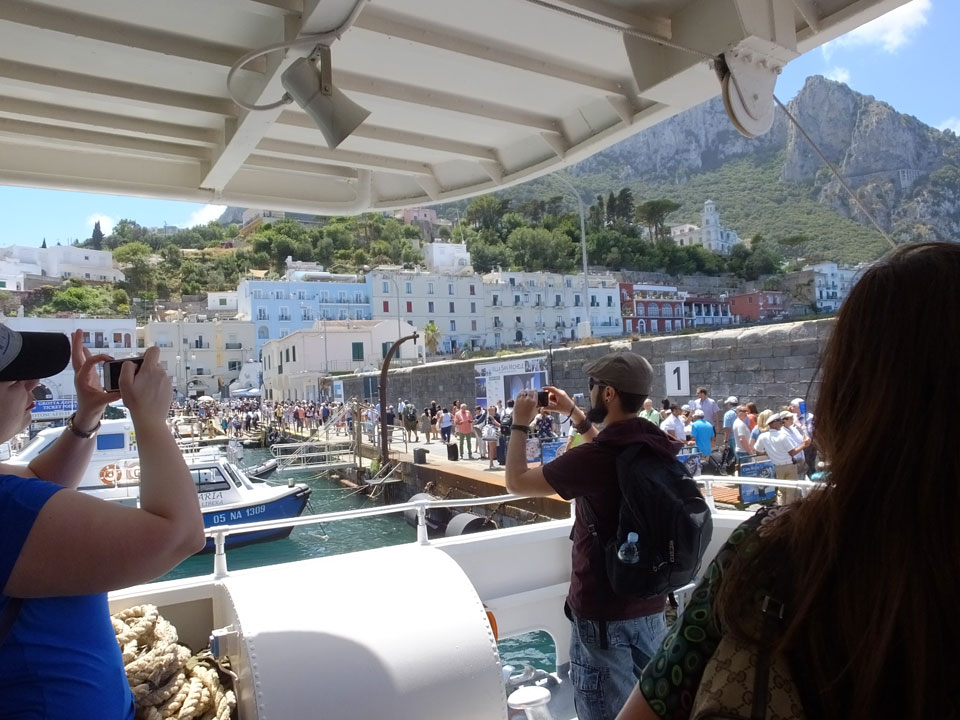 Wir checkten aus und liefen runter zum Hafen. Das Fährticket nach Capri kostete €21,50 pro Person. Bis die Fähre dann startete, verging etwas Zeit. Keine Anzeigetafeln funktionierten, doch ich fragte mich durch.
