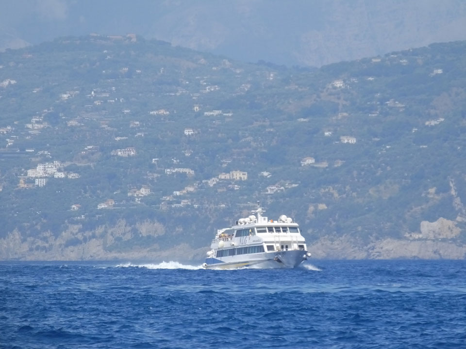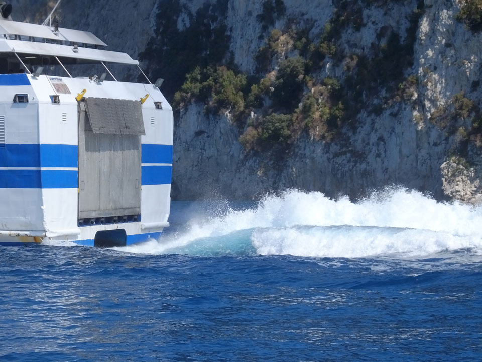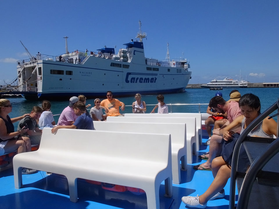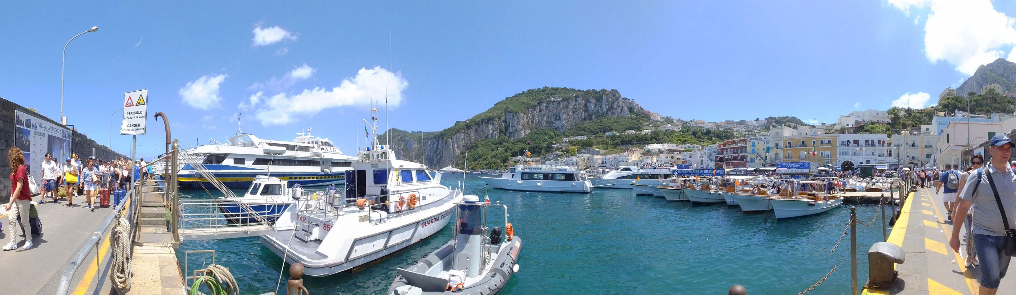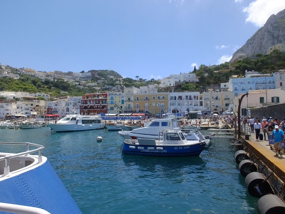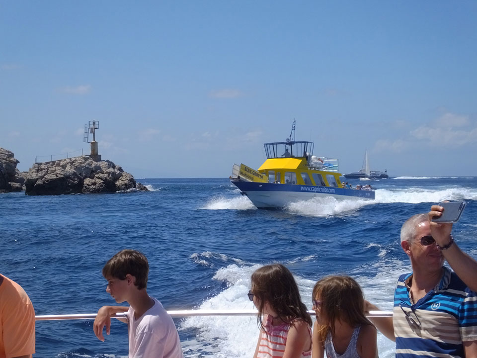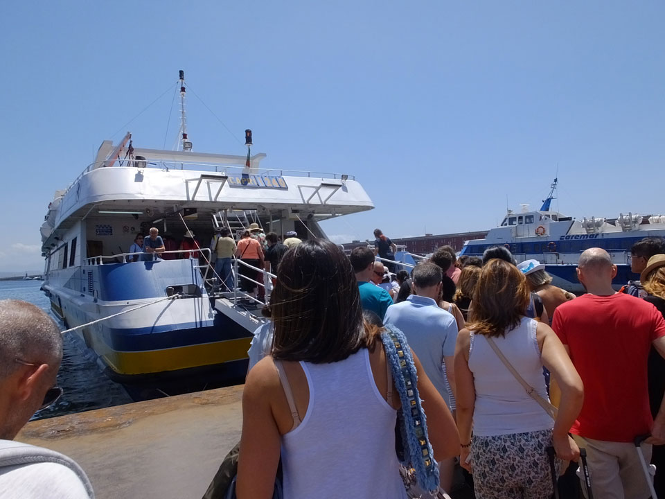 Wir checkten aus und liefen runter zum Hafen. Das Fährticket nach Capri kostete €21,50 pro Person. Bis die Fähre dann startete, verging etwas Zeit. Keine Anzeigetafeln funktionierten, doch ich fragte mich durch.