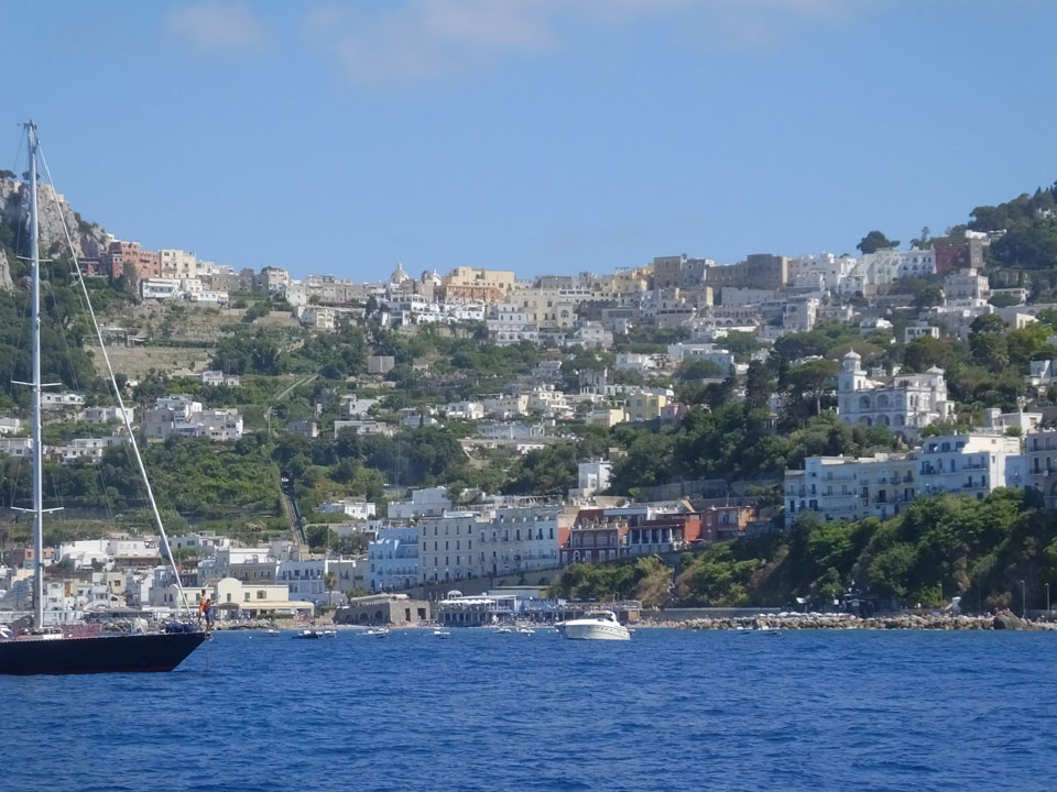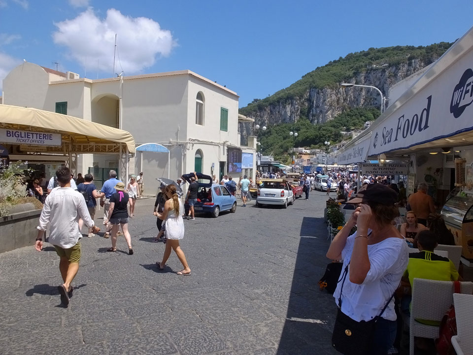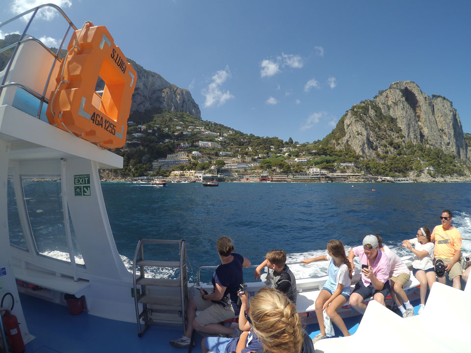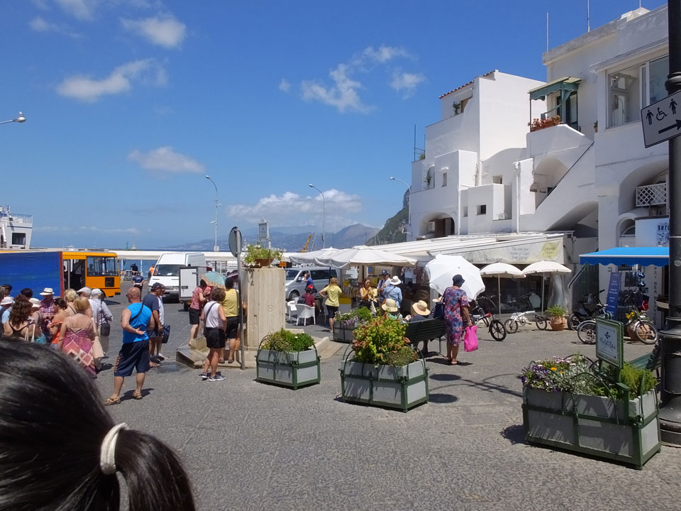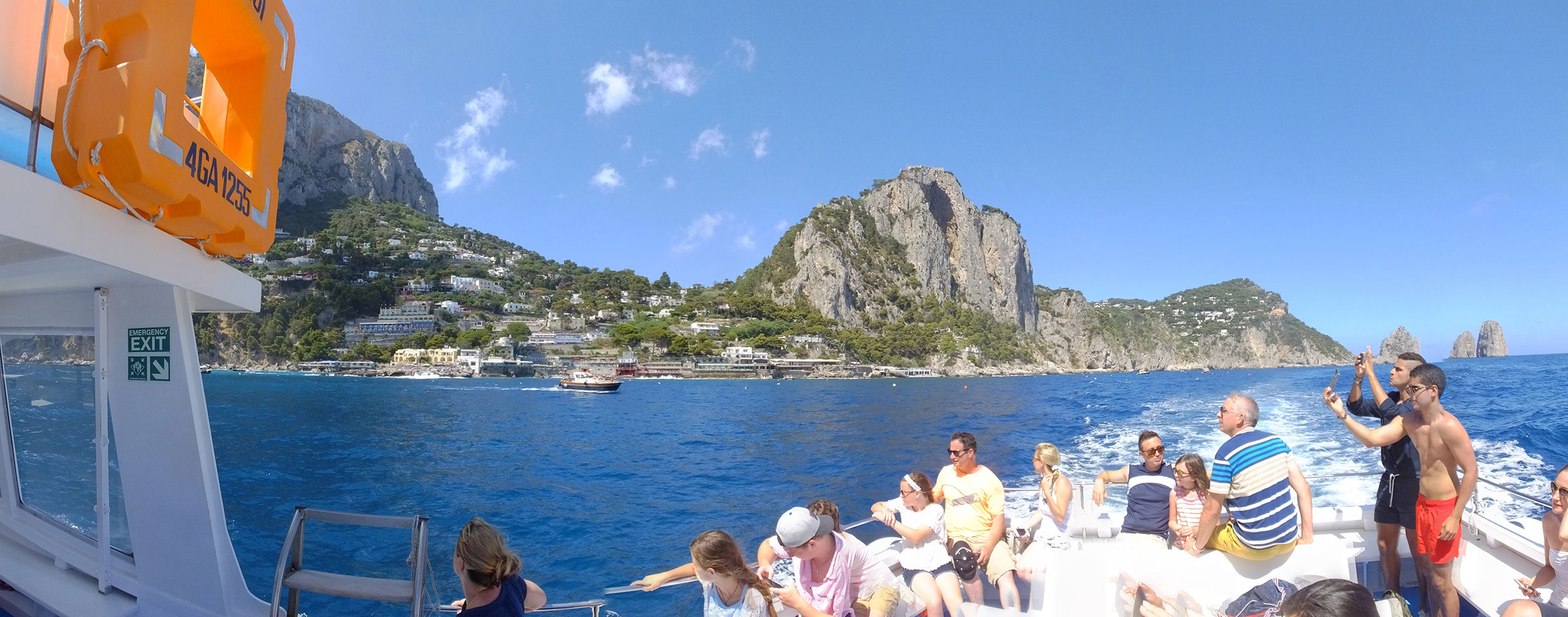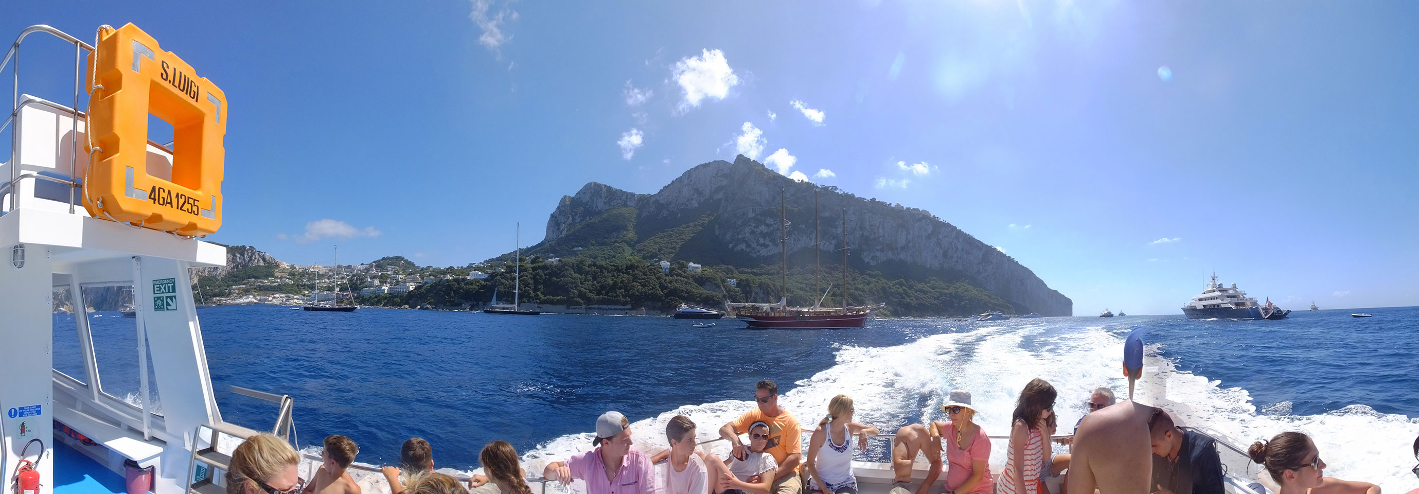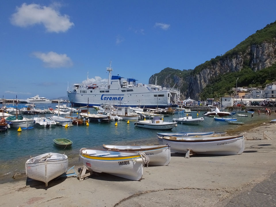 Wir checkten aus und liefen runter zum Hafen. Das Fährticket nach Capri kostete €21,50 pro Person. Bis die Fähre dann startete, verging etwas Zeit. Keine Anzeigetafeln funktionierten, doch ich fragte mich durch.