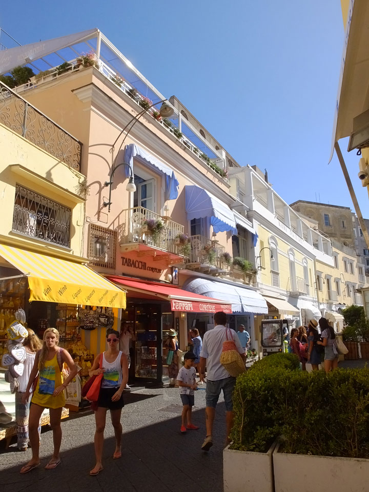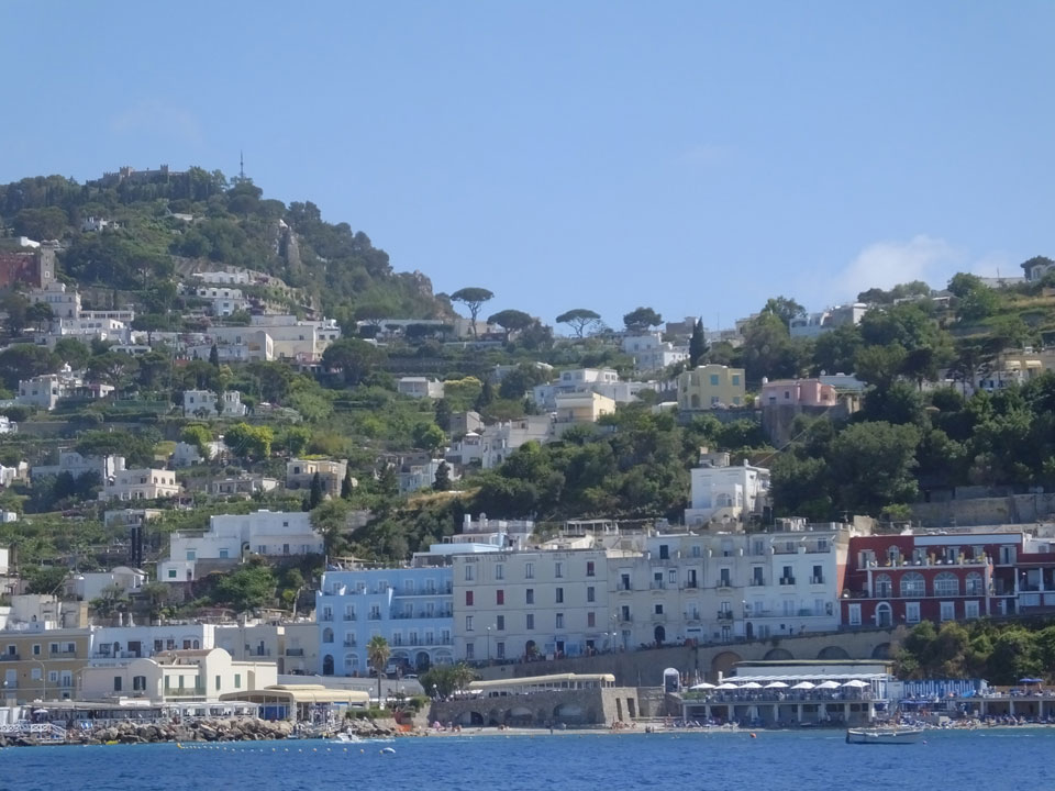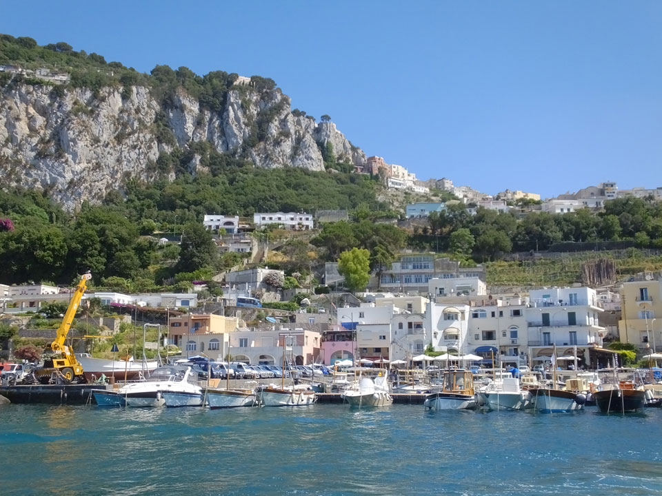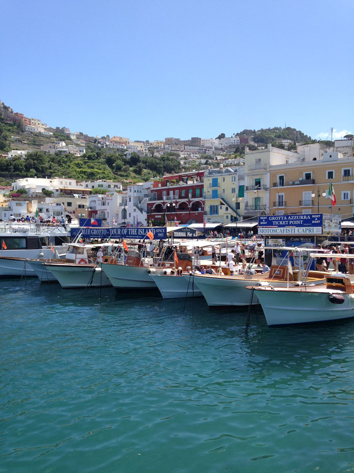 Schon im Hafen Capris sah man, wie hübsch diese Insel hier doch ist. Wir konnten unsere Sachen in einem Laden verstauen (€3 pro Stück) und kauften das Ticket nach Sorrento (€14,20). Dann fanden dann auch gleich eine Tour, die uns um die Insel schippert.
