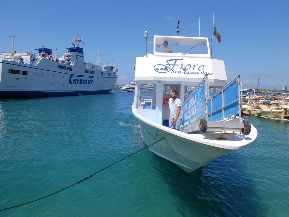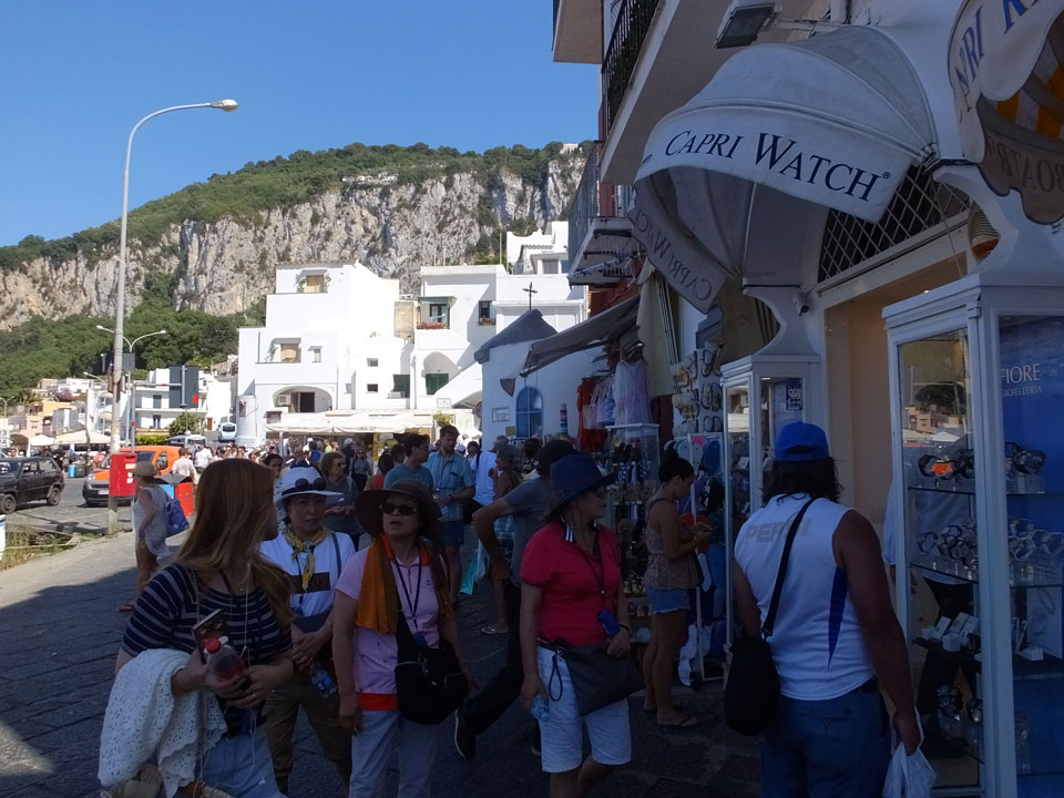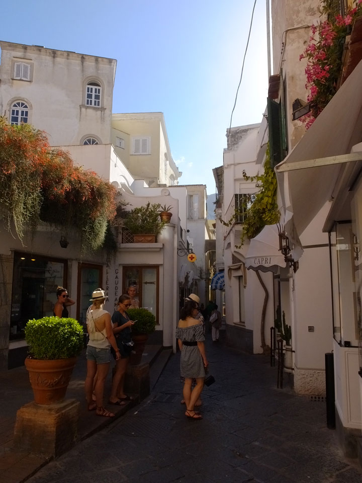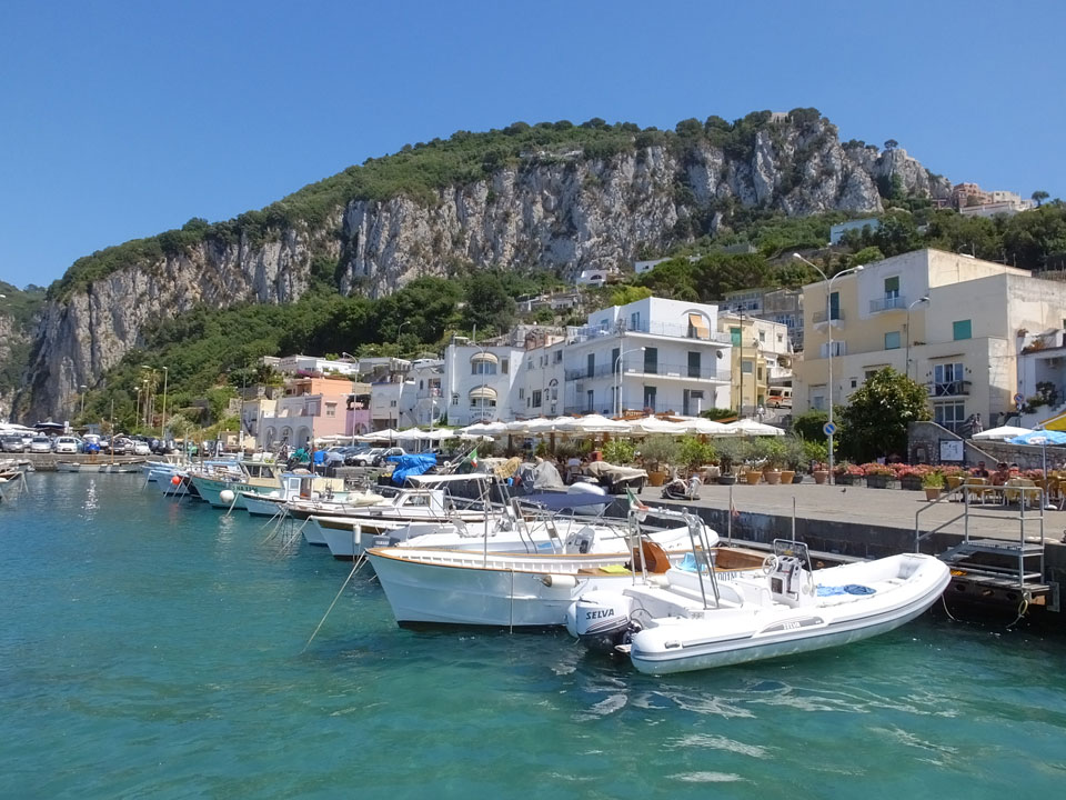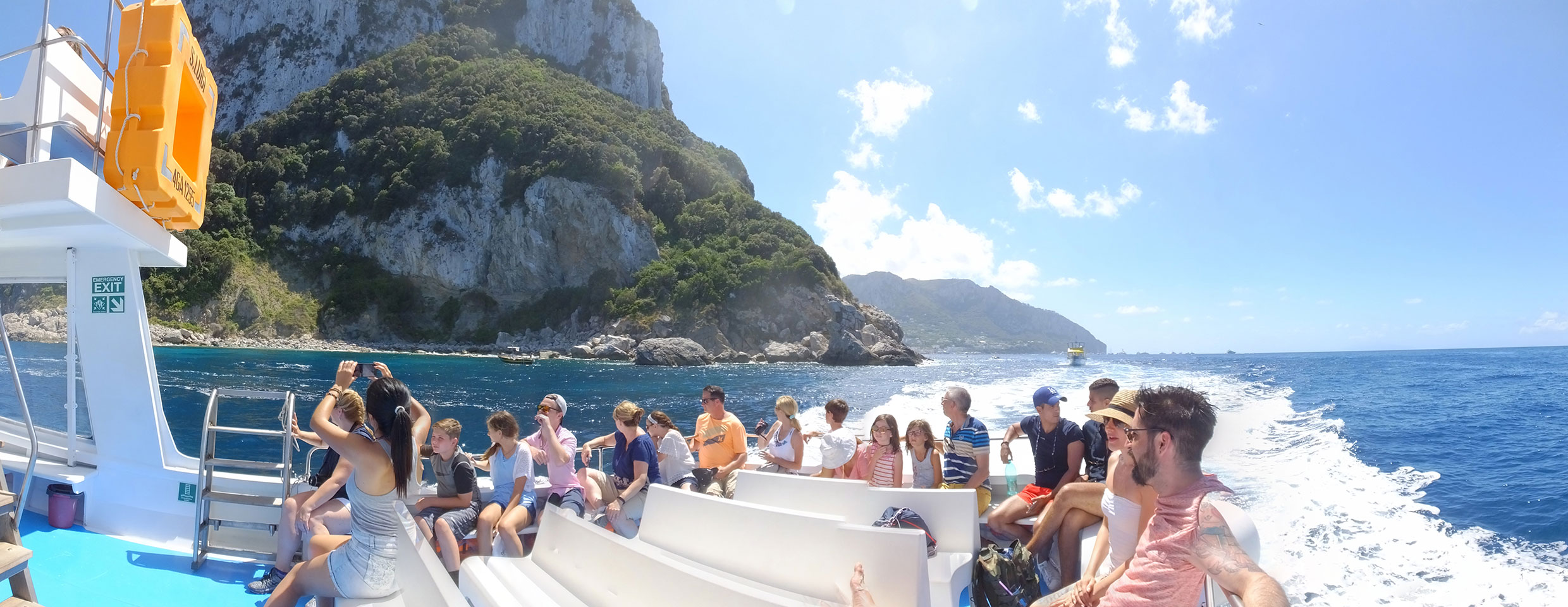 Schon im Hafen Capris sah man, wie hübsch diese Insel hier doch ist. Wir konnten unsere Sachen in einem Laden verstauen (€3 pro Stück) und kauften das Ticket nach Sorrento (€14,20). Dann fanden dann auch gleich eine Tour, die uns um die Insel schippert.
