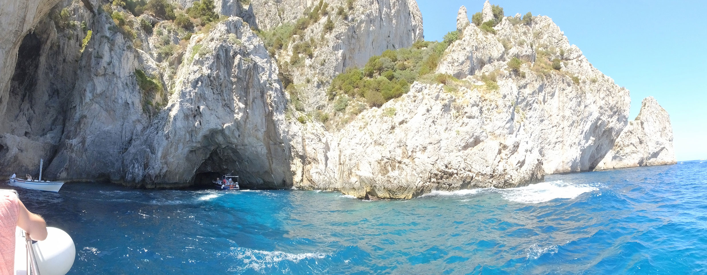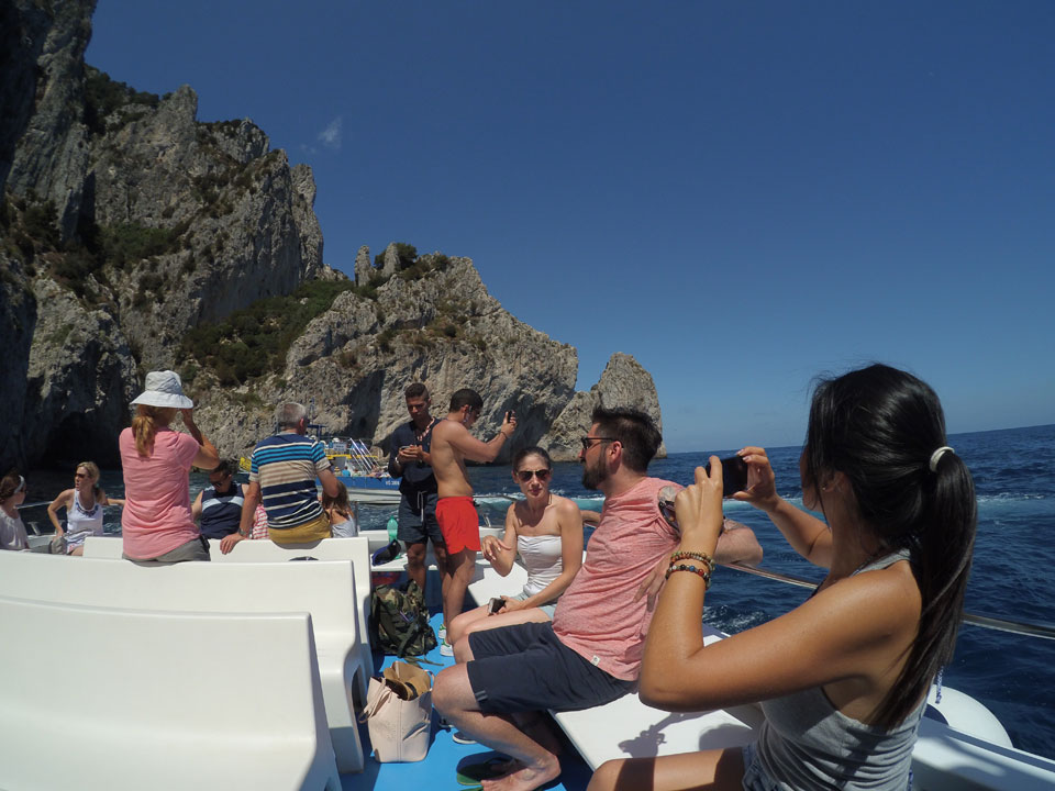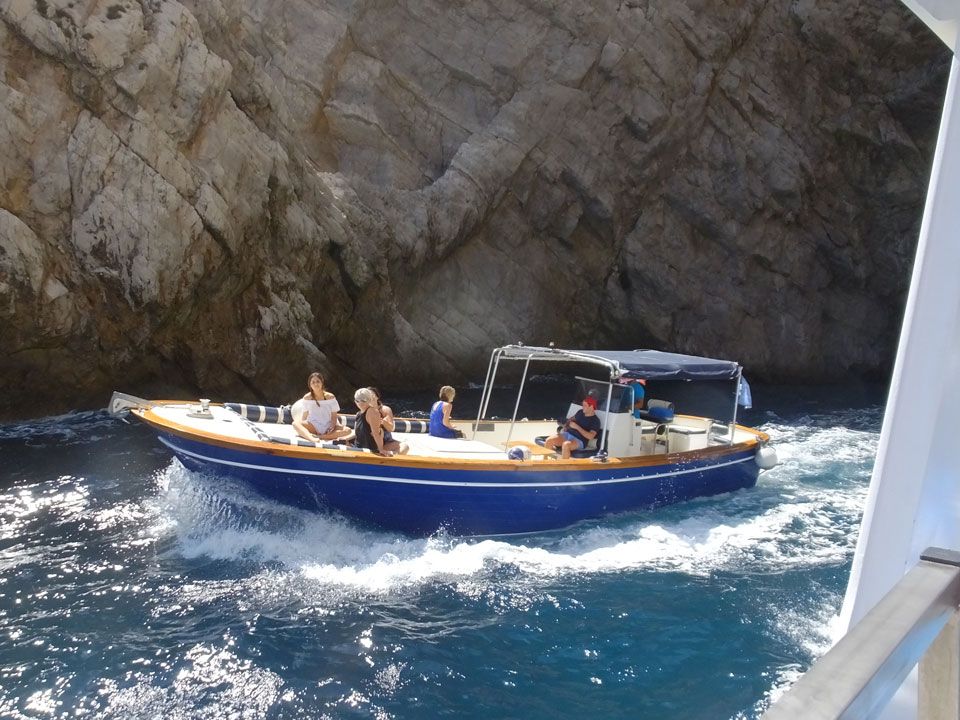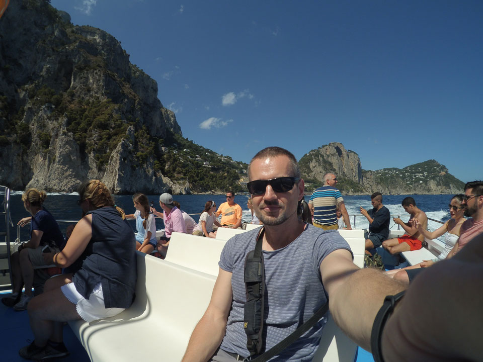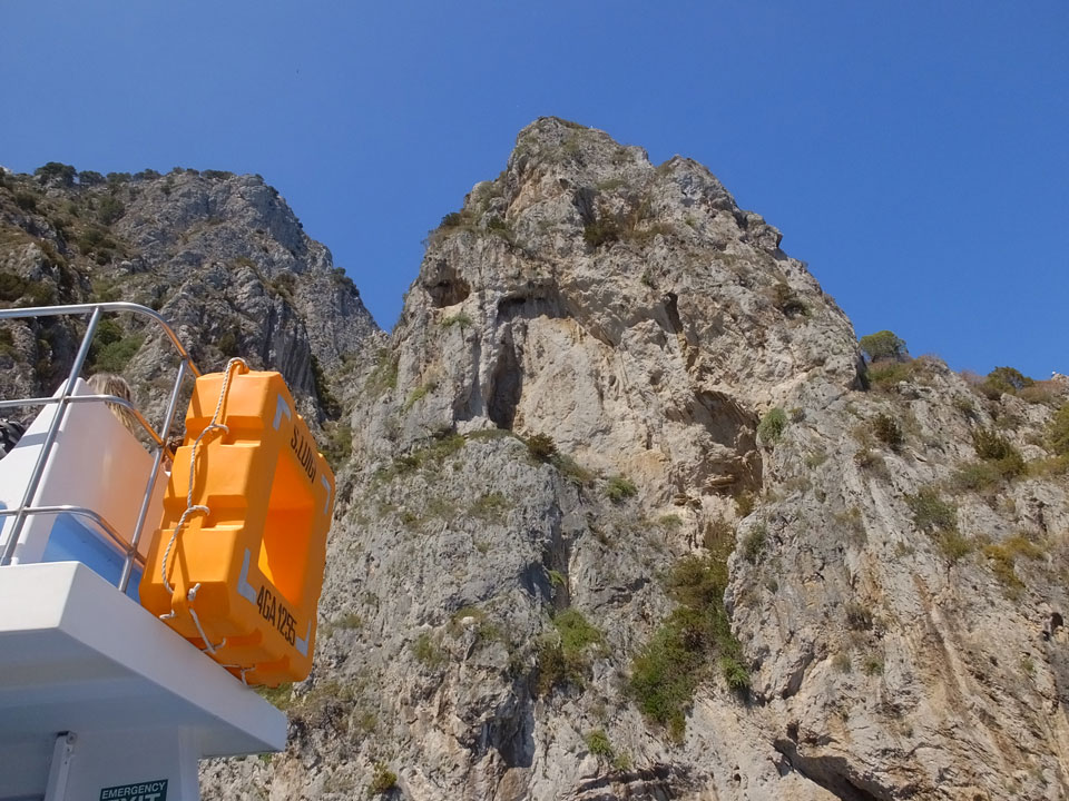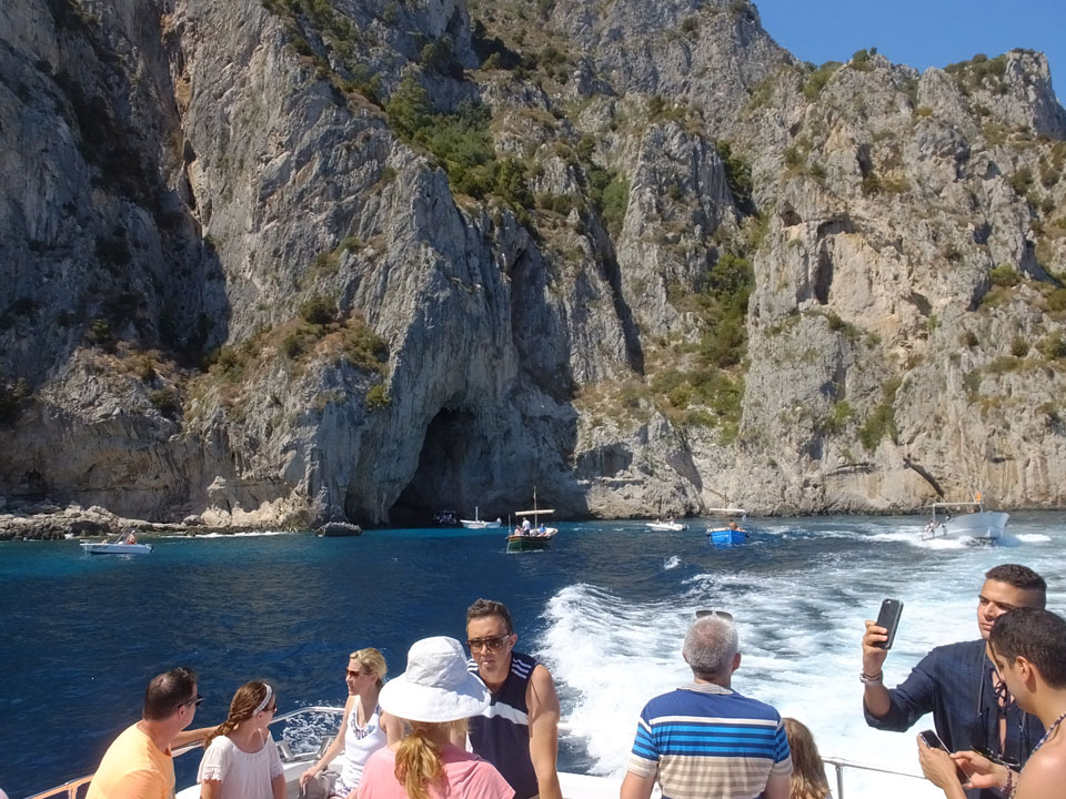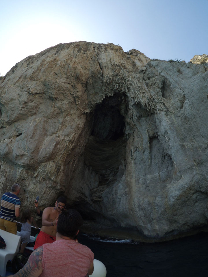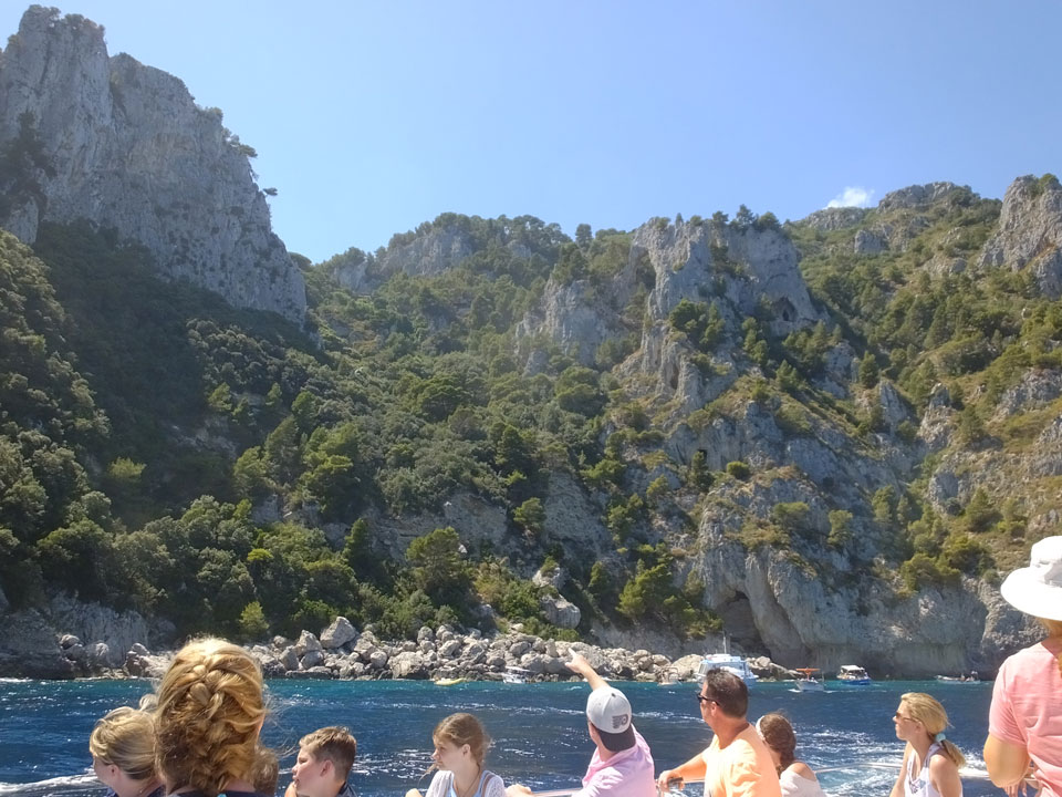 Für €15/Person war das ein normaler Preis. Ein kleines Boot legte ab und fuhr im Uhrzeigersinn um Capri. Die vielen Felsen, kleinen Höhlen und exklusiven Villen sahen nett aus. Es gab sogar ein paar kleine Strände. Die blaue Lagune war heute sowieso geschlossen. Auch hier dauerte die Tour eine gute Stunde.