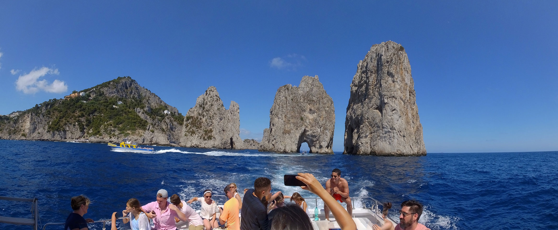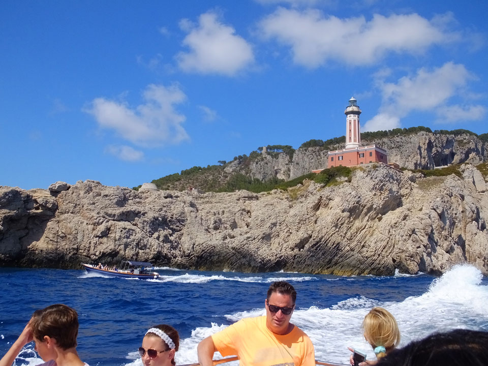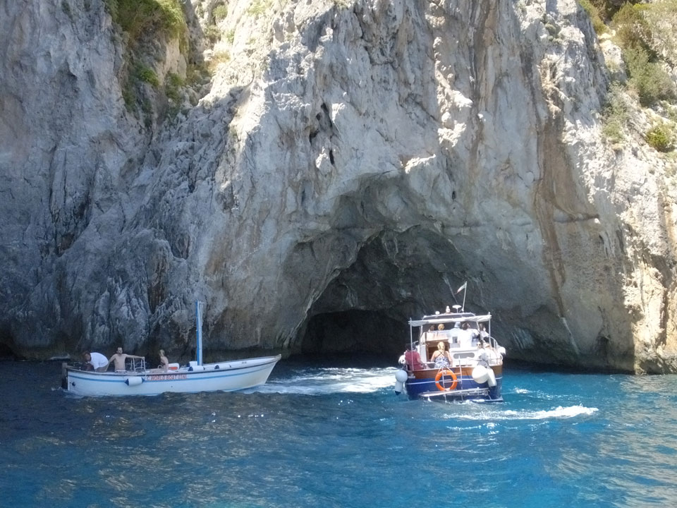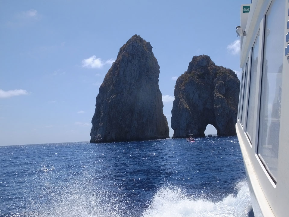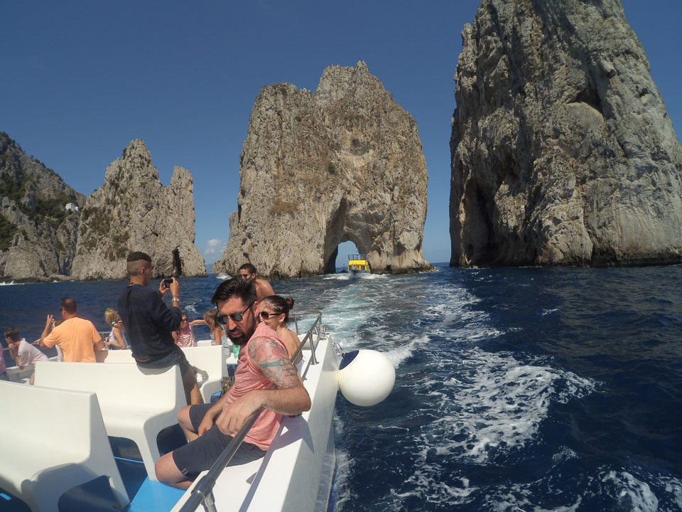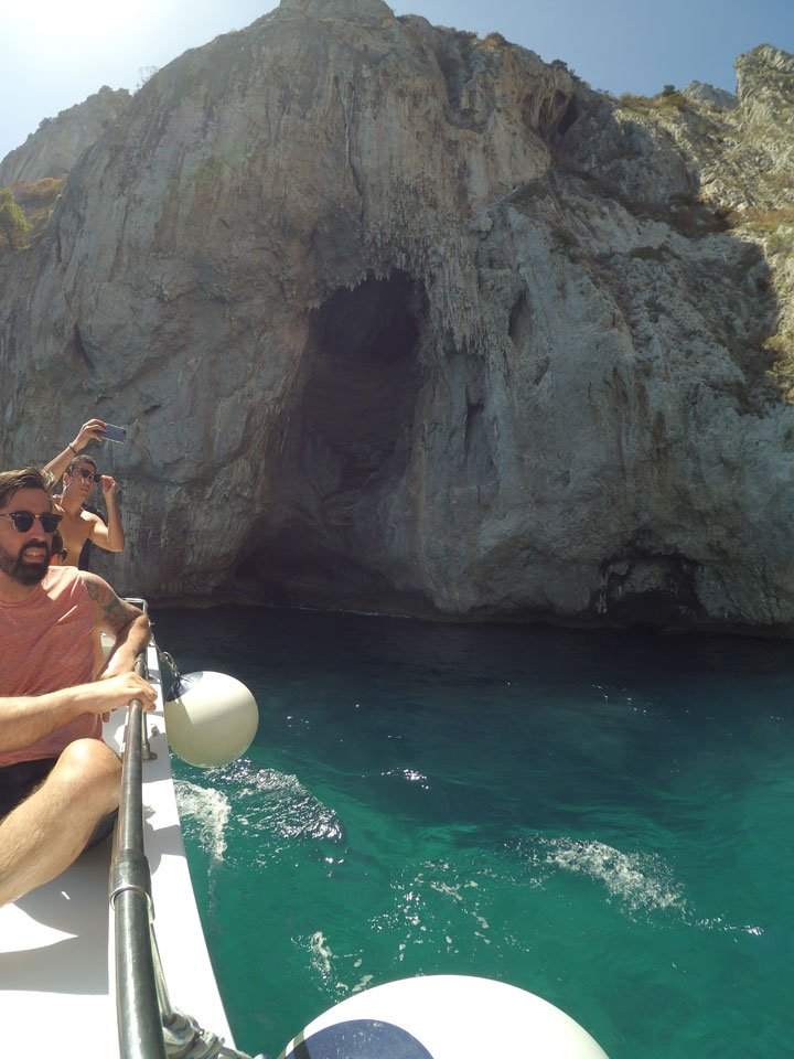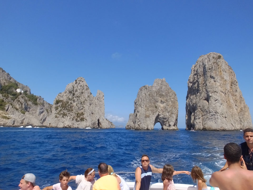 Für €15/Person war das ein normaler Preis. Ein kleines Boot legte ab und fuhr im Uhrzeigersinn um Capri. Die vielen Felsen, kleinen Höhlen und exklusiven Villen sahen nett aus. Es gab sogar ein paar kleine Strände. Die blaue Lagune war heute sowieso geschlossen. Auch hier dauerte die Tour eine gute Stunde.