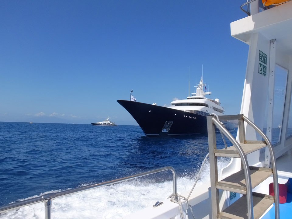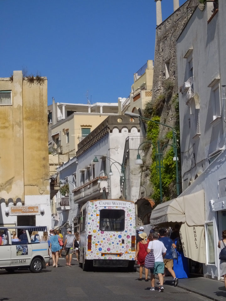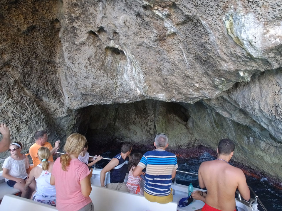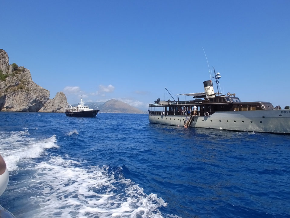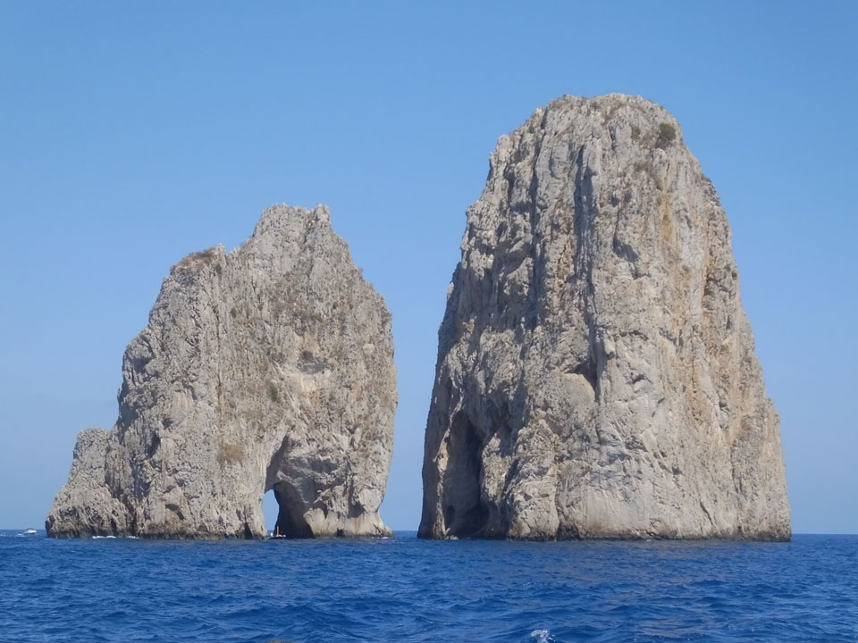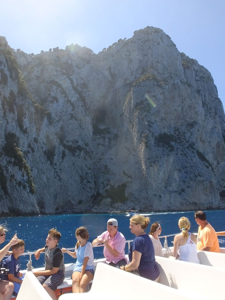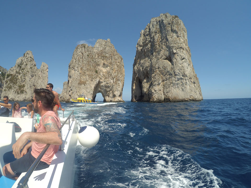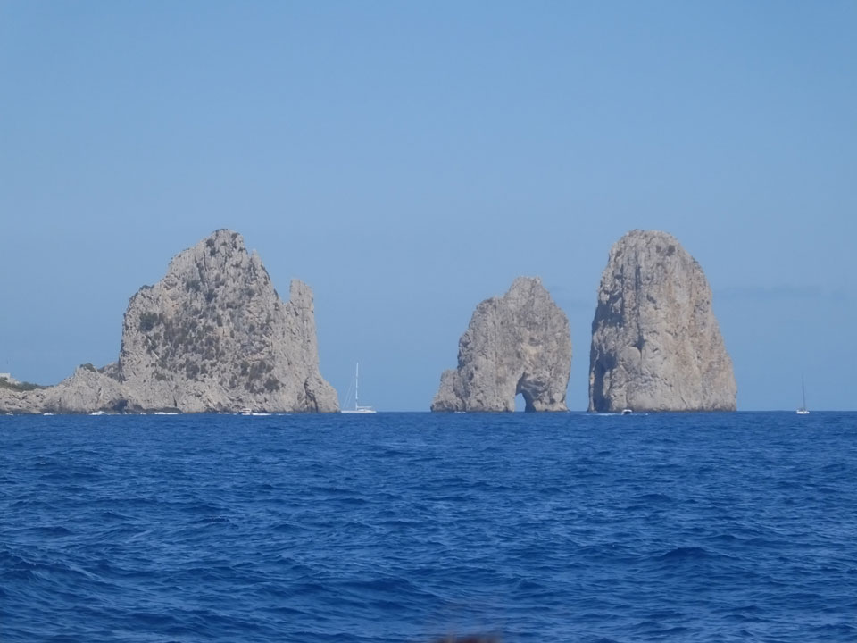 Für €15/Person war das ein normaler Preis. Ein kleines Boot legte ab und fuhr im Uhrzeigersinn um Capri. Die vielen Felsen, kleinen Höhlen und exklusiven Villen sahen nett aus. Es gab sogar ein paar kleine Strände. Die blaue Lagune war heute sowieso geschlossen. Auch hier dauerte die Tour eine gute Stunde.