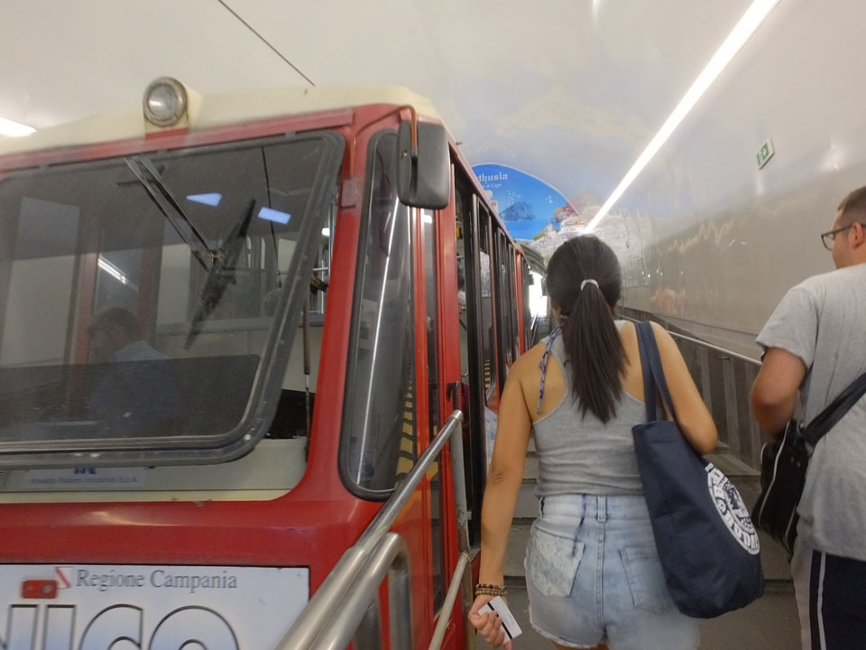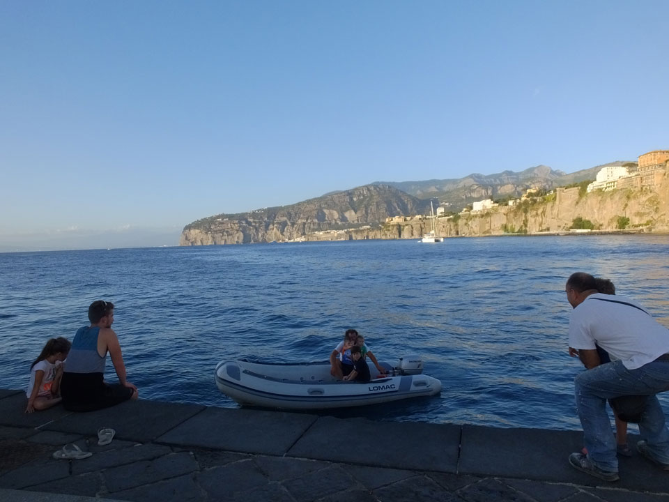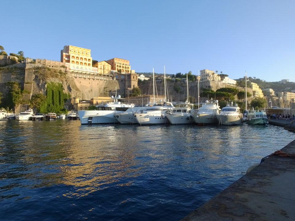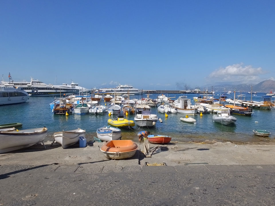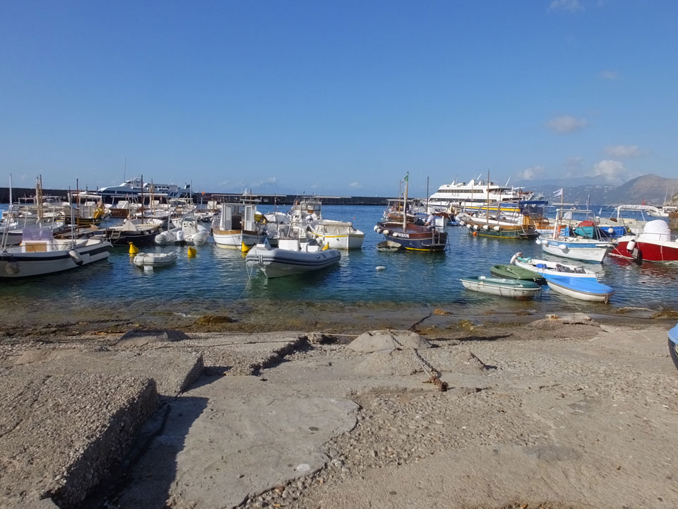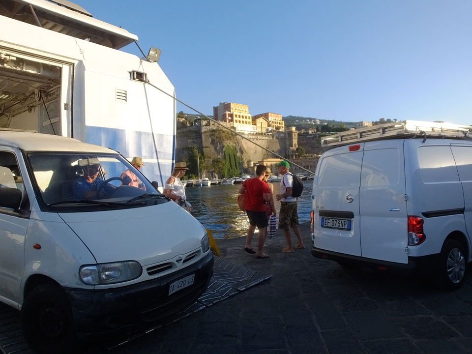 Wir schafften rechtzeitig die Funicular nach unten, bekamen unser Gepäck – alles passte. Bis zur Fähre nach Sorrento hatten wir noch etwas Zeit – genug, um wenigsten mit den Füßen wenigstens in’s Wasser zu gehen.
