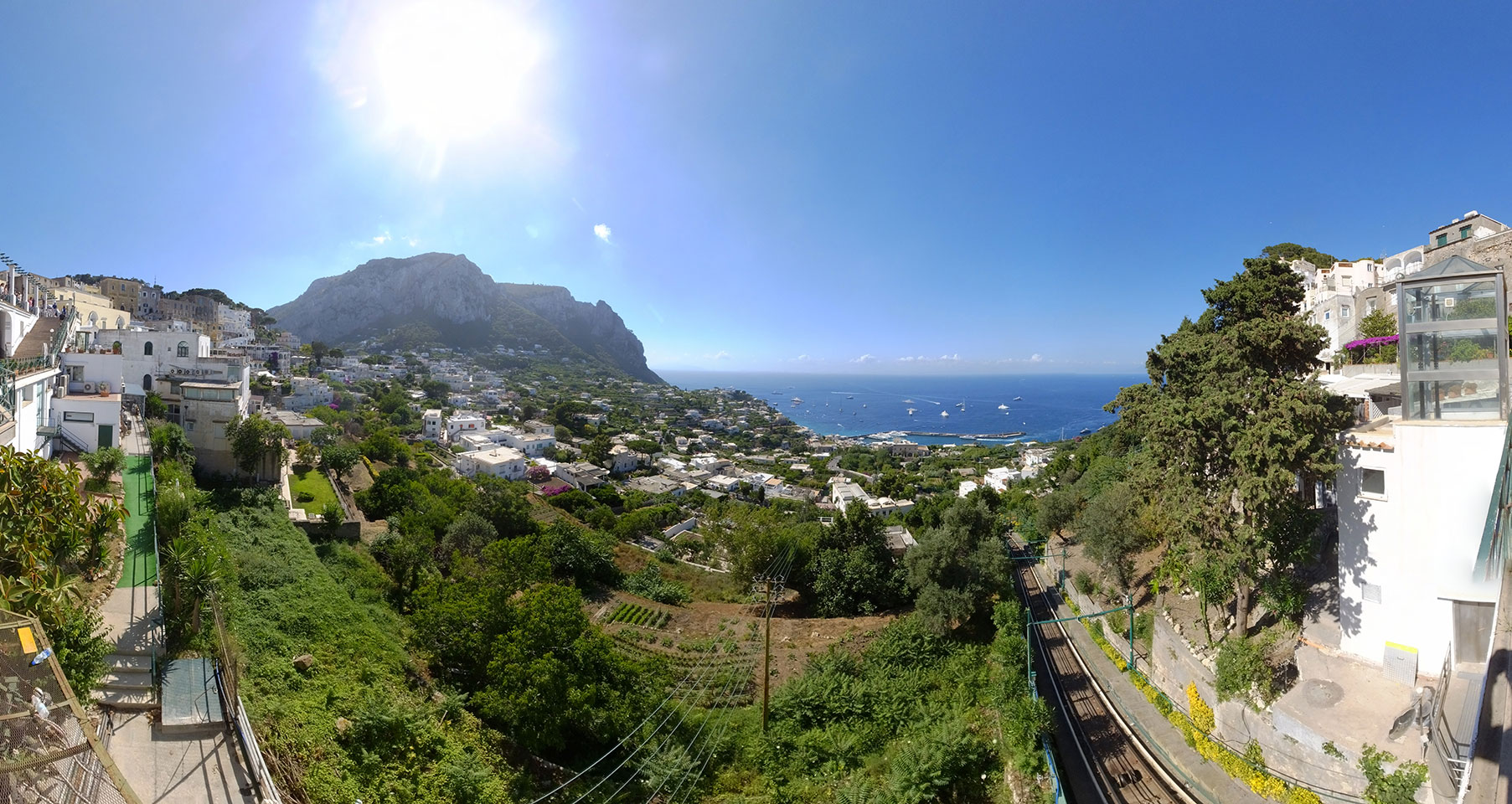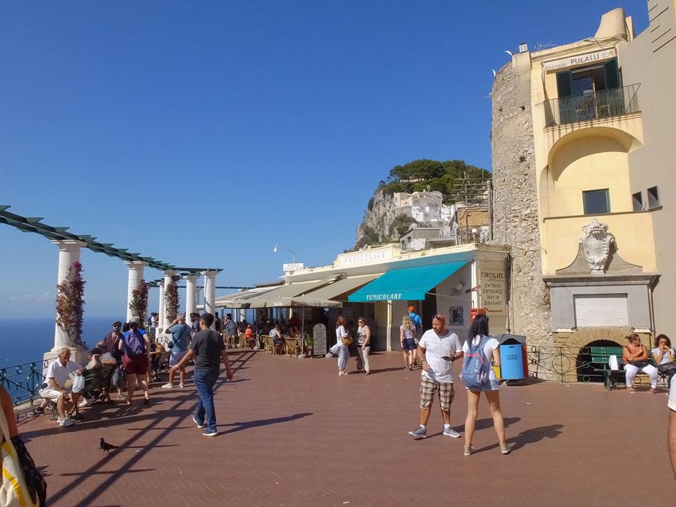 Die Preis in den Restaurants waren etwas irre. Ein kleiner Saft kostete €6. Mit der Funicular (€4 Hin-/Rückfahrt) kamen wir auf den Berg mit einer tollen Aussicht auf die Insel. In der Stadt hatten wir nur eine Stunde Zeit, denn unser Gepäck war bis 18:00 abzuholen.
